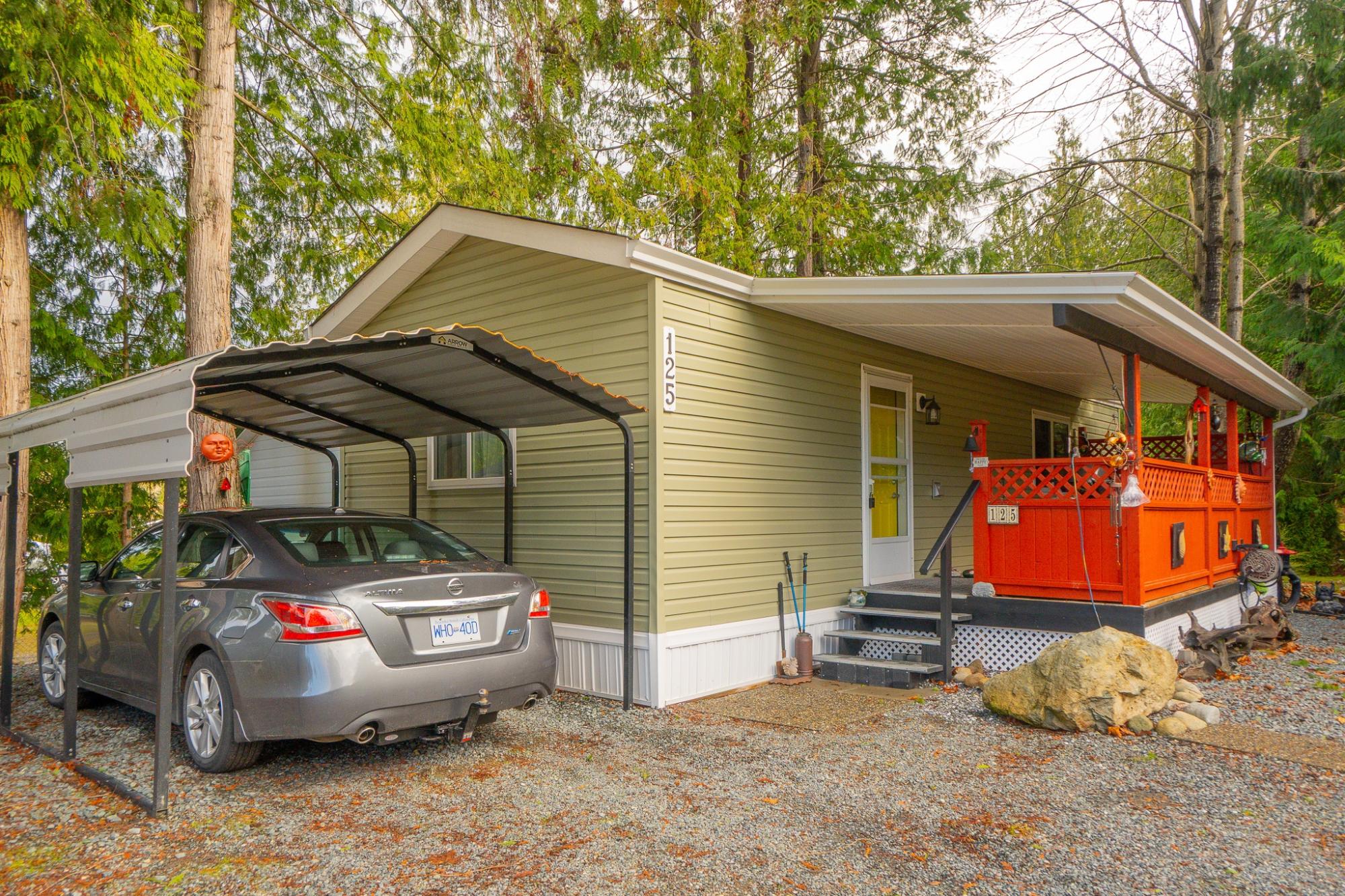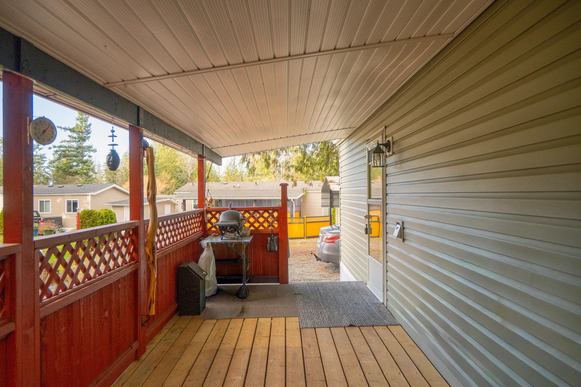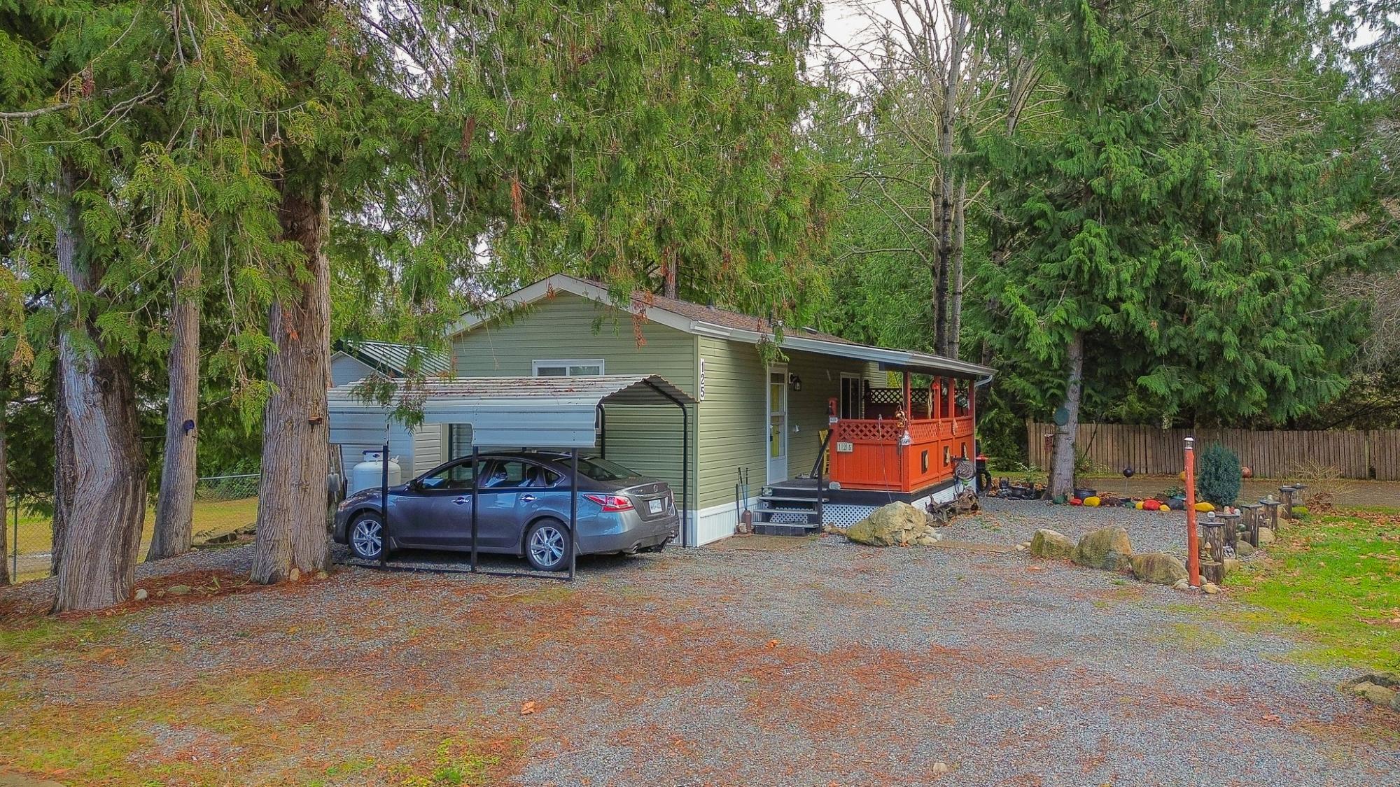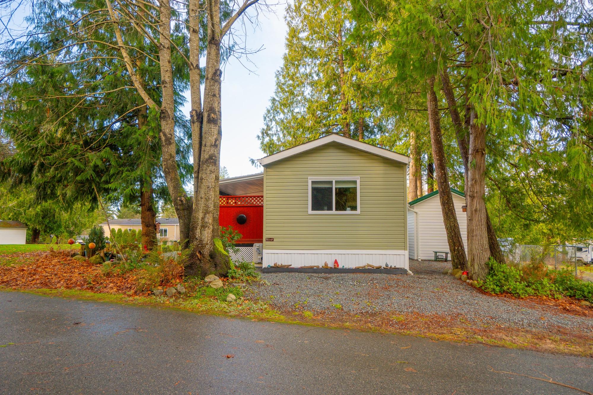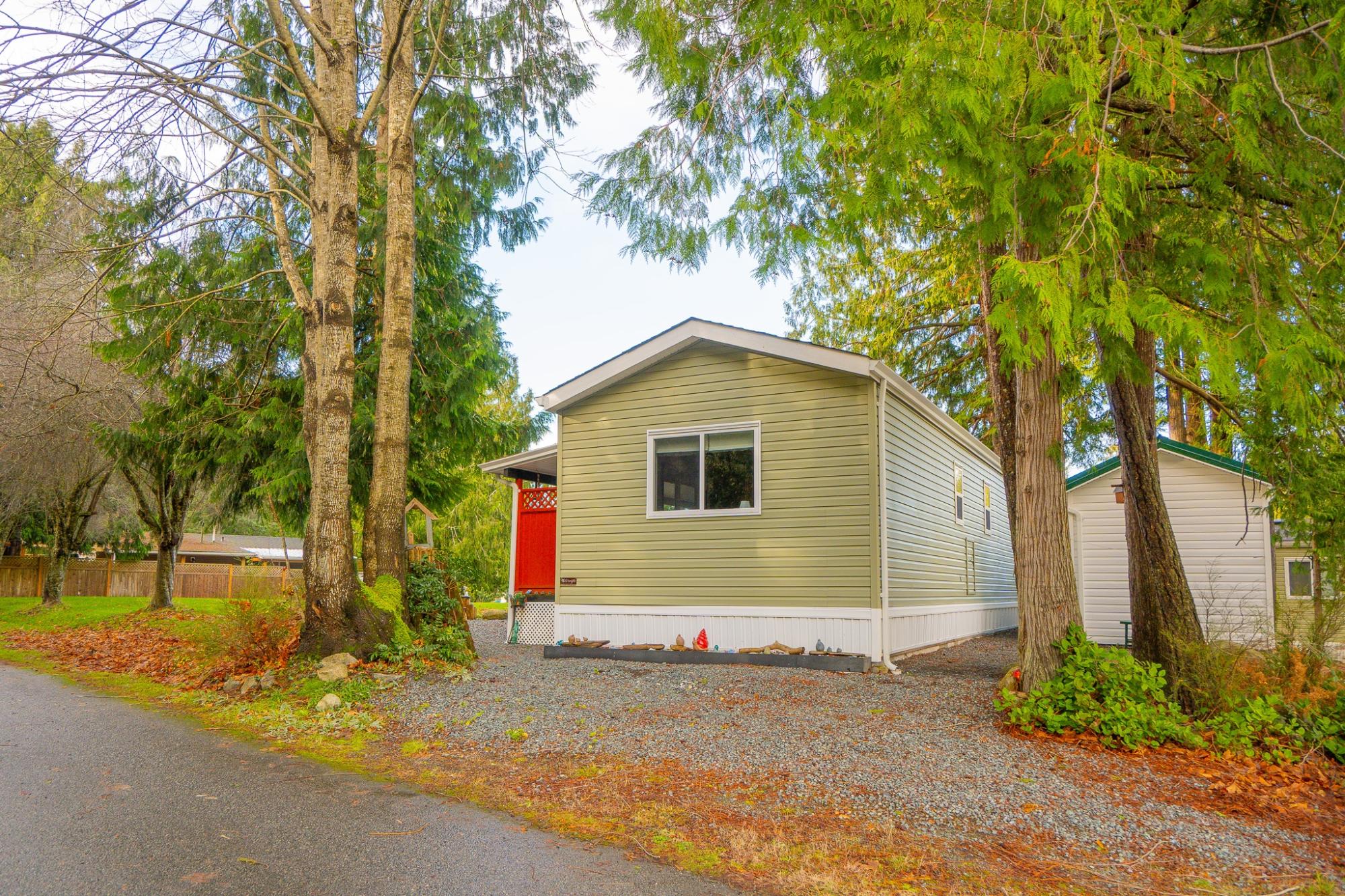 2018 Park Model Manufactured Home on a delightful pad with grassy views all around. This home will be perfect for singles or couples with one bedroom and bath and only 7 years old. The kitchen, dining and living room are cozy and compact but roomy enough for a kitchen table and guests. You'll be comfortable year round with a new heat pump and gas stove. An attractive, covered deck at the entry provides a lovely sitting space to enjoy this private corner of the park. An insulated, wired shop behind the home provides a space for hobbies and crafts as well as ample storage. Your car will be dry under the carport and there is an extra parking space on the pad. Deighton Creek Mobile Home Park is one of the most attractive parks in the area and only thirteen minutes from central Powell River. This is a lovely home on a special pad in a great park!