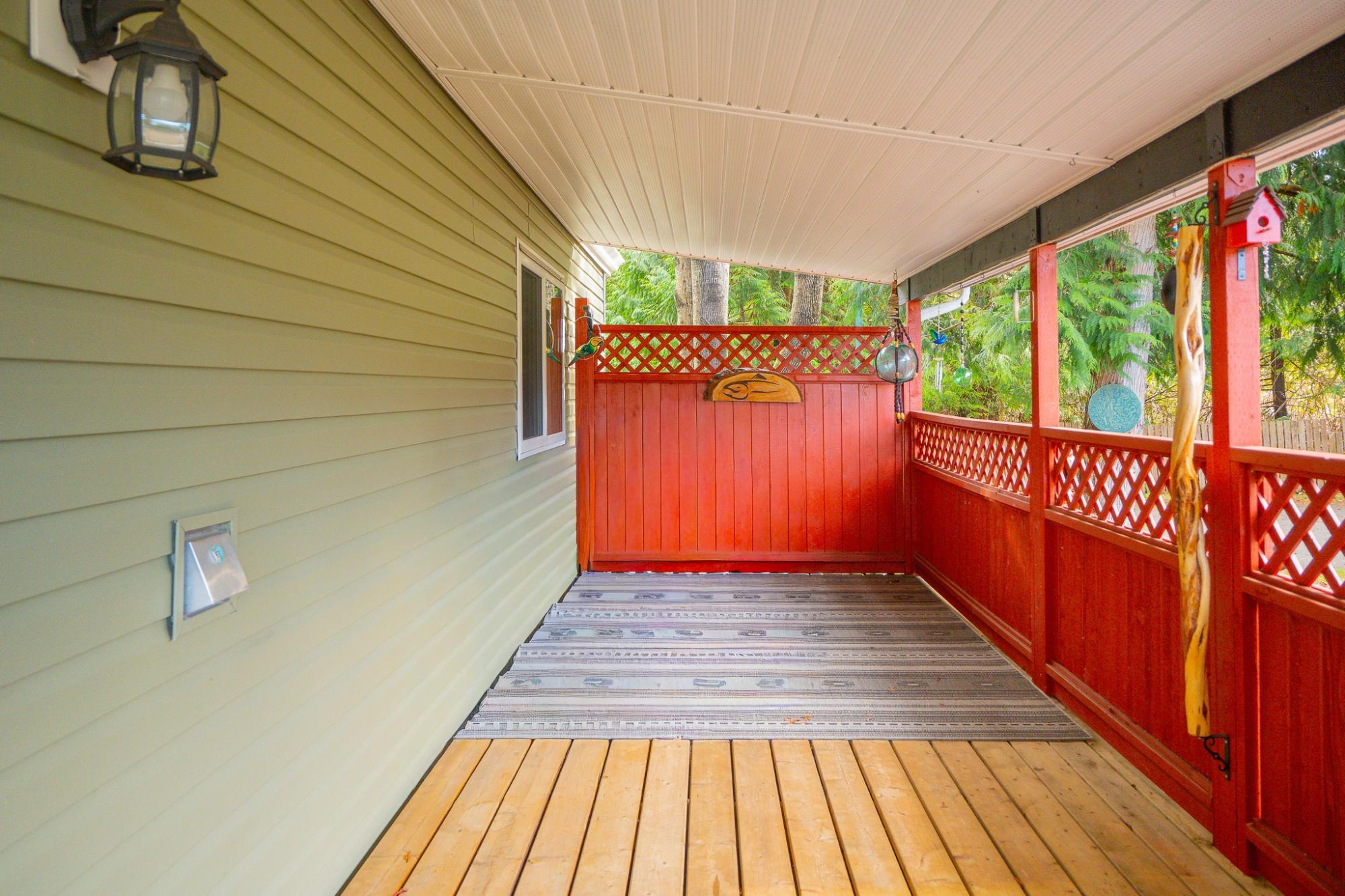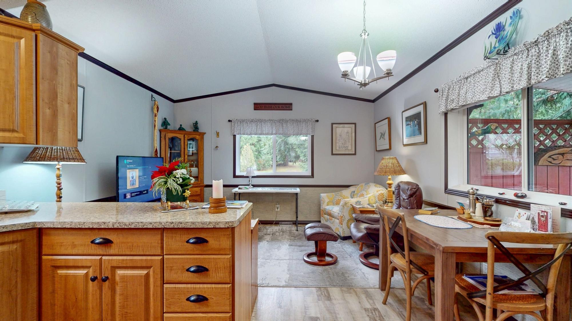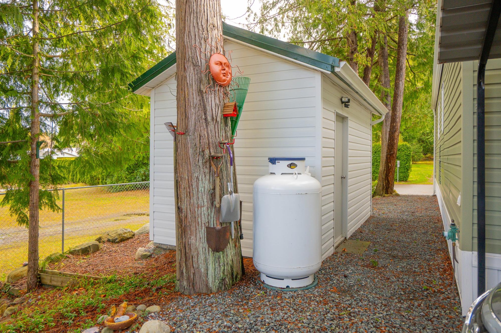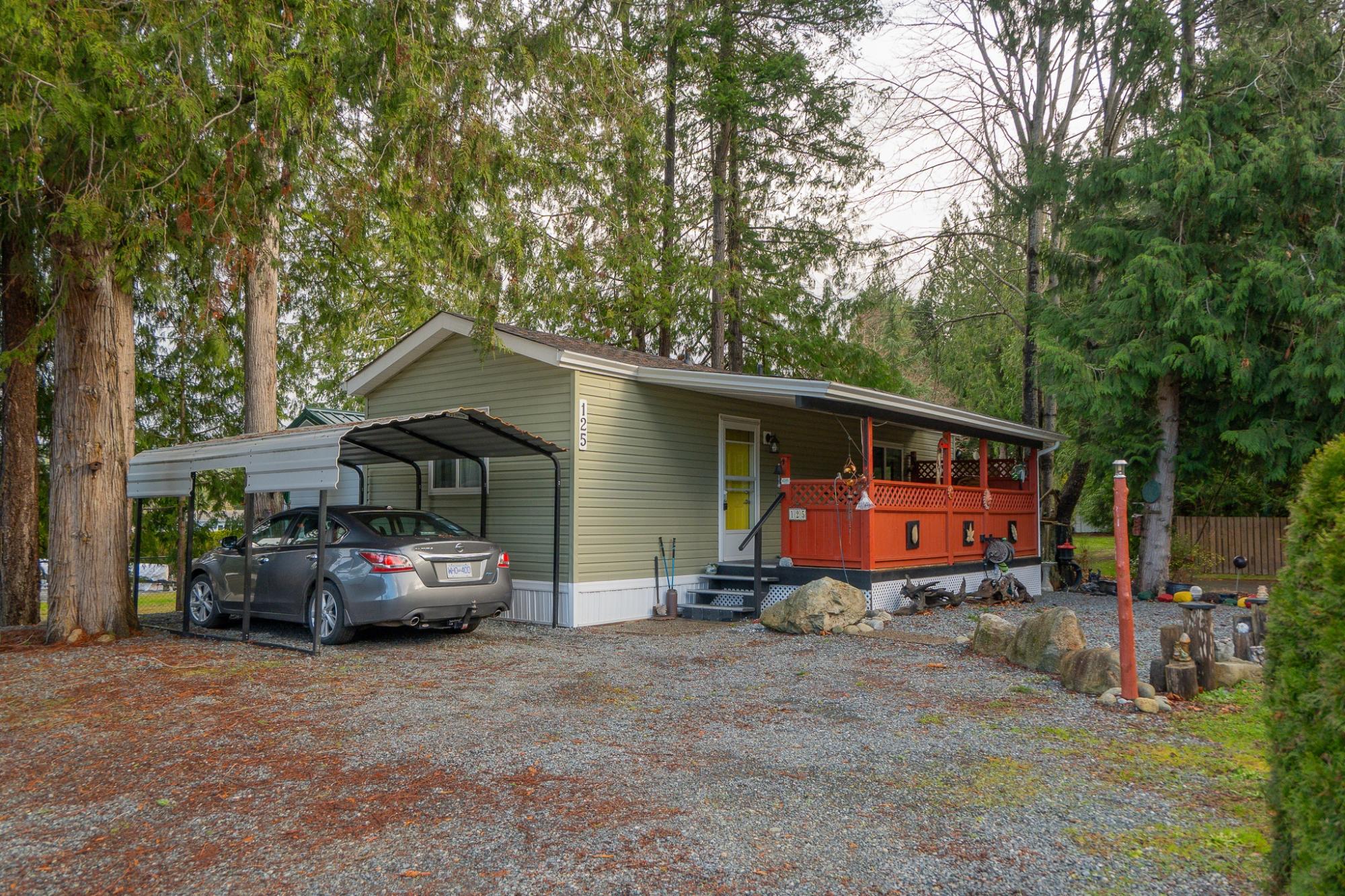 2018 Park Model Manufactured Home on a delightful pad with grassy views all around. This home will be perfect for singles or couples with one bedroom and bath and only 7 years old. The kitchen, dining and living room are cozy and compact but roomy enough for a kitchen table and guests. You'll be comfortable year round with a new heat pump and gas stove. An attractive, covered deck at the entry provides a lovely sitting space to enjoy this private corner of the park. An insulated, wired shop behind the home provides a space for hobbies and crafts as well as ample storage. Your car will be dry under the carport and there is an extra parking space on the pad. Deighton Creek Mobile Home Park is one of the most attractive parks in the area and only thirteen minutes from central Powell River. This is a lovely home on a special pad in a great park!