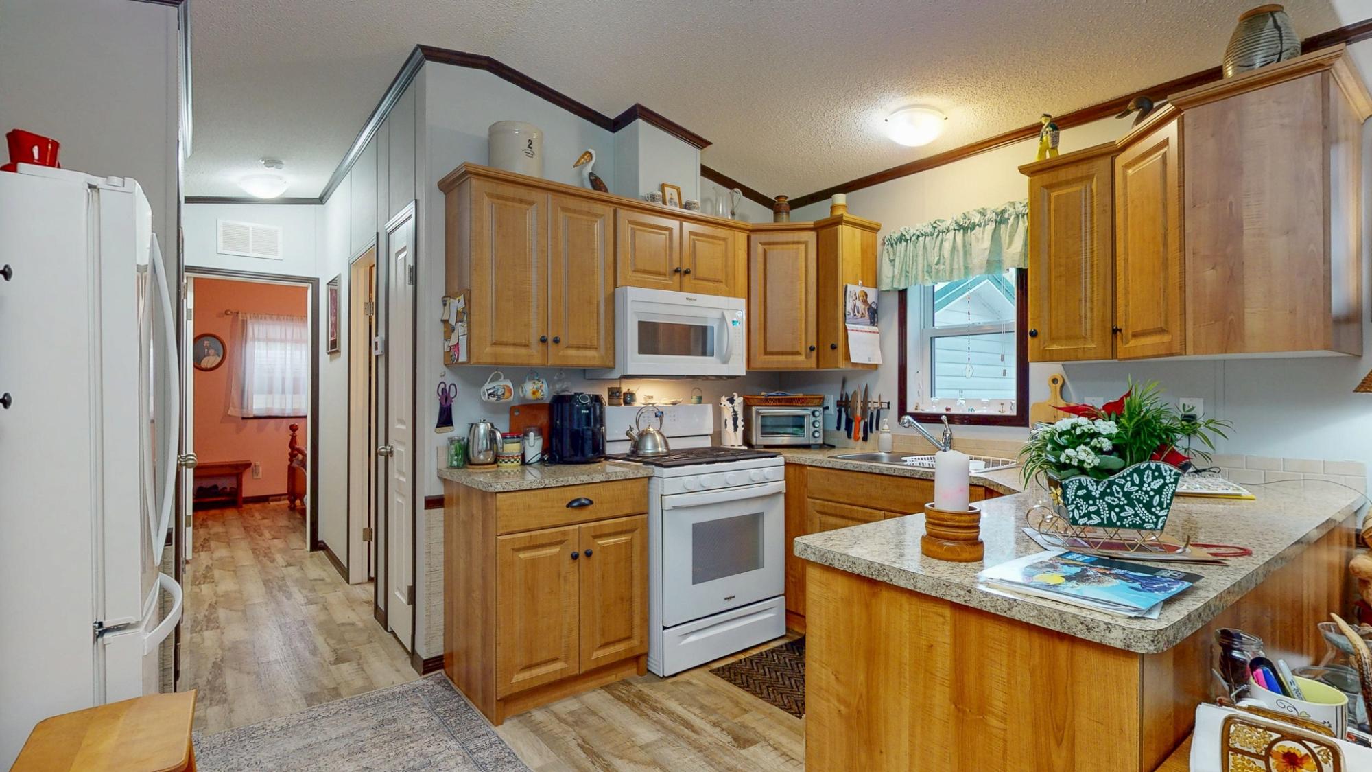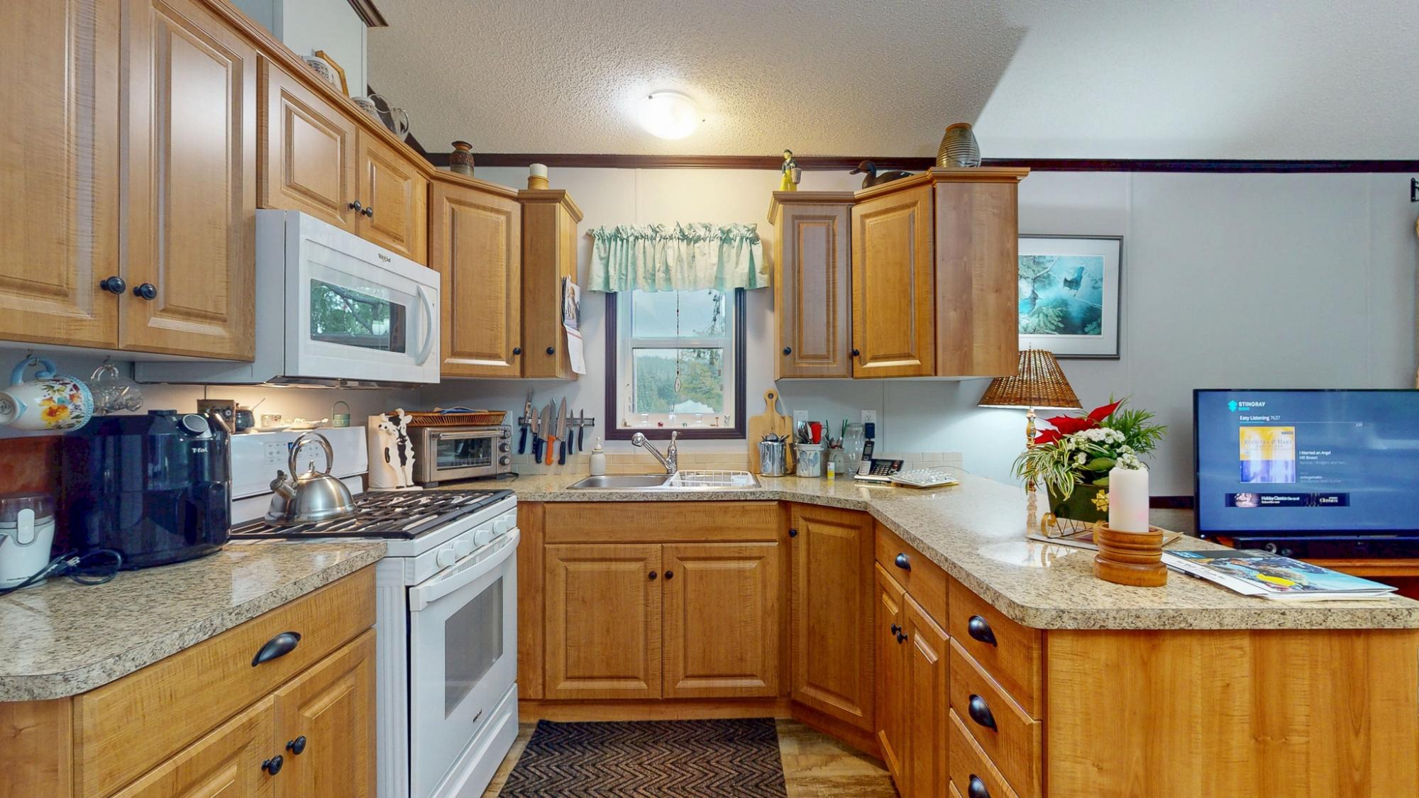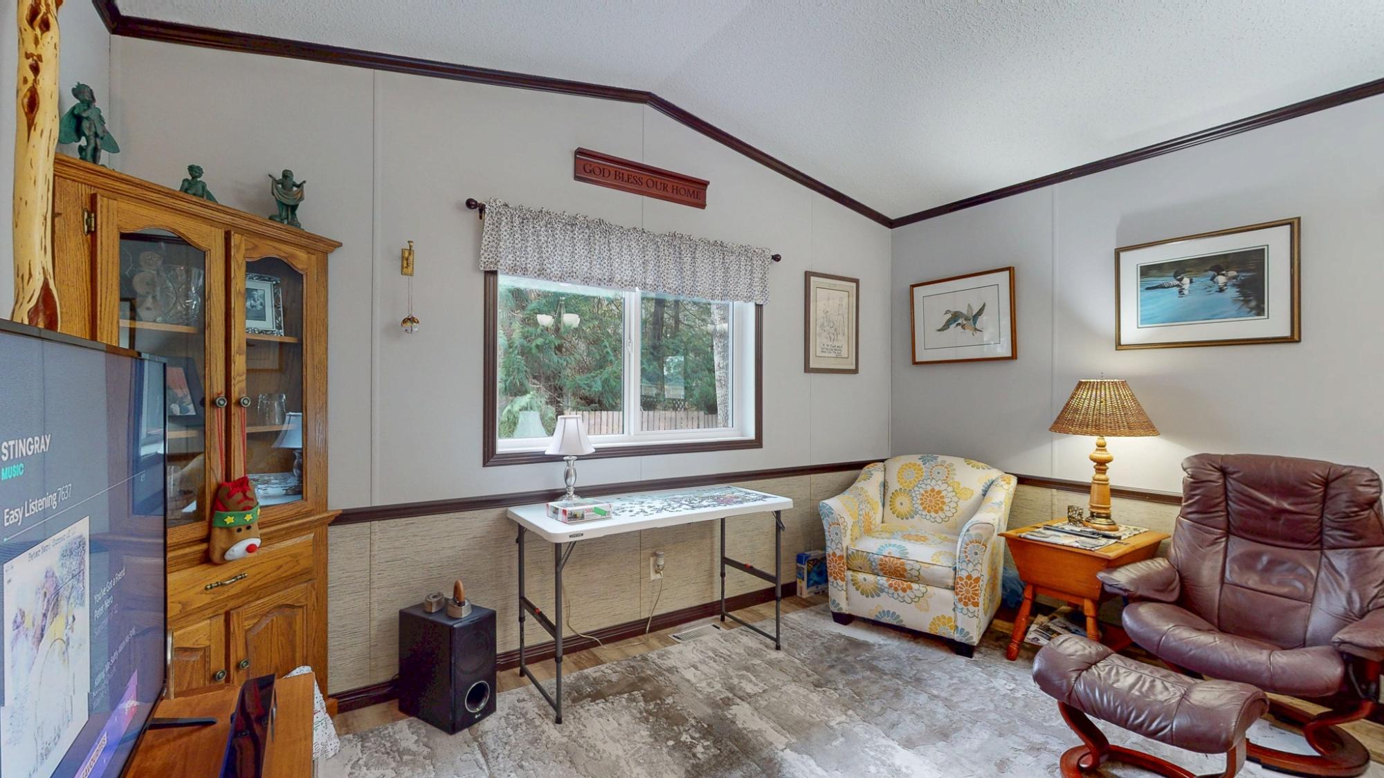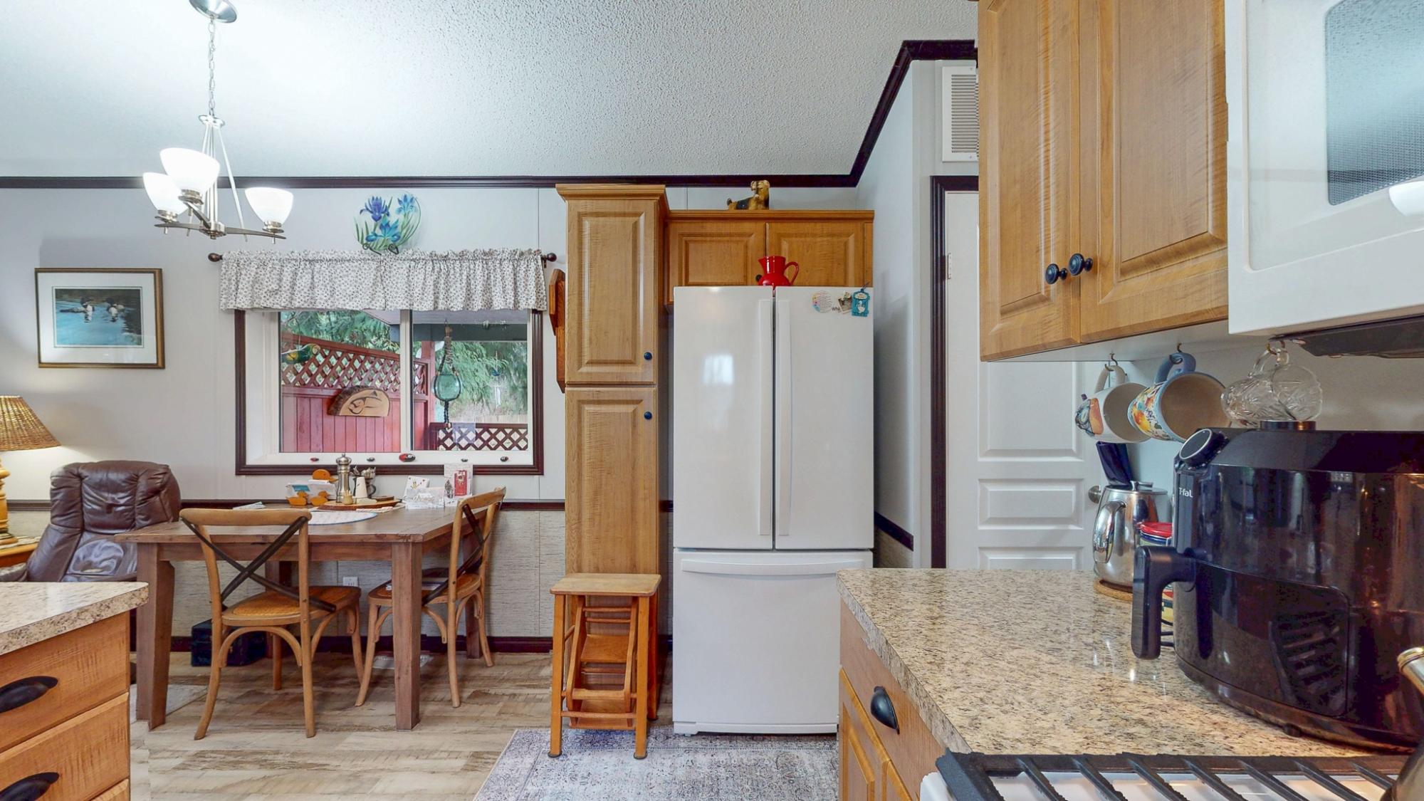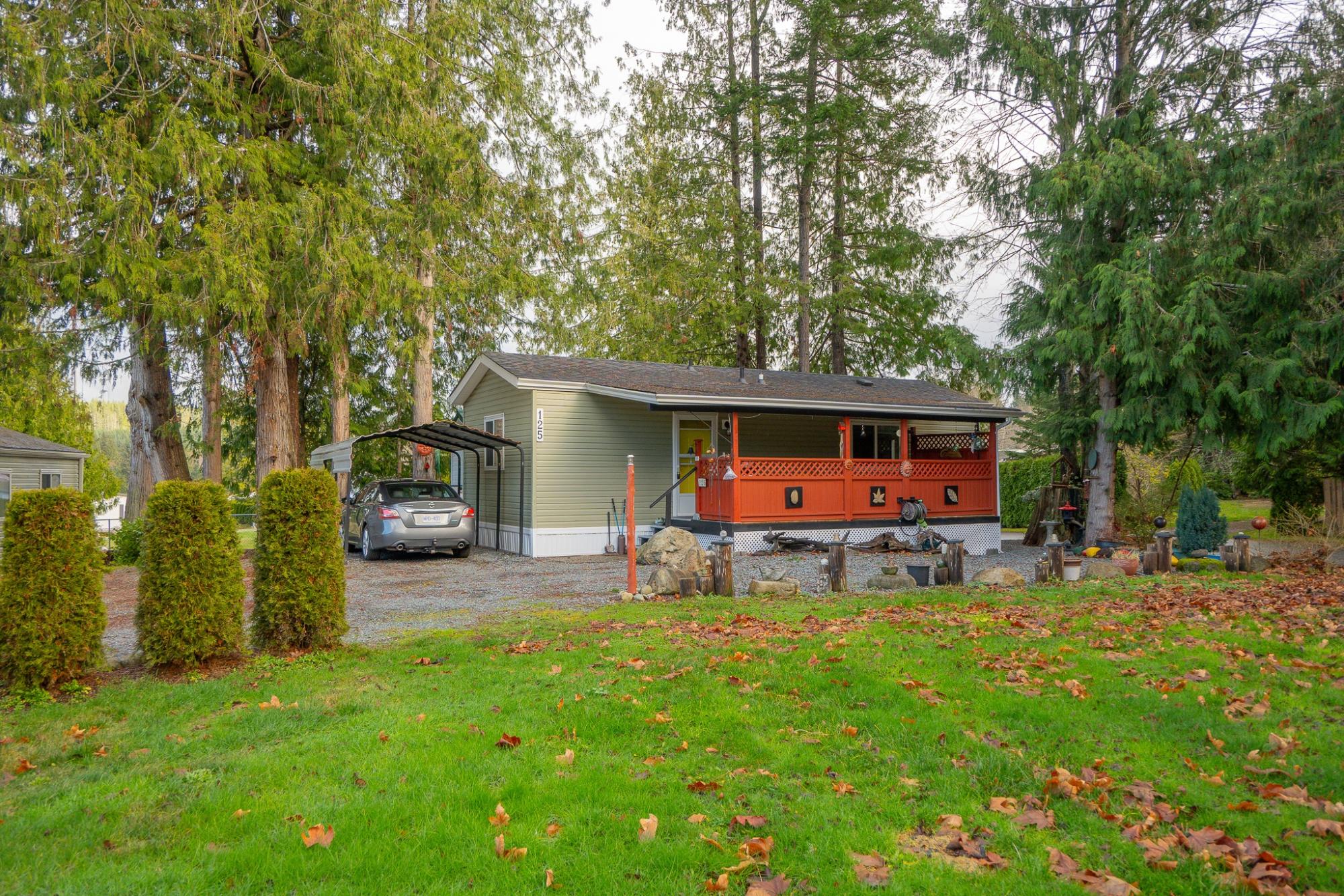 2018 Park Model Manufactured Home on a delightful pad with grassy views all around. This home will be perfect for singles or couples with one bedroom and bath and only 7 years old. The kitchen, dining and living room are cozy and compact but roomy enough for a kitchen table and guests. You'll be comfortable year round with a new heat pump and gas stove. An attractive, covered deck at the entry provides a lovely sitting space to enjoy this private corner of the park. An insulated, wired shop behind the home provides a space for hobbies and crafts as well as ample storage. Your car will be dry under the carport and there is an extra parking space on the pad. Deighton Creek Mobile Home Park is one of the most attractive parks in the area and only thirteen minutes from central Powell River. This is a lovely home on a special pad in a great park!