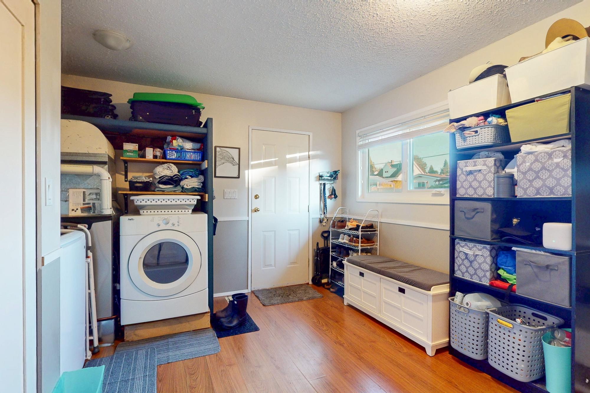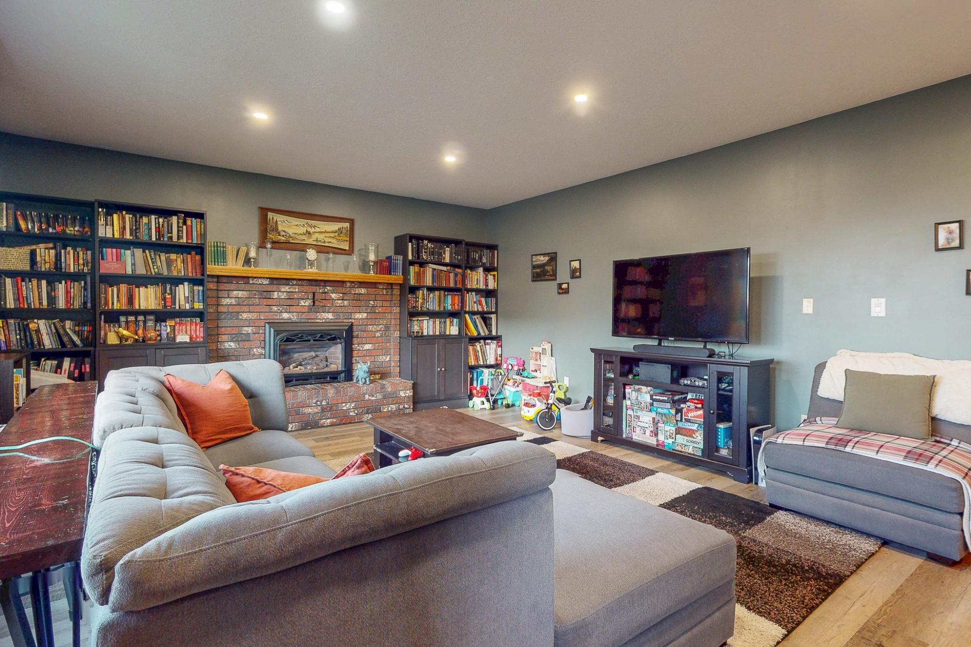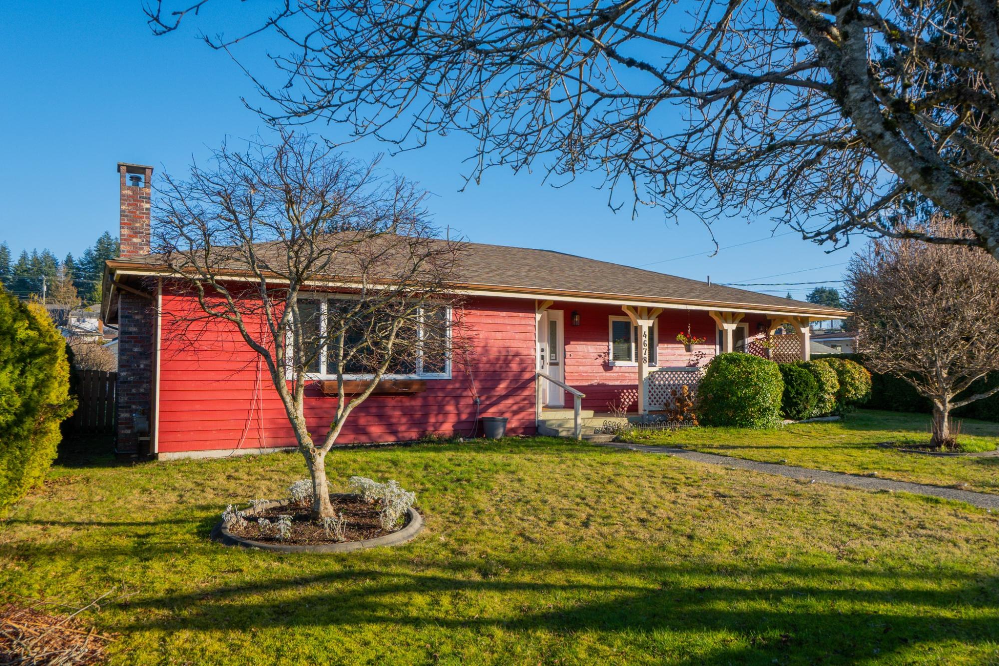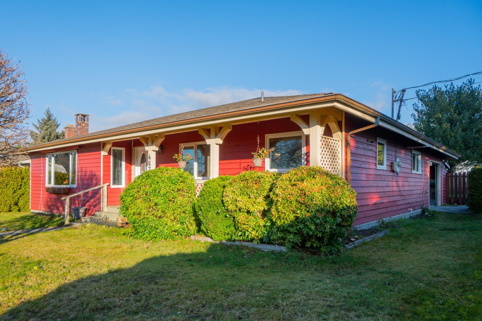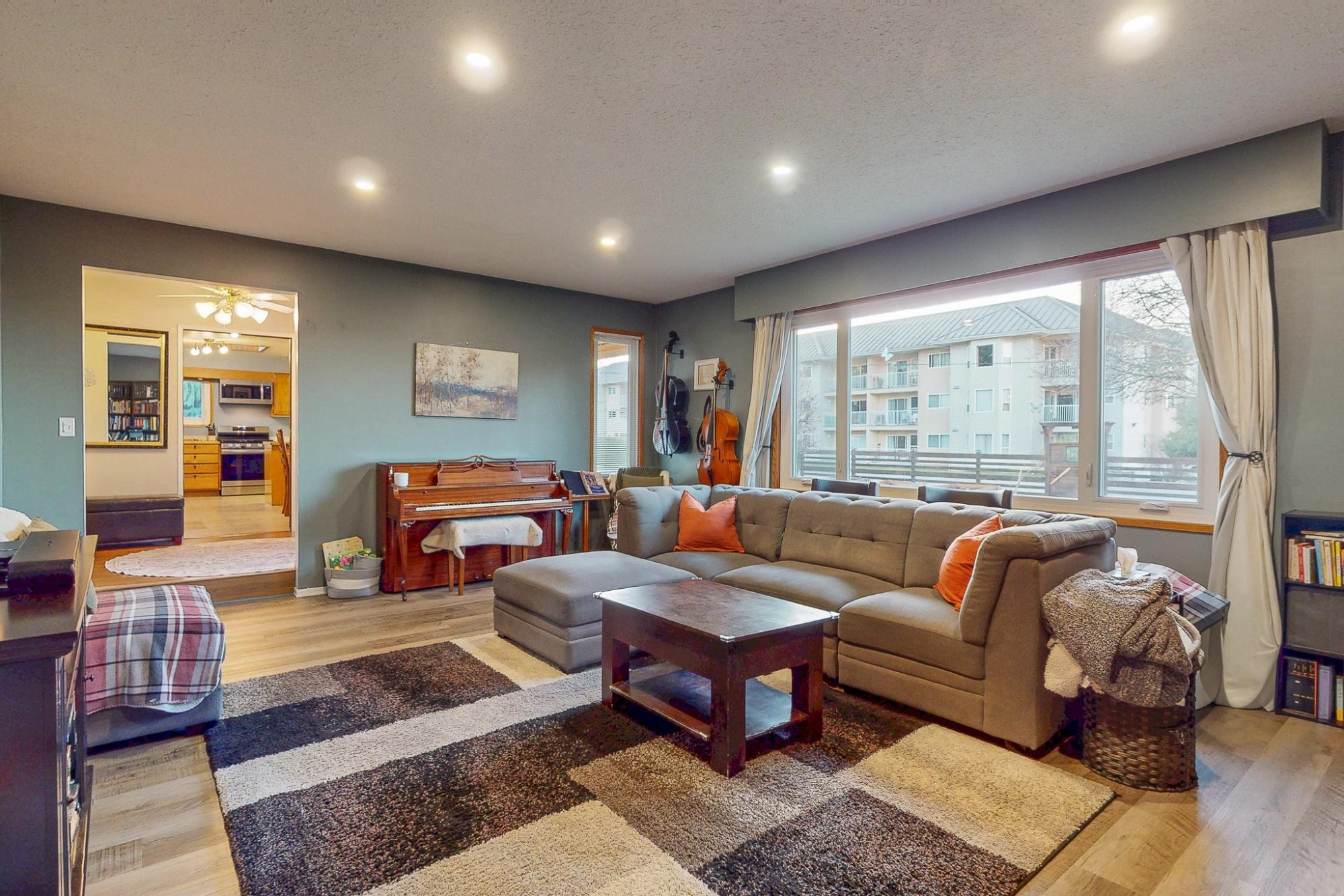 Super cute central rancher on a large corner lot. With recent updates including furnace, hot water tank, dishwasher, washer, all new windows, paint and flooring, this 2 bedroom/2 bath home has been a perfect starter home for a couple, only walking distance to shopping and appointments. A large entryway welcomes you to a spacious, cozy living room with gas fireplace on one side and a conveniently designed kitchen with room enough for two ’chefs’ and lots of storage on the other side. A fully finished heated studio outside is an ideal office space or extra bedroom. The drive-through garage with lockable storage shed/workshop flows into the fully fenced backyard which gets lots of sunlight for gardens. This one is all ready for move in! Call, text or email for a showing.
