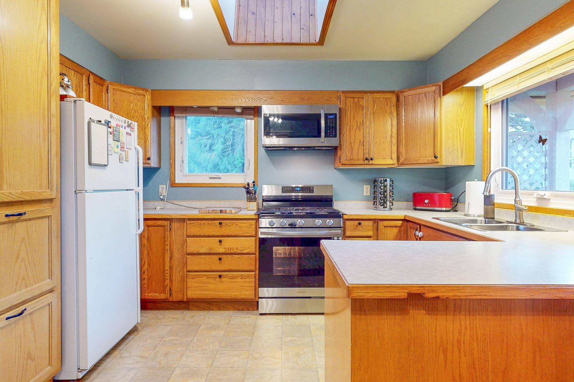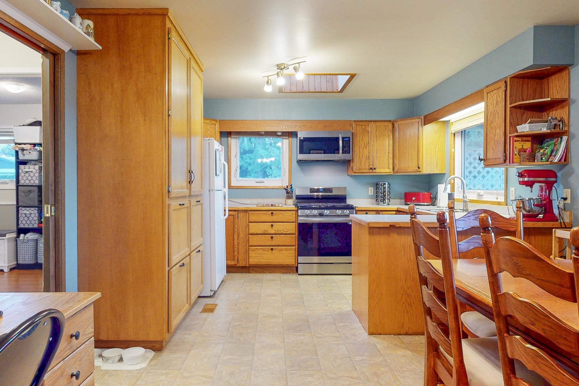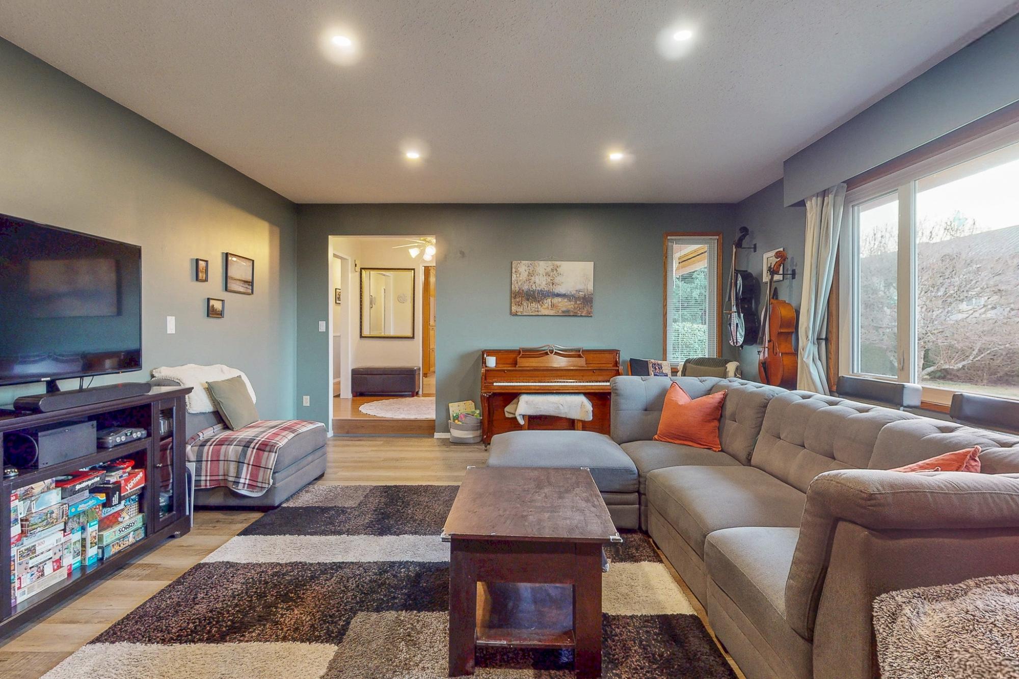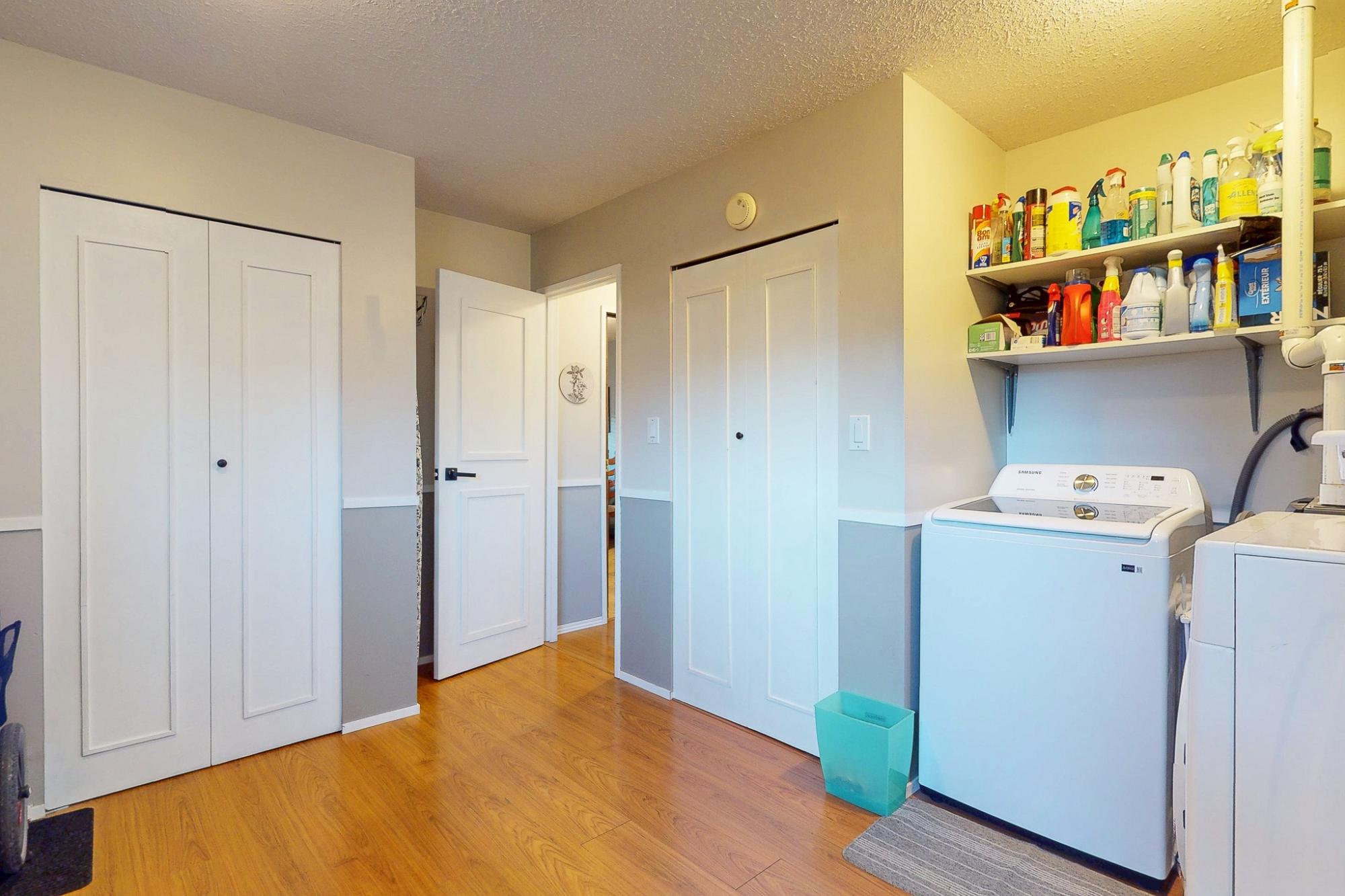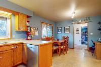 Super cute central rancher on a large corner lot. With recent updates including furnace, hot water tank, dishwasher, washer, all new windows, paint and flooring, this 2 bedroom/2 bath home has been a perfect starter home for a couple, only walking distance to shopping and appointments. A large entryway welcomes you to a spacious, cozy living room with gas fireplace on one side and a conveniently designed kitchen with room enough for two ’chefs’ and lots of storage on the other side. A fully finished heated studio outside is an ideal office space or extra bedroom. The drive-through garage with lockable storage shed/workshop flows into the fully fenced backyard which gets lots of sunlight for gardens. This one is all ready for move in! Call, text or email for a showing.