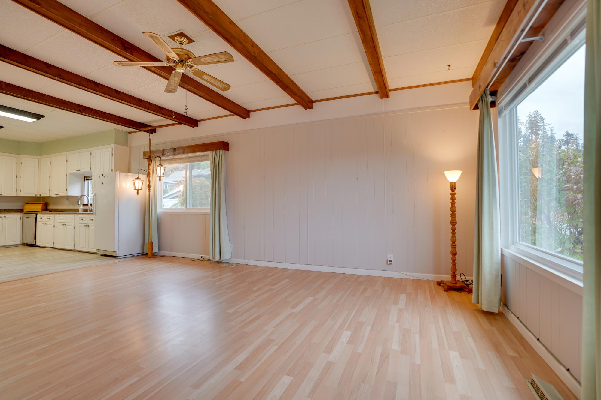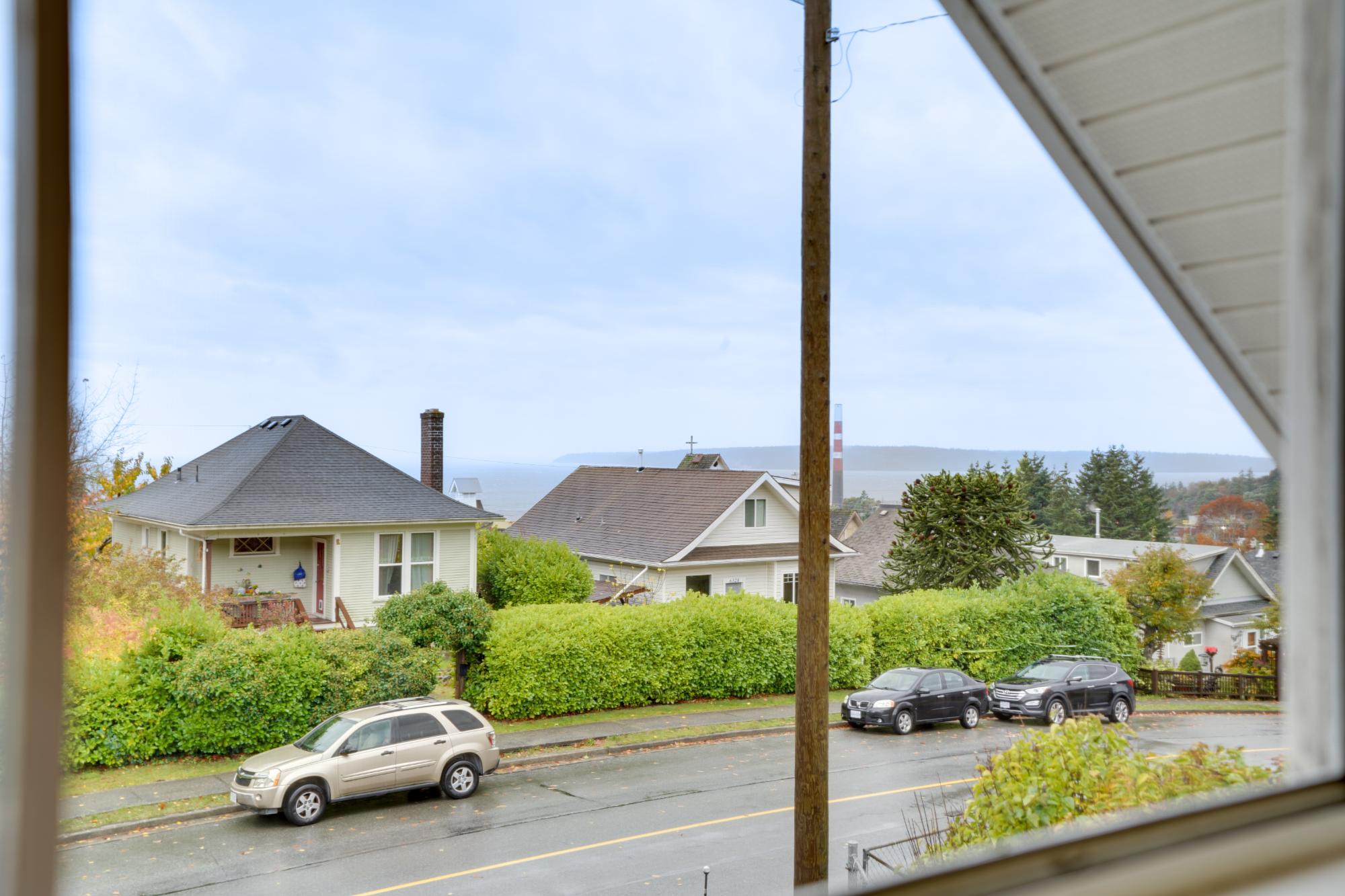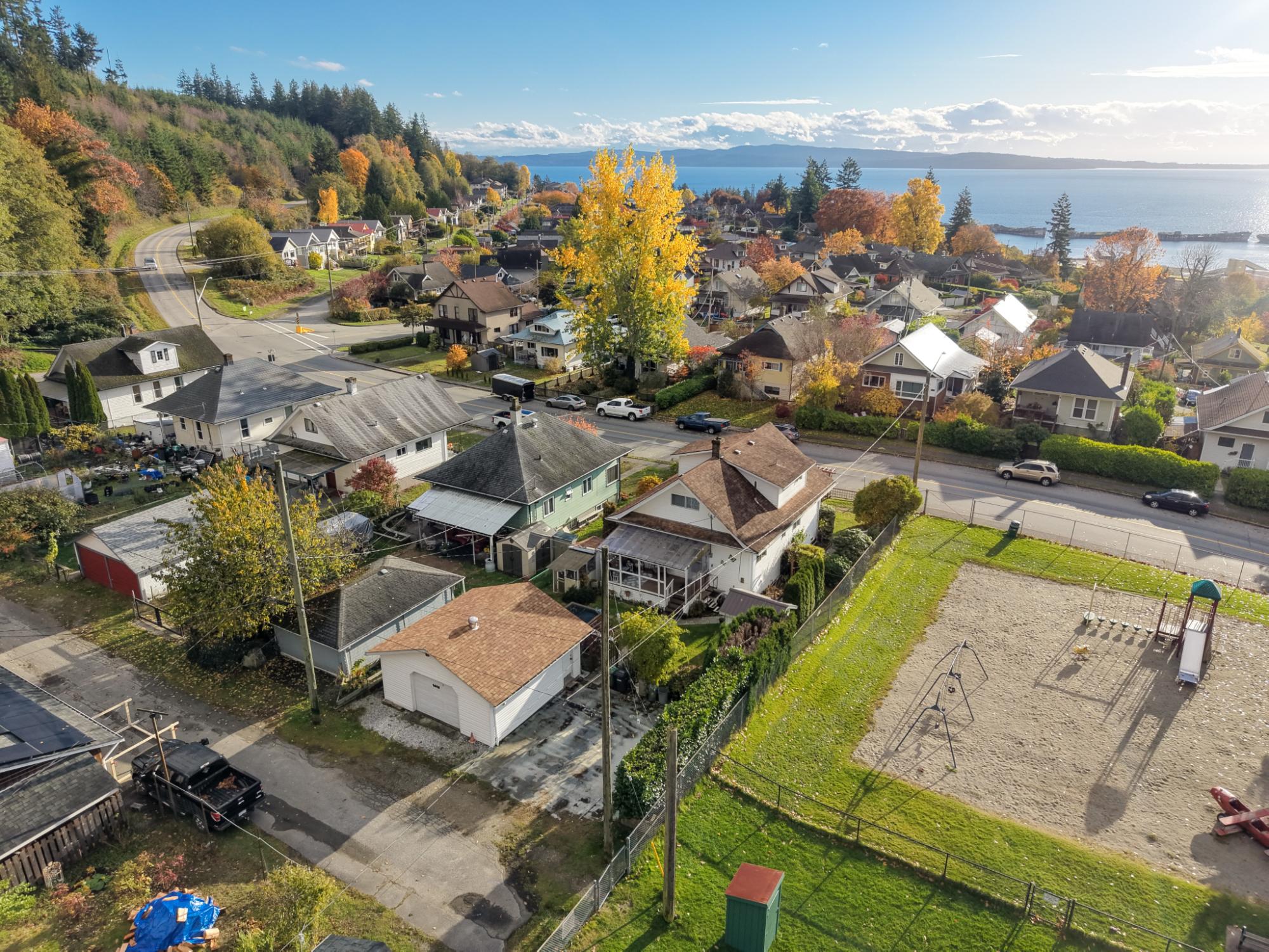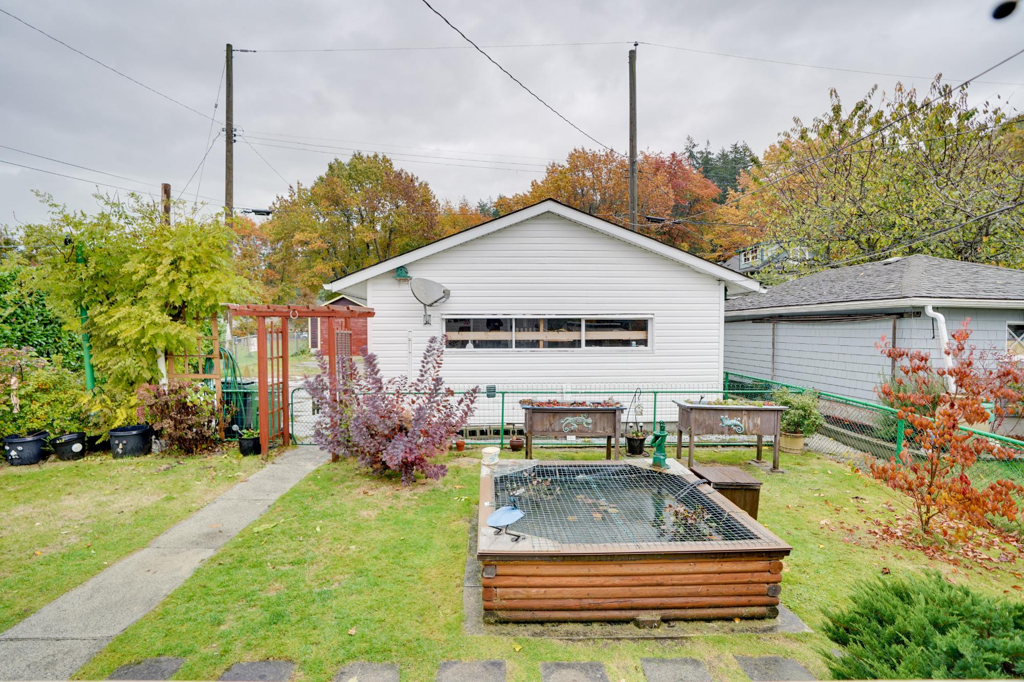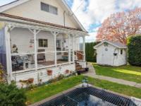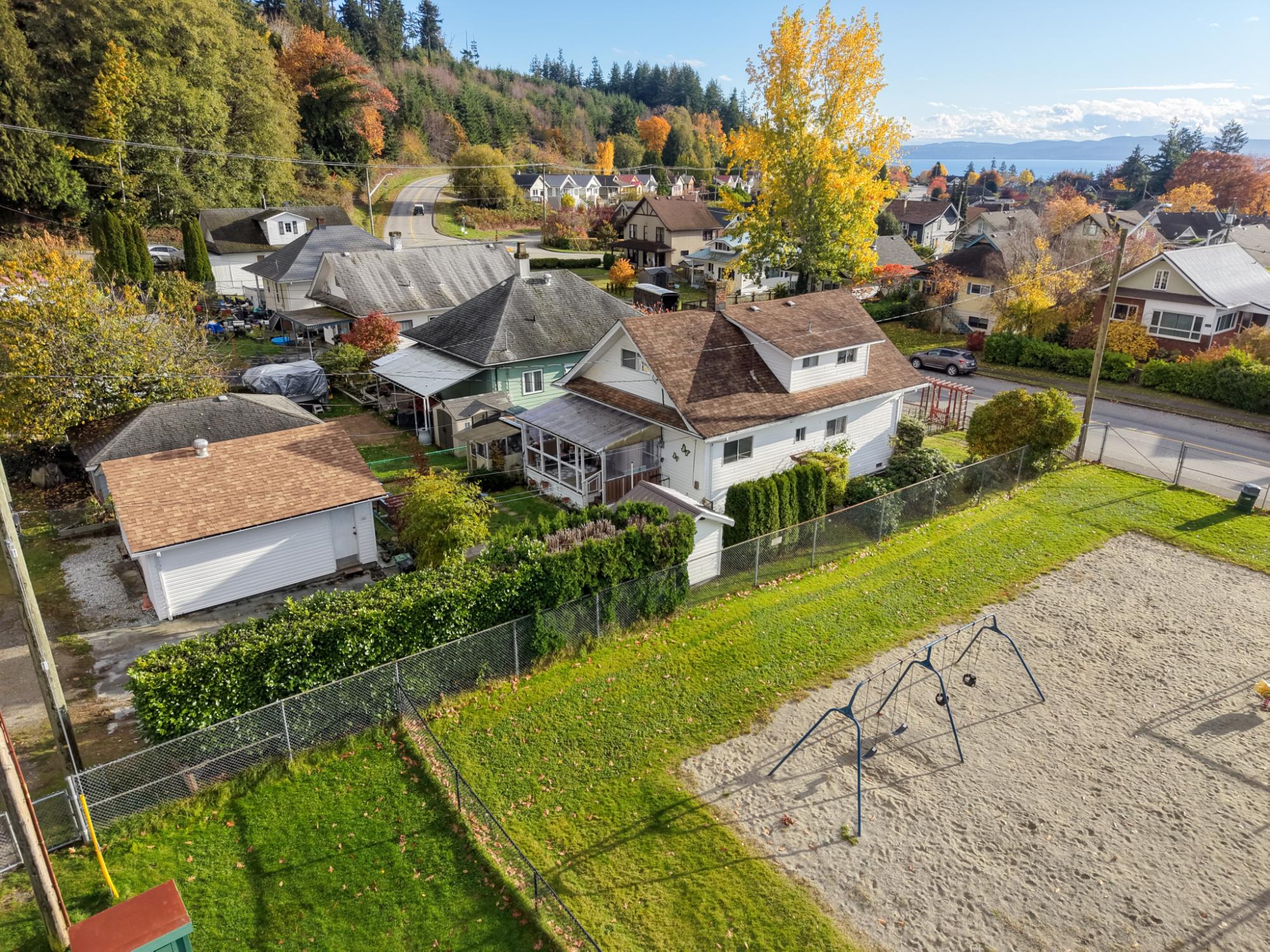 Absolutely lovely family home in Historic Townsite. 2 spacious top floor bedrooms with 3 piece bath, one bedroom boosts an Ocean view! Open and bright main living area with over height ceilings, large bedroom on this level with second full bath and large laundry/storage area. Solid as a rock and next door to an incredible park for the kids and dogs. Truly a one of a kind location. Open the gate and let them run! The yard is super with many perennials that have been established for decades. A wired wine shed and Koi pond are features that you don't see everyday. You were asking about a garage? Of course, there is a well constructed garage with alley access that will protect the car and still leave space for projects, such a nice home! Need a home now? This one is ready for you to move in..come see.