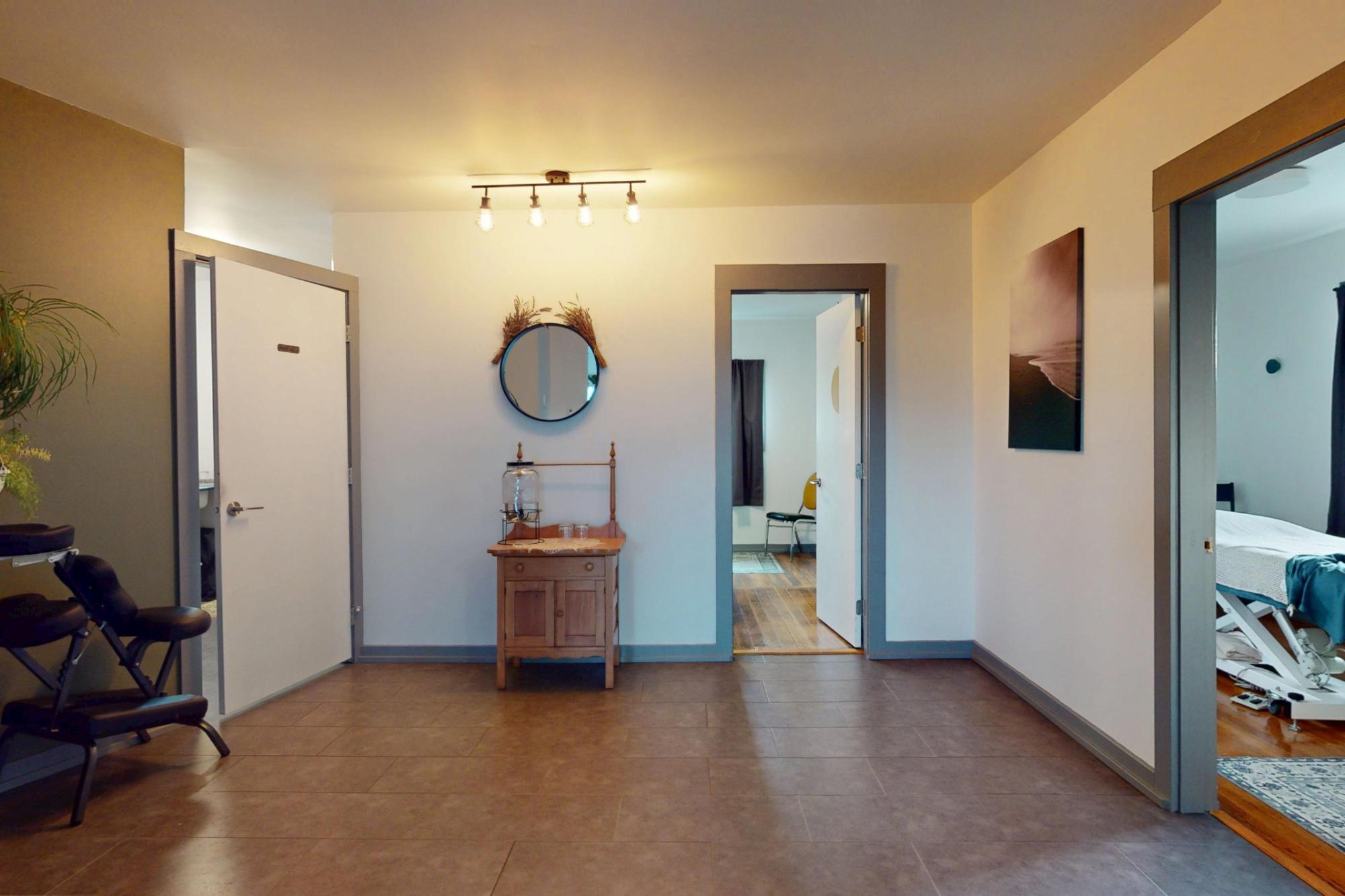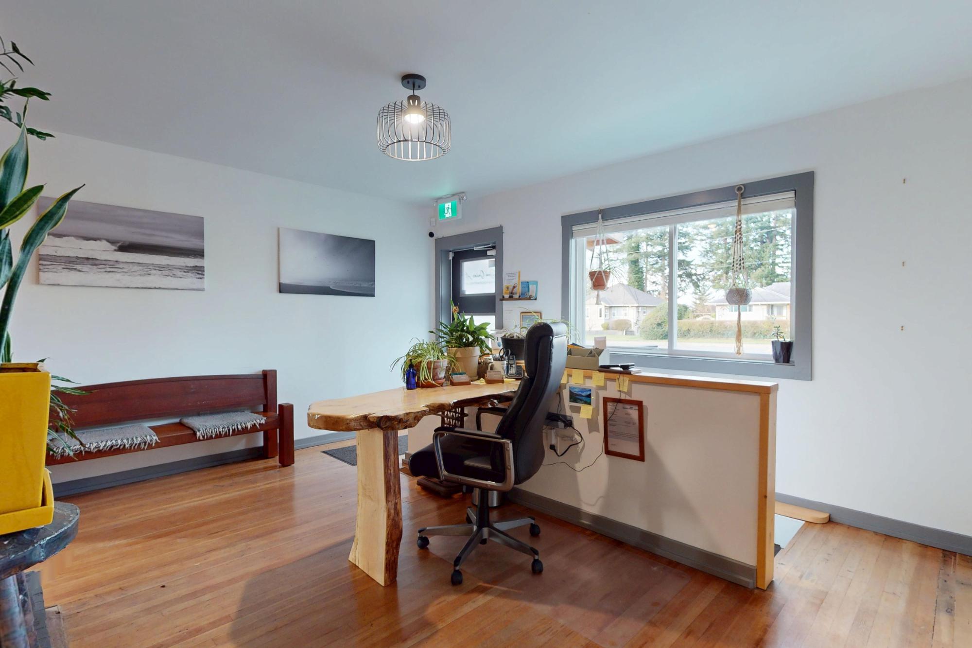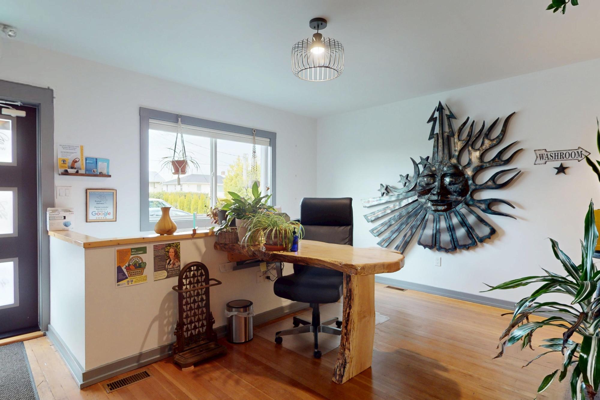 Beautifully renovated commercial opportunity in a prime central location! Extensively updated in 2022, this charming character building blends the warmth of a home with flexible C2 zoning for a wide range of business uses. Interior upgrades include restored original flooring, new paint, updated electrical and blown-in attic insulation. The exterior features a new roof, windows and siding. The layout offers three treatment rooms, welcoming reception with 2-piece bath, staff room with second 2-piece bath, and a small rear porch. The unfinished basement includes a sound-proofed laundry area and secure storage. Modern HVAC system (2022) serviced annually. Previously home to a thriving wellness centre. Ample on-site parking and excellent visibility make this a rare turnkey commercial offering in Powell River.