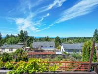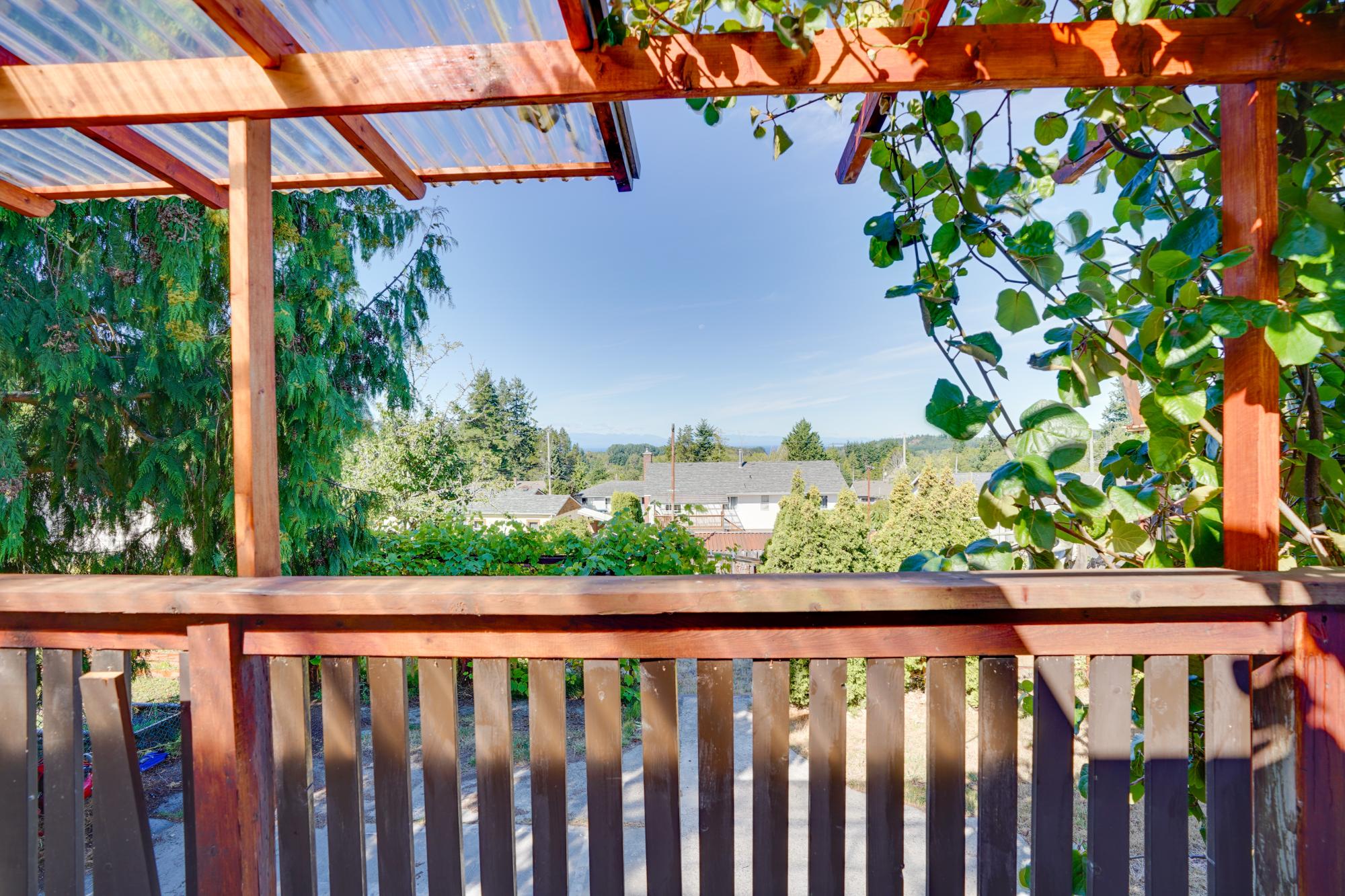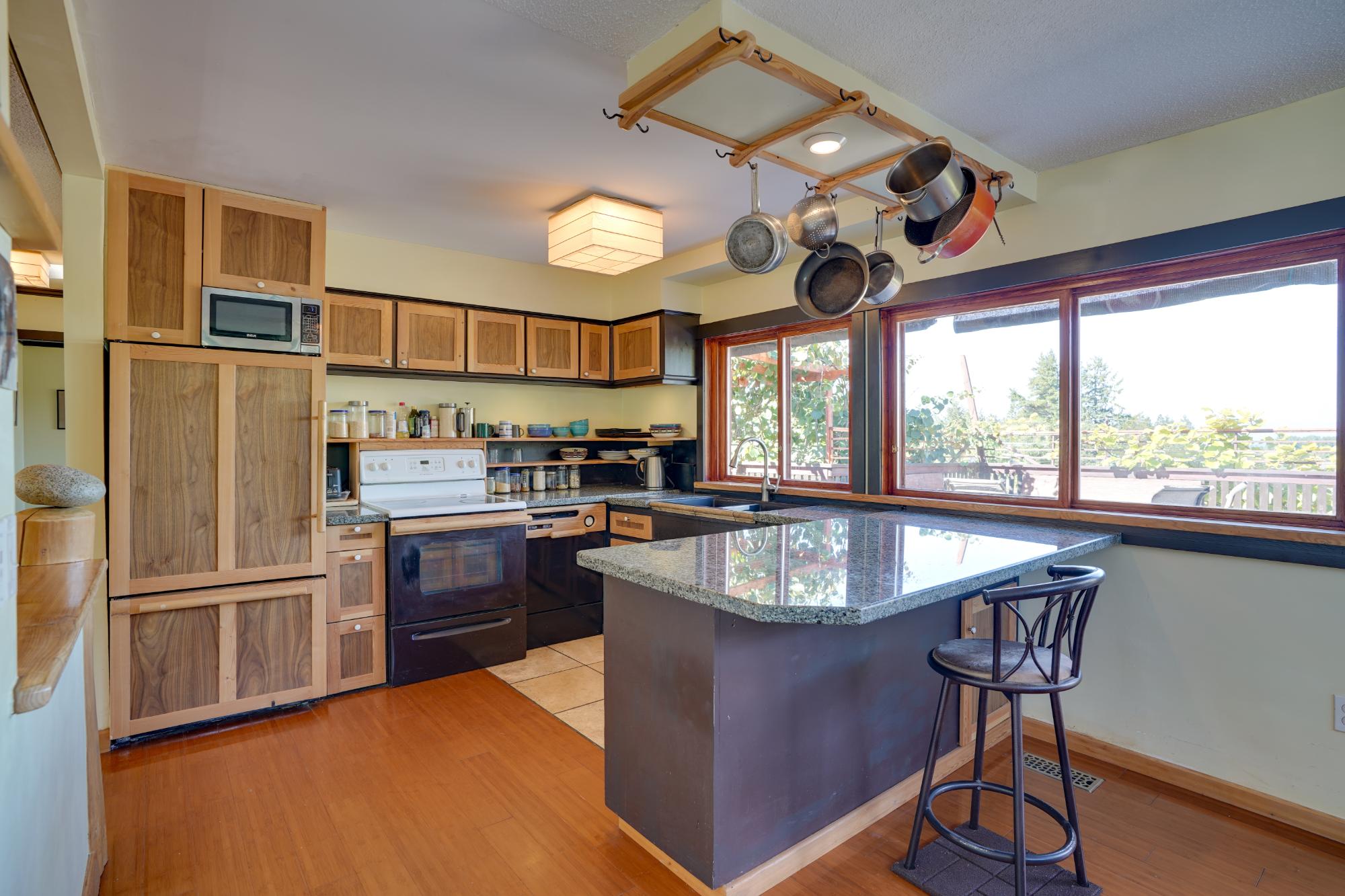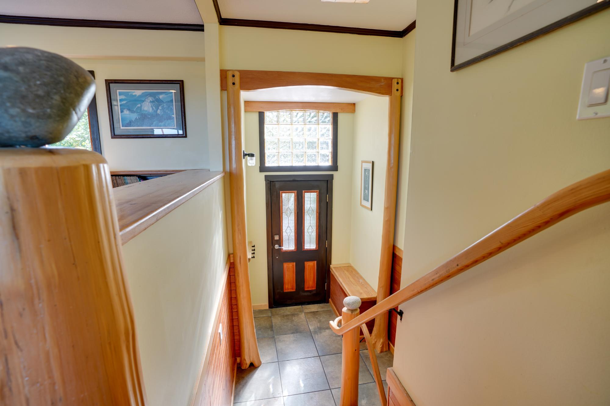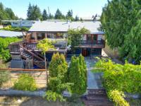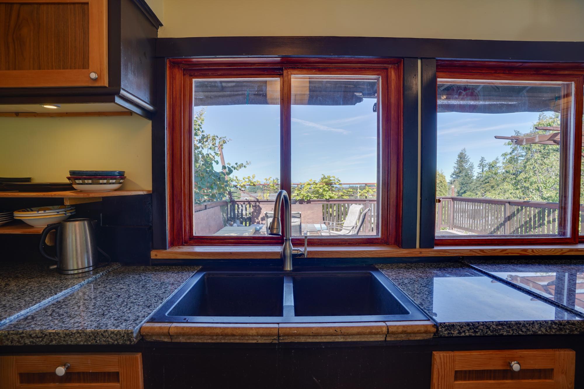 This split-level home offers ocean views, natural light, and handcrafted charm. Upstairs features 2 beds and 1 bath, with a third bedroom down plus a separate 1-bed in-law suite with its own entrance and yard. Updates include a newer roof, hot water on demand, central A/C, and added attic insulation. The granite kitchen, wood floors, and custom woodwork throughout create warmth and personality. French doors in the primary open to a large deck—perfect for sunset views. The terraced yard offers distinct spaces for home and suite living, plus boat/RV parking and a workshop. Set in peaceful Wildwood just around the corner from Sunset Park and trails, this isn’t your average home.