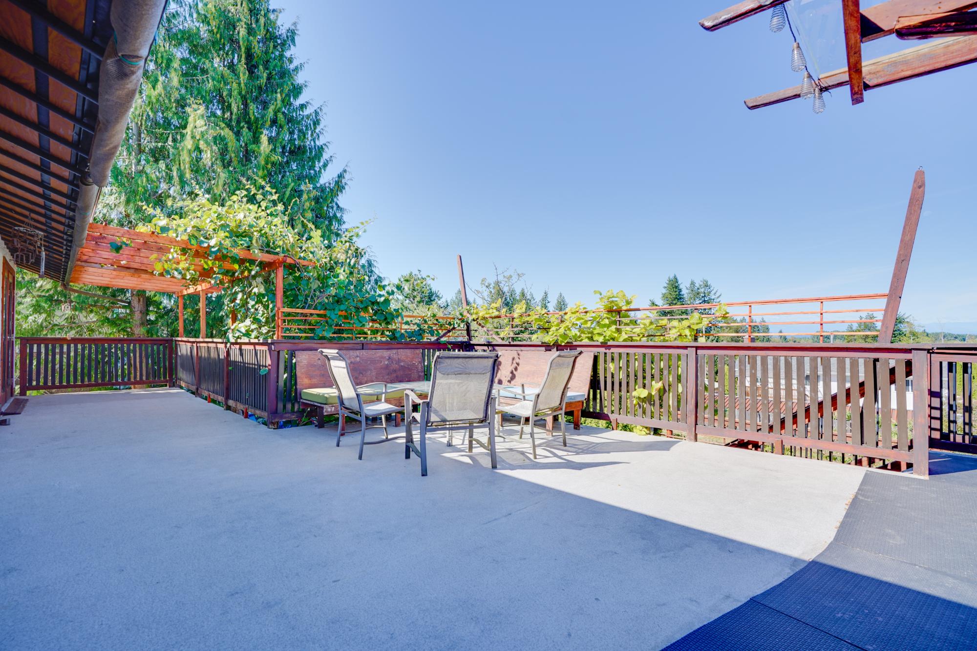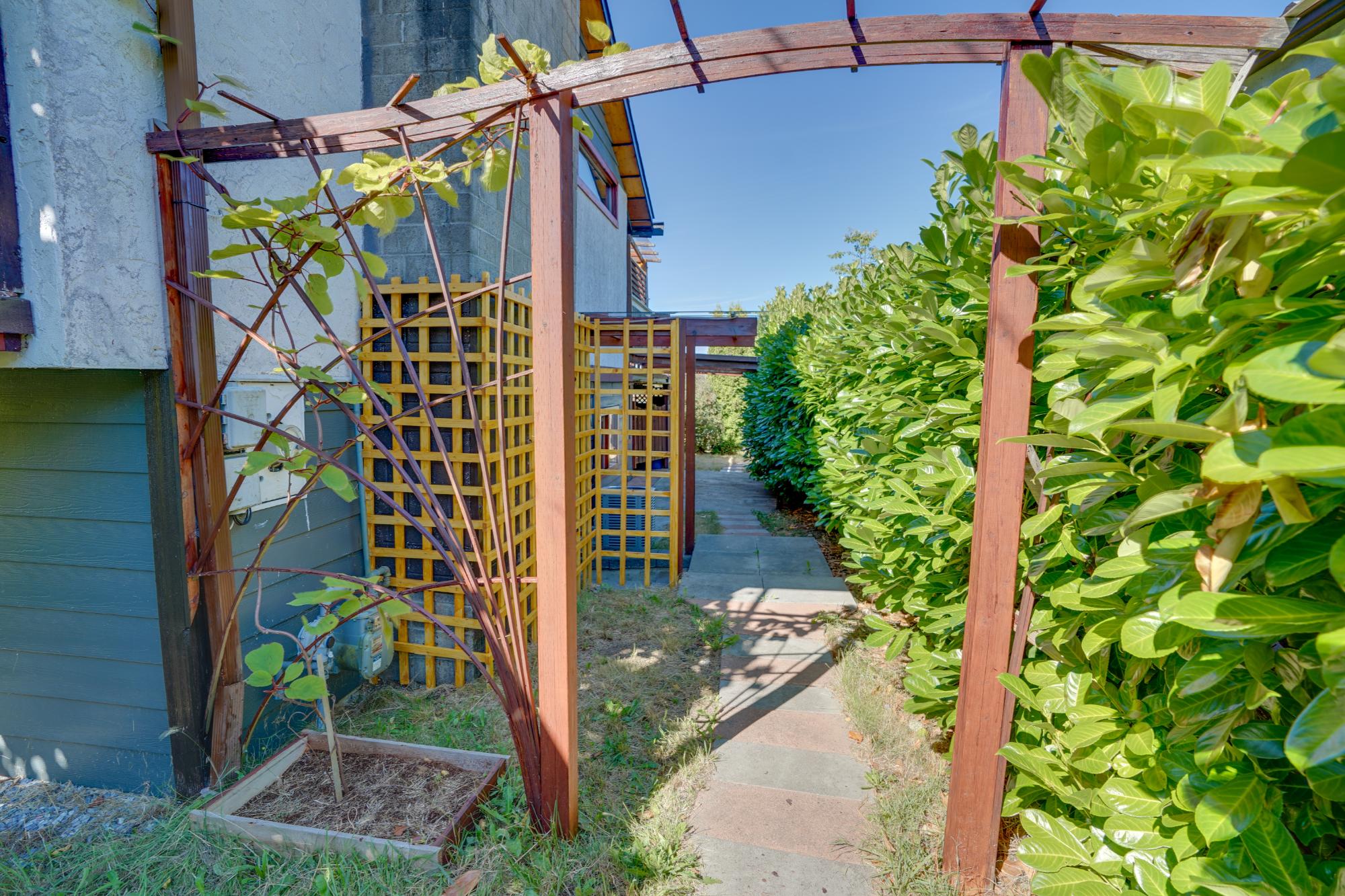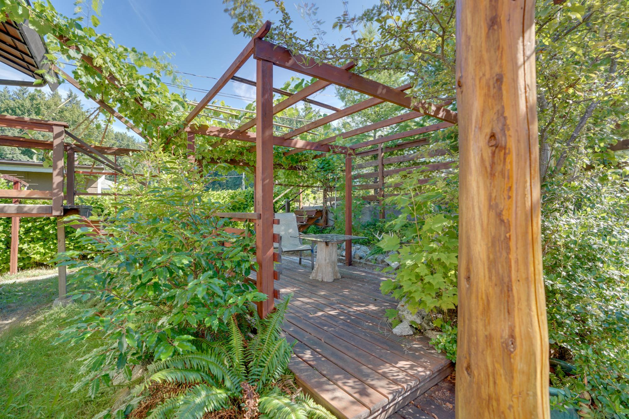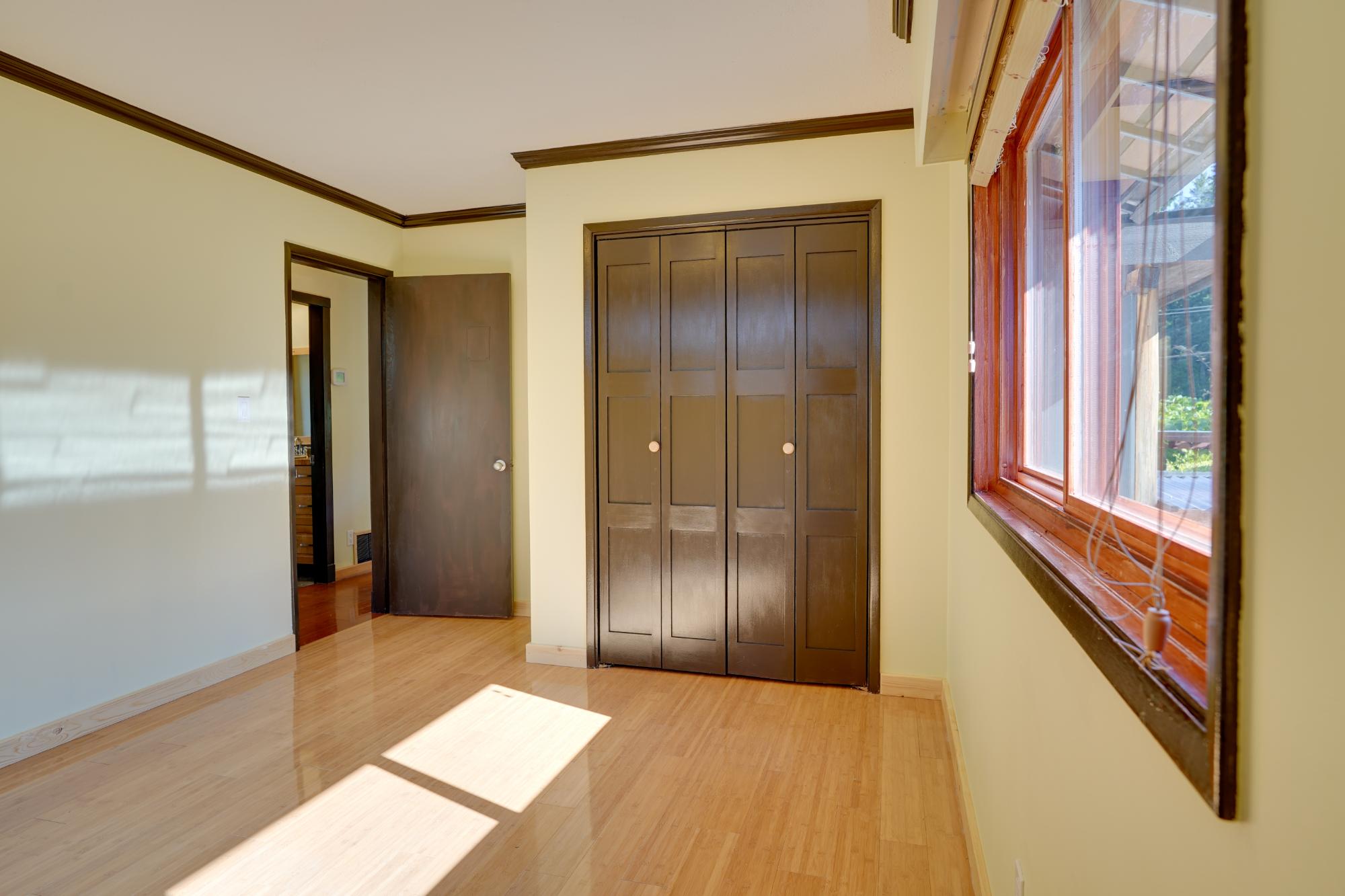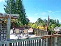 This split-level home offers ocean views, natural light, and handcrafted charm. Upstairs features 2 beds and 1 bath, with a third bedroom down plus a separate 1-bed in-law suite with its own entrance and yard. Updates include a newer roof, hot water on demand, central A/C, and added attic insulation. The granite kitchen, wood floors, and custom woodwork throughout create warmth and personality. French doors in the primary open to a large deck—perfect for sunset views. The terraced yard offers distinct spaces for home and suite living, plus boat/RV parking and a workshop. Set in peaceful Wildwood just around the corner from Sunset Park and trails, this isn’t your average home.