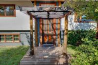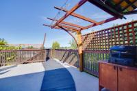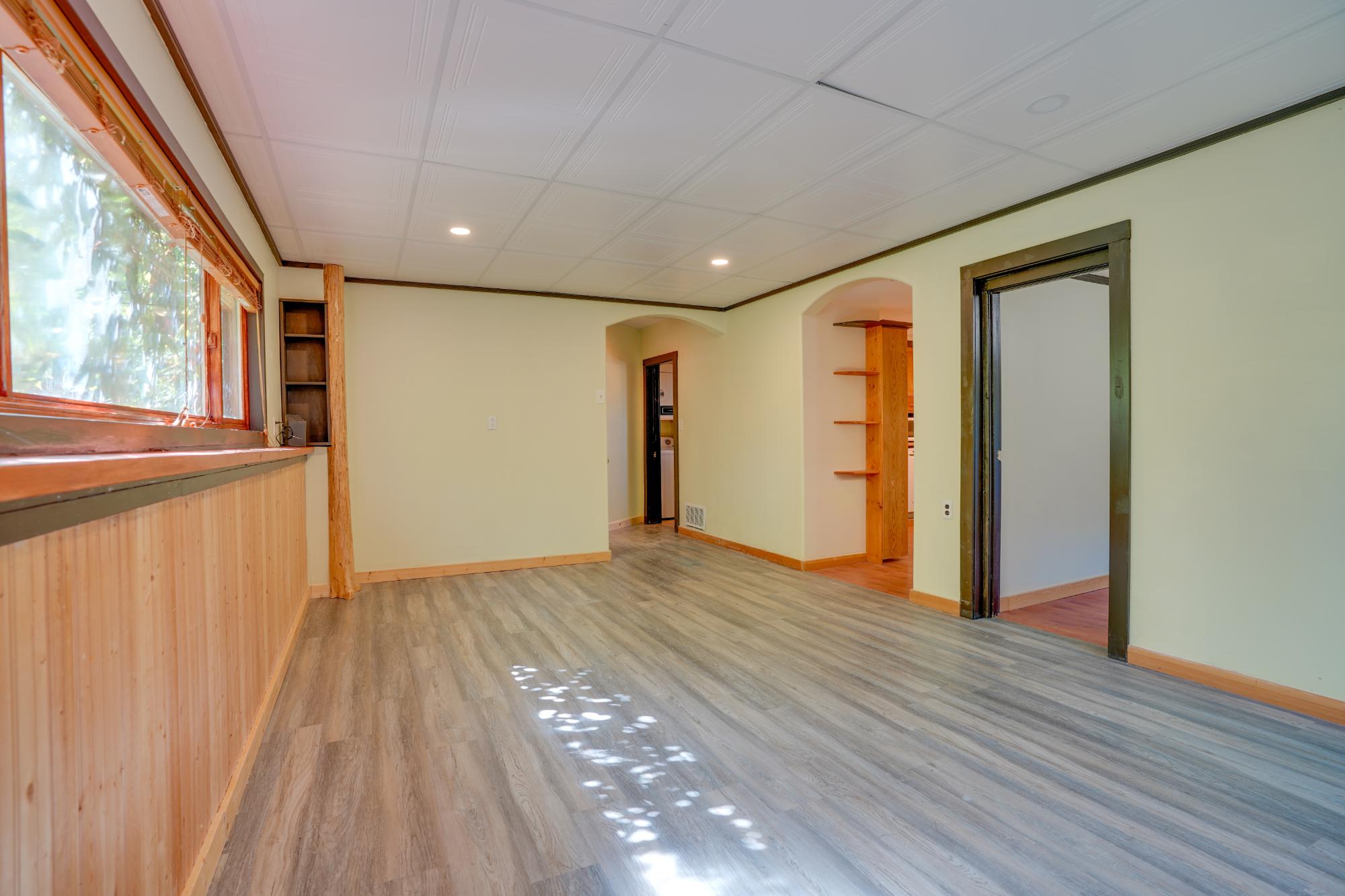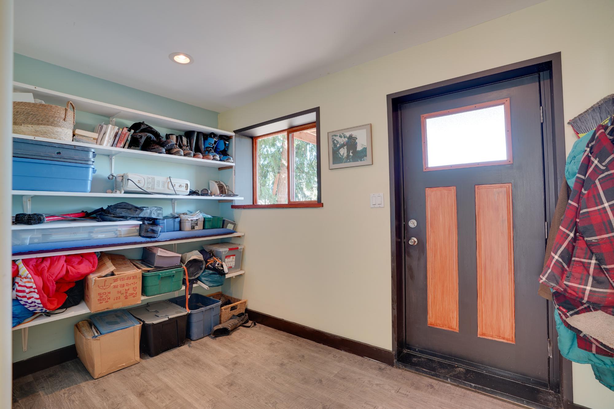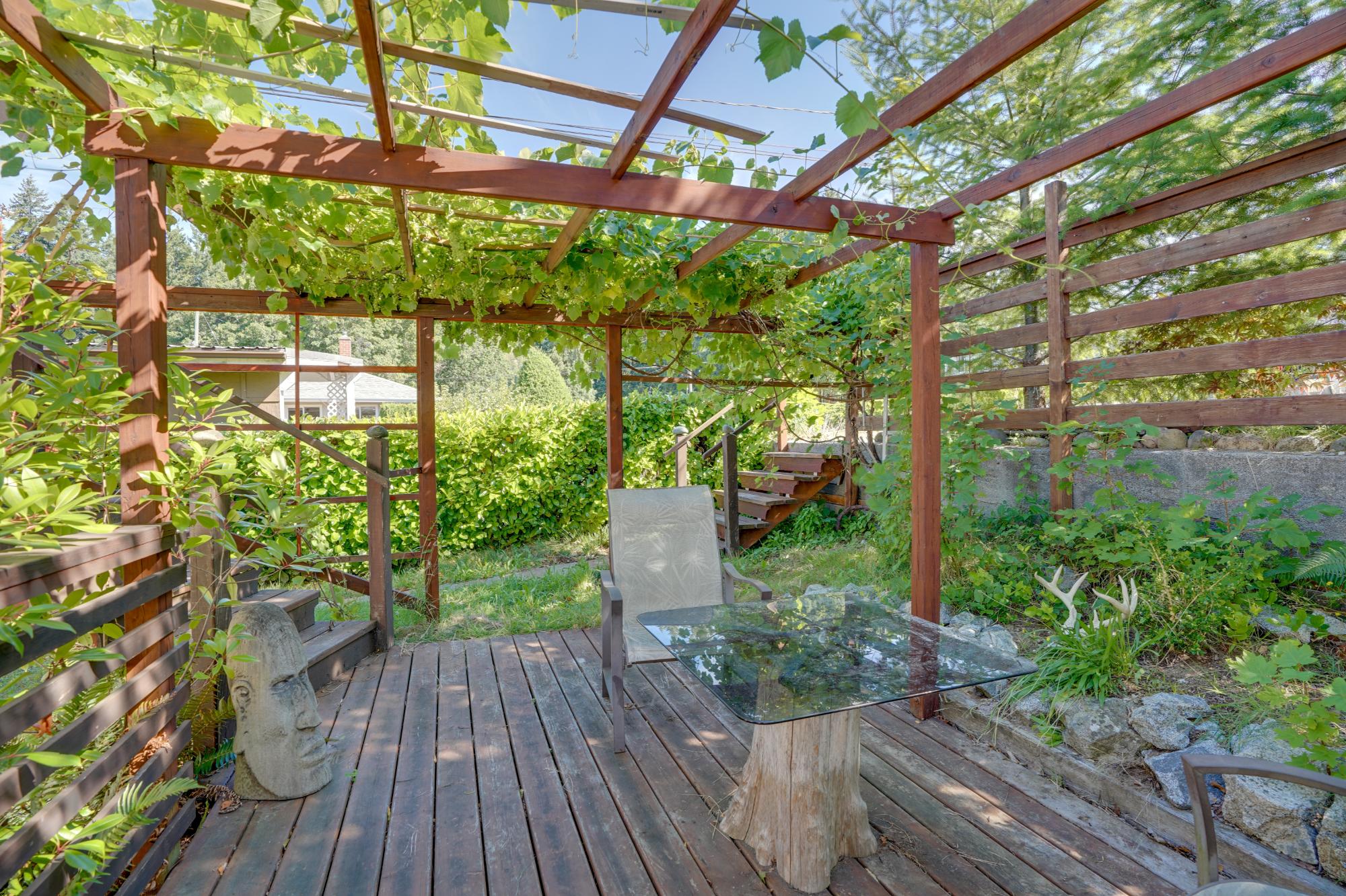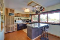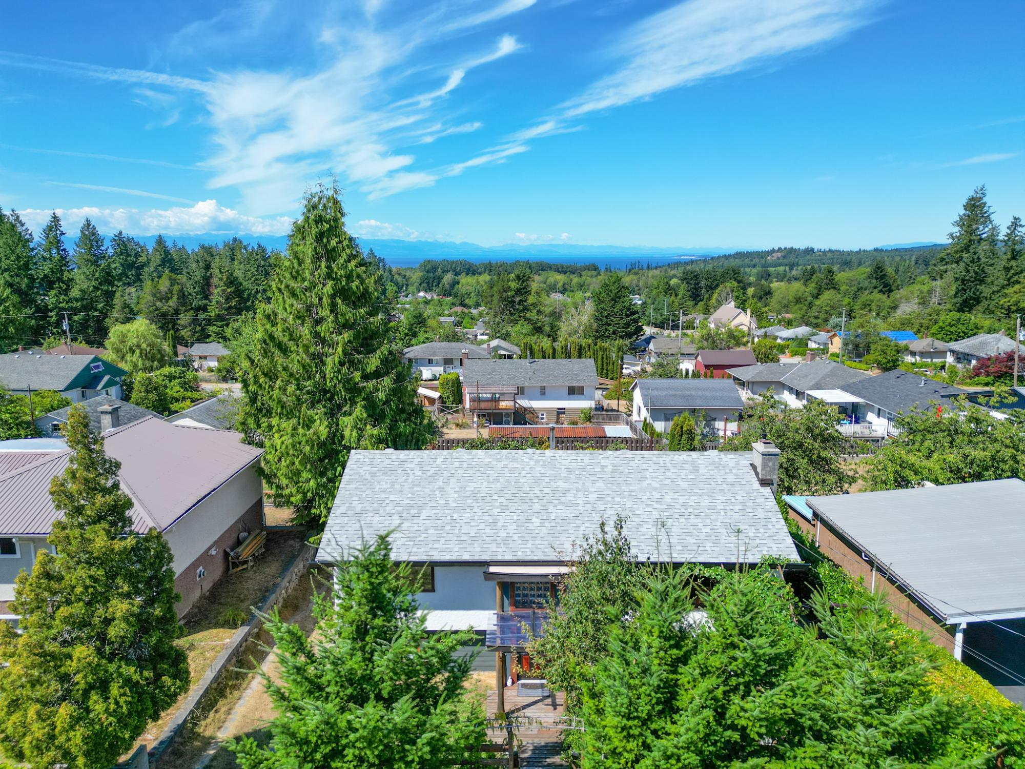This split-level home offers ocean views, natural light, and handcrafted charm. Upstairs features 2 beds and 1 bath, with a third bedroom down plus a separate 1-bed in-law suite with its own entrance and yard. Updates include a newer roof, hot water on demand, central A/C, and added attic insulation. The granite kitchen, wood floors, and custom woodwork throughout create warmth and personality. French doors in the primary open to a large deck—perfect for sunset views. The terraced yard offers distinct spaces for home and suite living, plus boat/RV parking and a workshop. Set in peaceful Wildwood just around the corner from Sunset Park and trails, this isn’t your average home.