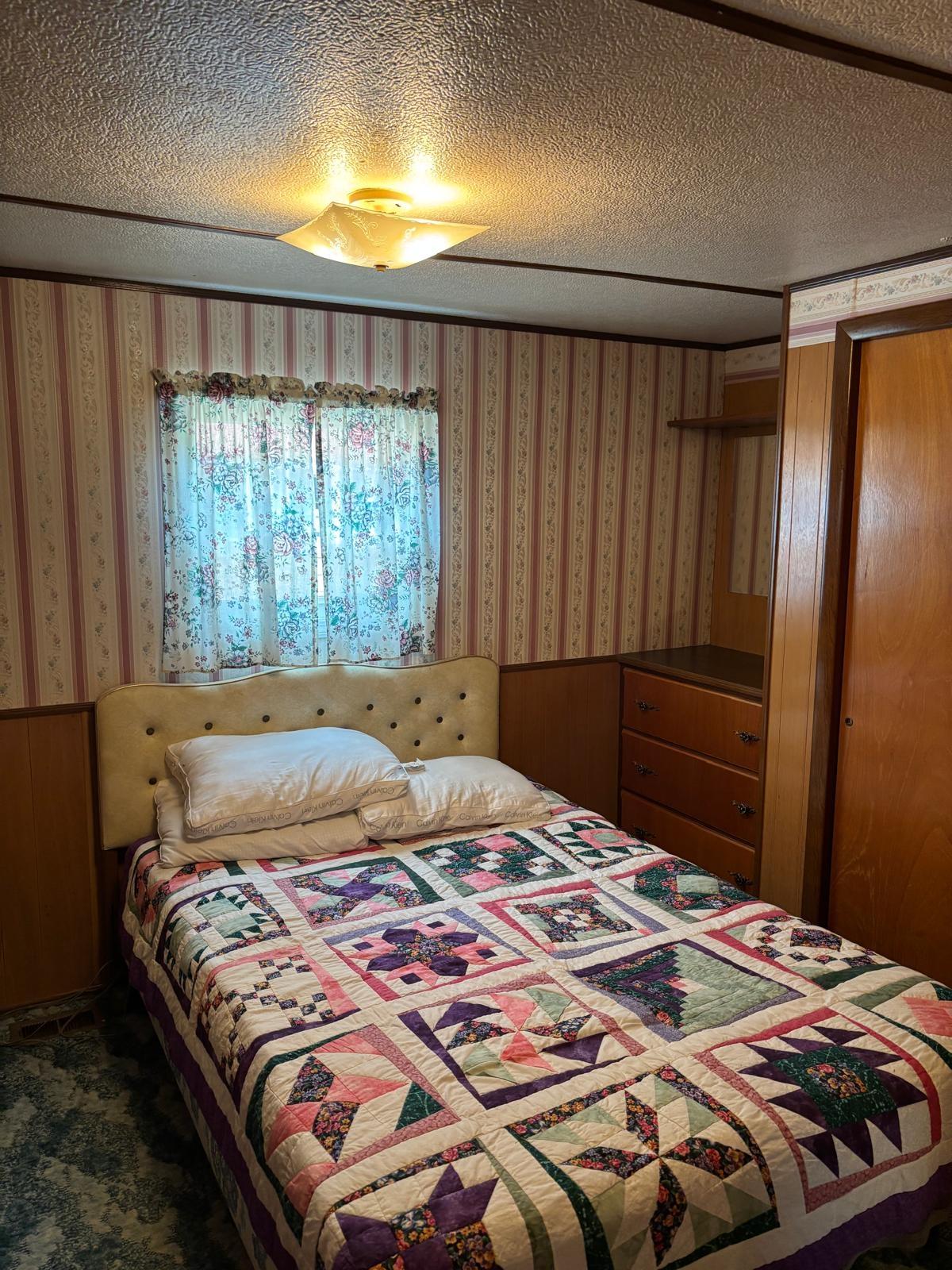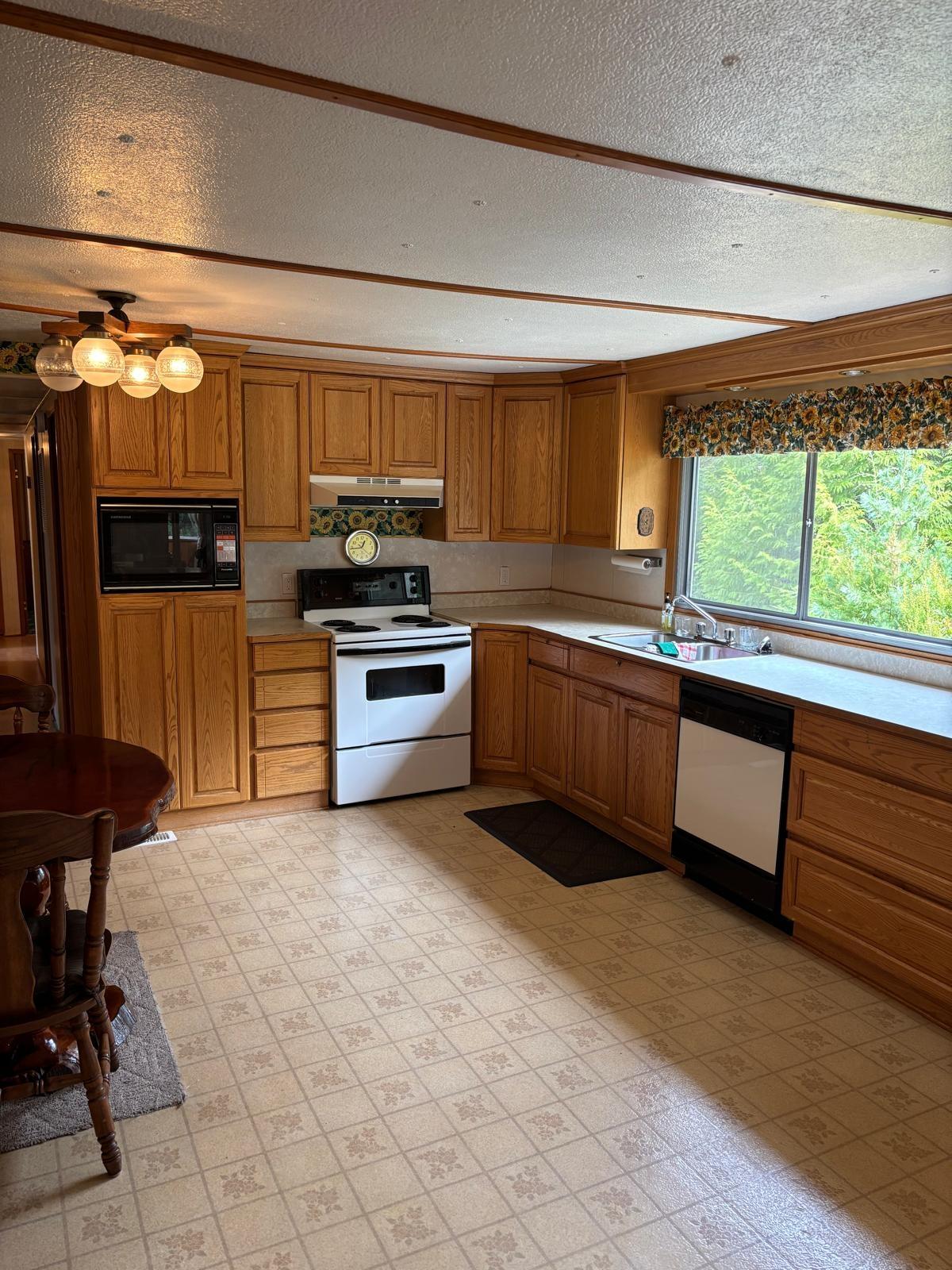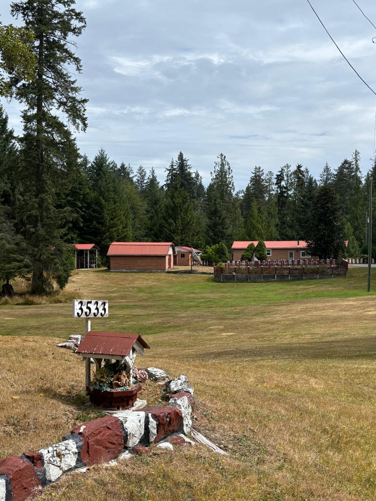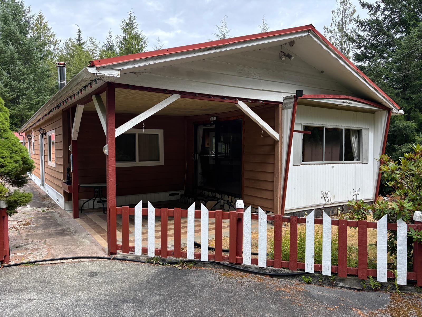 Your prime residence or 5 acre year round getaway, this home is move in ready. This 3 bedroom 1 bath original mobile with additional add ons and recent upgrades of electrical and heat pump gives you room to move and fabulous outdoor space. Multiple outbuildings, covered RV parking and a huge yard and fenced garden in the much sought after Oasis. Mid way between the ferry and spectacular Shelter Point Park, 10 minutes to either and walking distance to the Garden Centre, the location is prime.