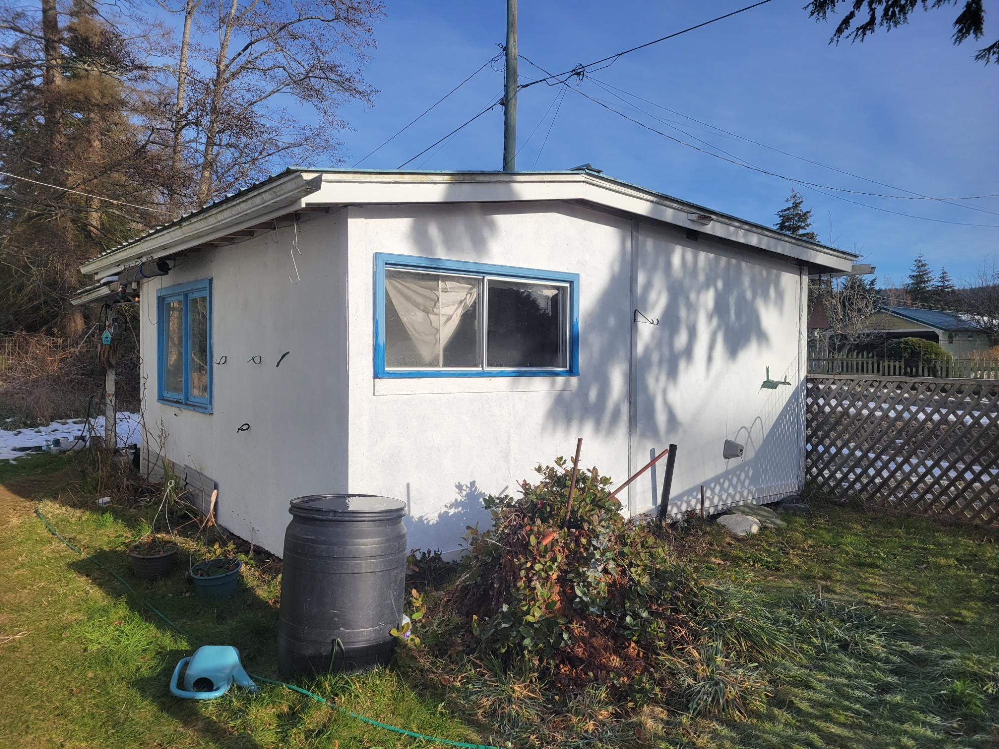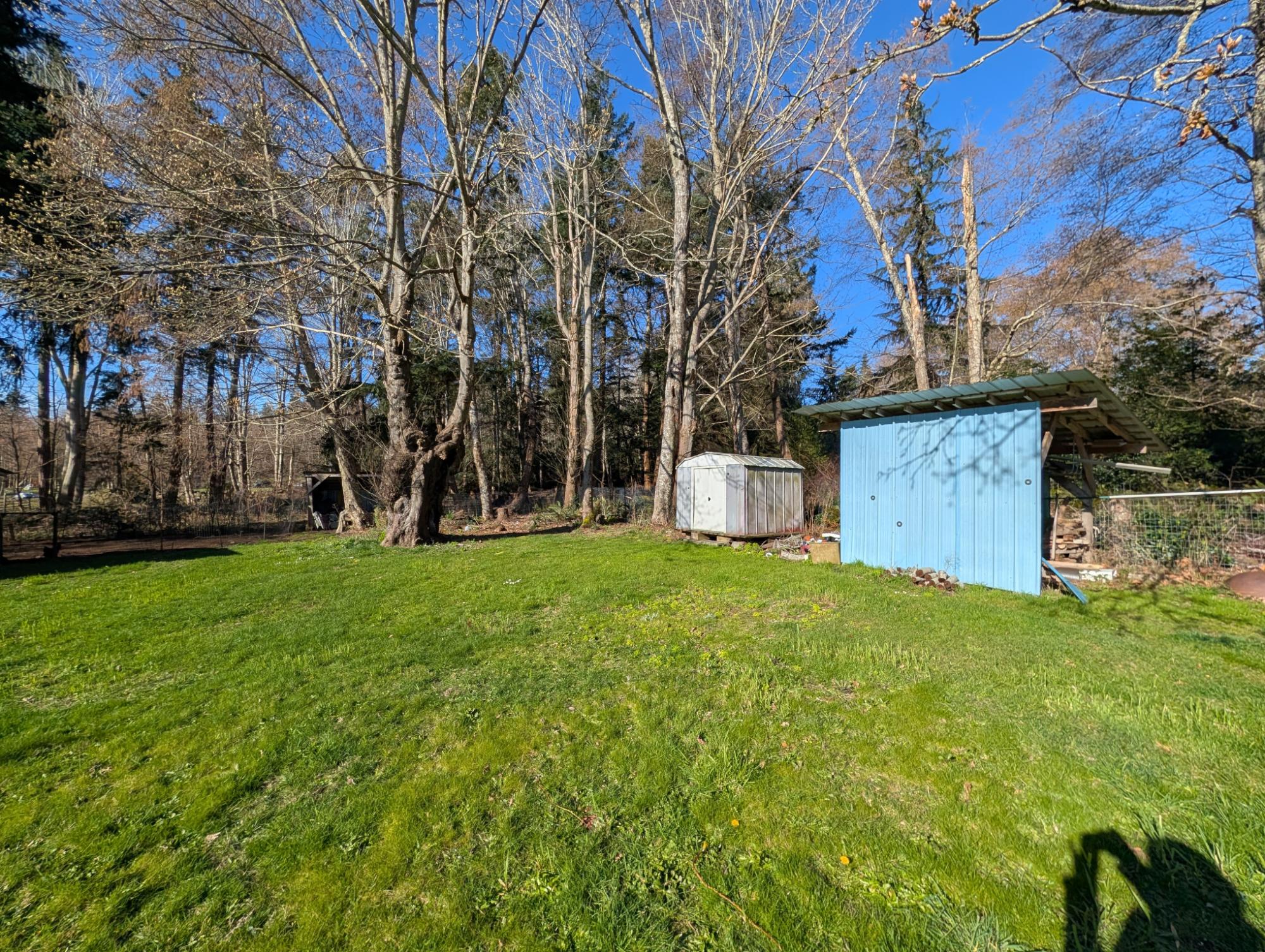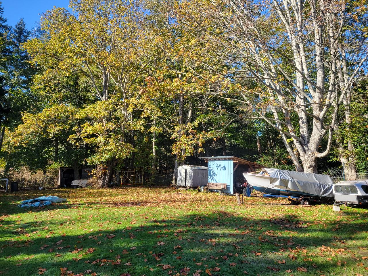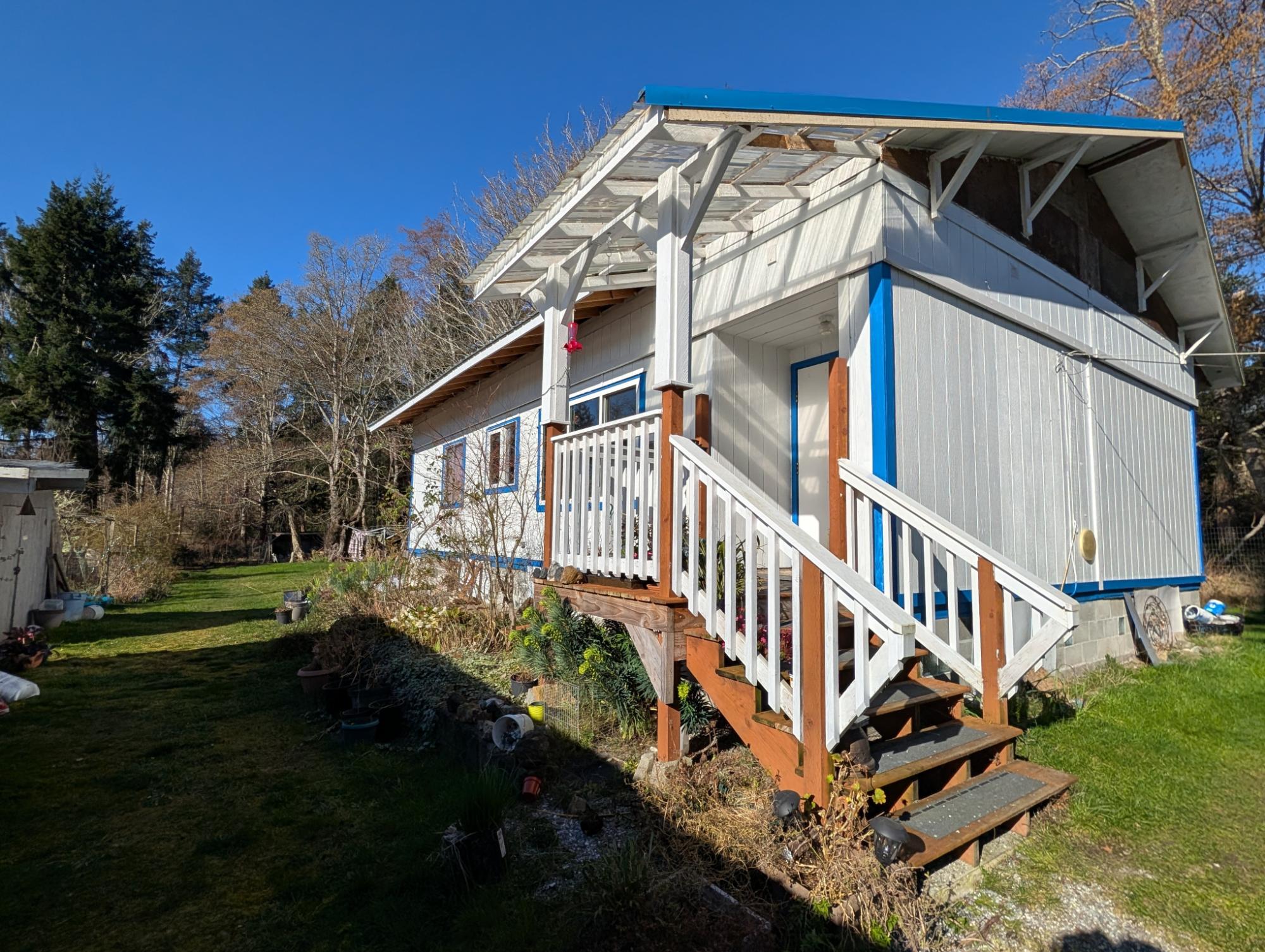 One Third Acre with Ocean Views down the road from Beach Access. Large Workshop, Living Cabin, House that's a clean slate for you to design to your dreams! Many options for your island getaway life! The wood stove keeps you warm in the shop for your hobbies, there is a c-can and extra shed for storage, a greenhouse and garden to grow your favourite fruits and vegetables for cooking and you're welcome to the rooster and laying chickens happy in their coop in the large yard with great mature trees! Steps from Gillies Bay General Store, Medical Clinic and minutes from Shelter Point Park Beach and boat launch. Charming and affordable place to start your next chapter!
