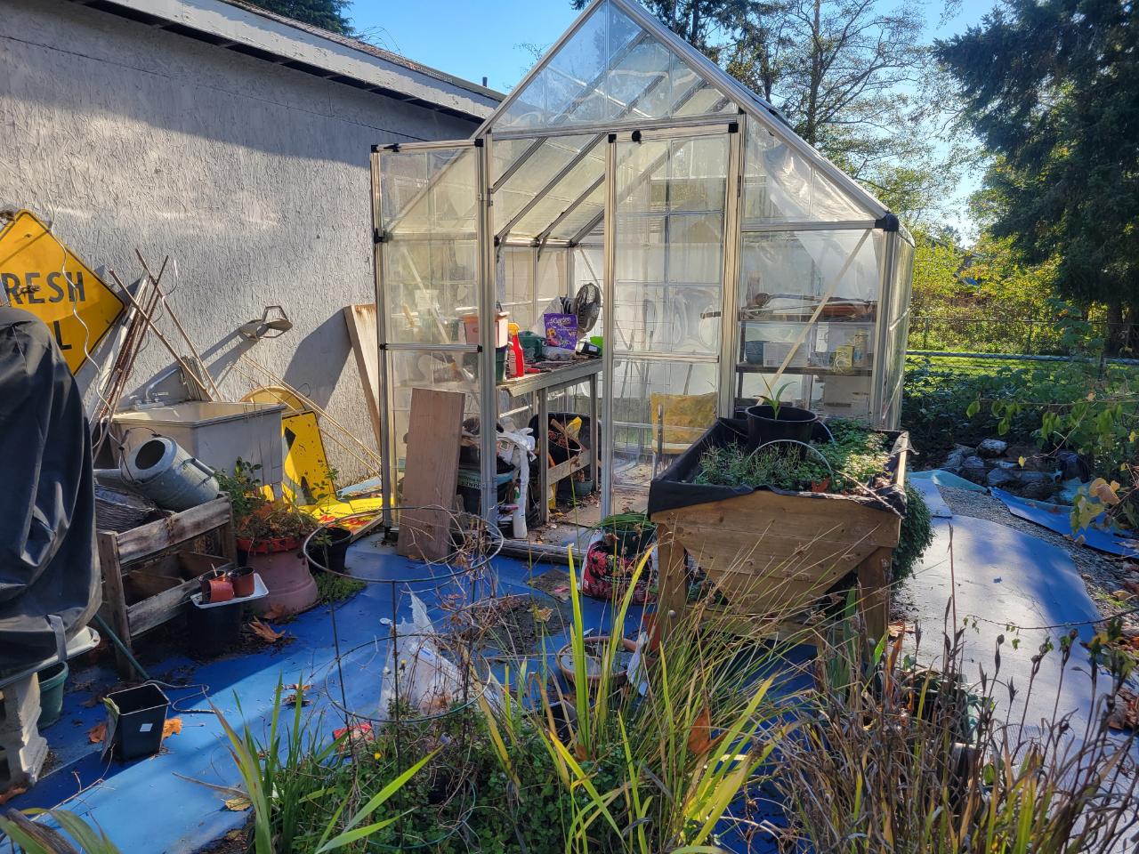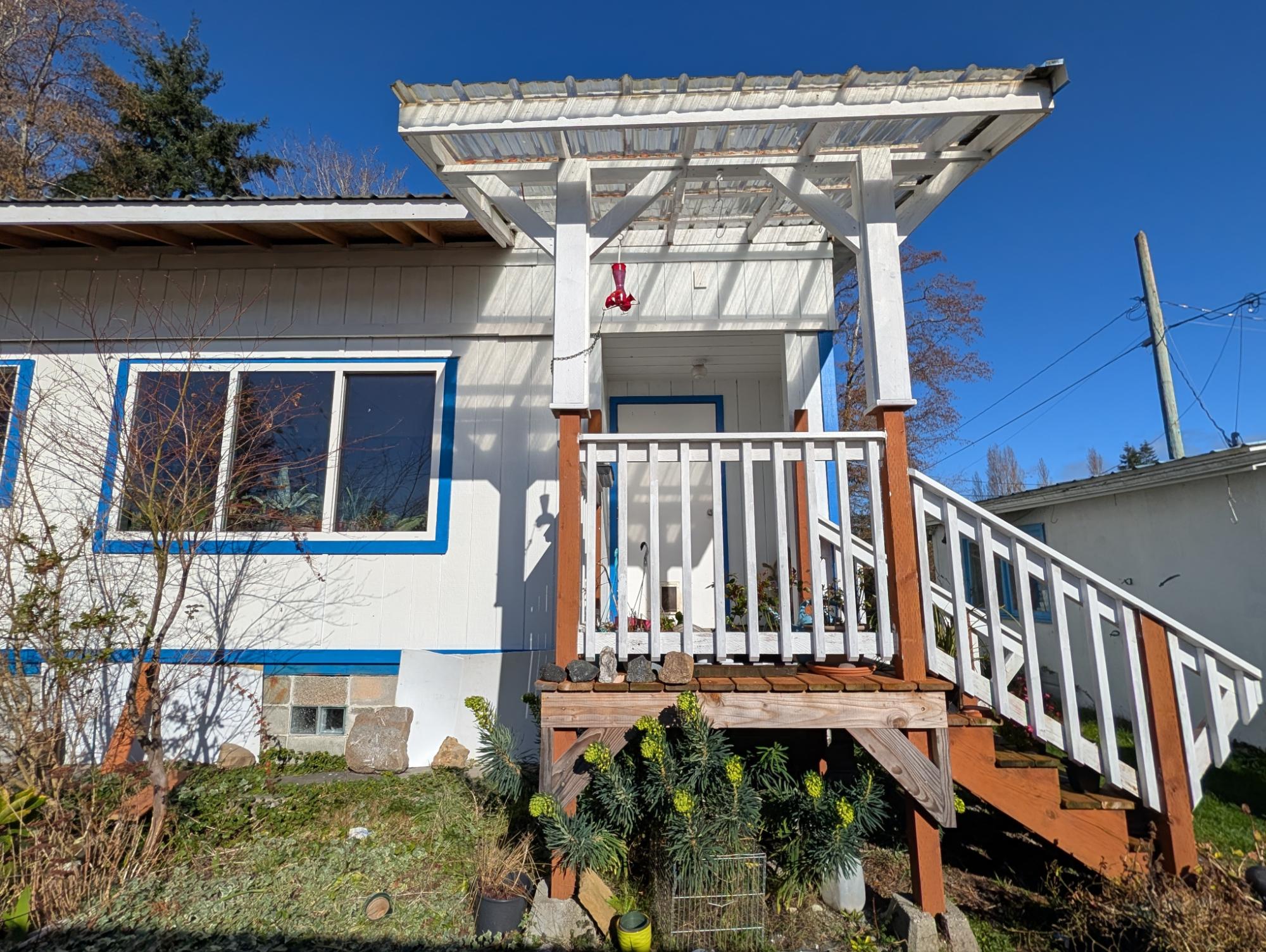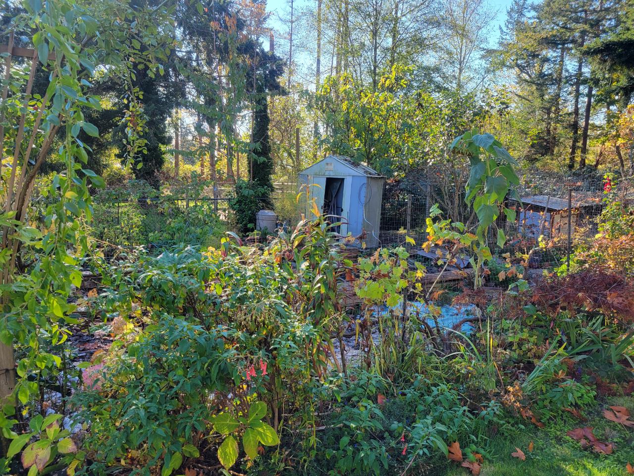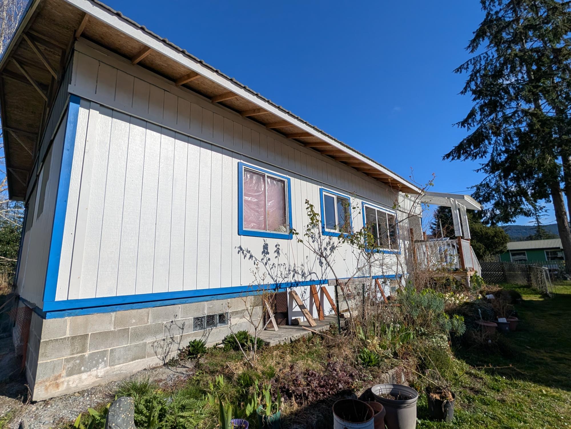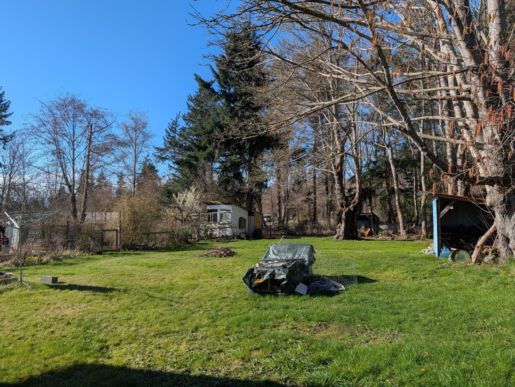 One Third Acre with Ocean Views down the road from Beach Access. Large Workshop, Living Cabin, House that's a clean slate for you to design to your dreams! Many options for your island getaway life! The wood stove keeps you warm in the shop for your hobbies, there is a c-can and extra shed for storage, a greenhouse and garden to grow your favourite fruits and vegetables for cooking and you're welcome to the rooster and laying chickens happy in their coop in the large yard with great mature trees! Steps from Gillies Bay General Store, Medical Clinic and minutes from Shelter Point Park Beach and boat launch. Charming and affordable place to start your next chapter!