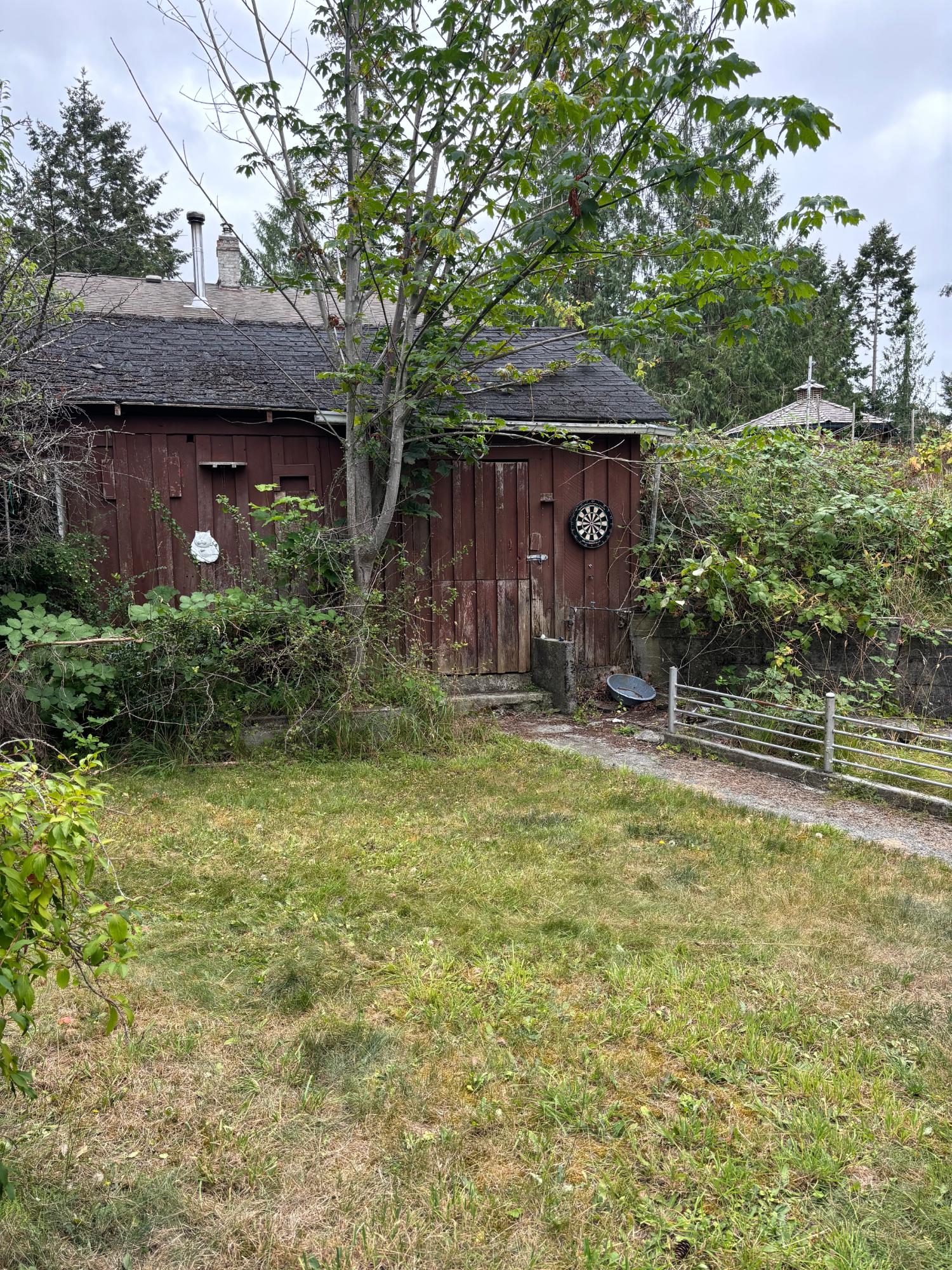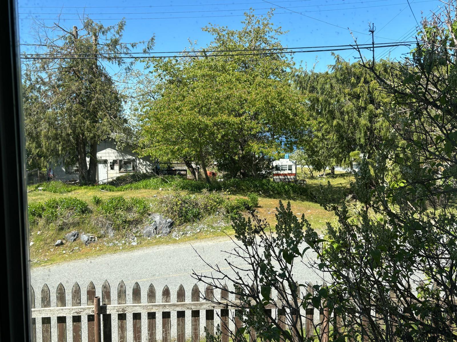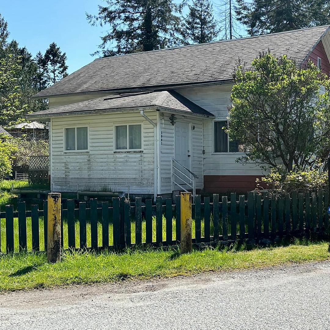 This home awaits your personal touches and updates. Every room is large and spacious and airy, offering two bedrooms, 10' ceilings, large kitchen, huge bathroom and an unfinished basement. A peek-a-boo ocean view toward Powell River. This is a big corner lot with an established but not maintained garden and a new heat-pump.