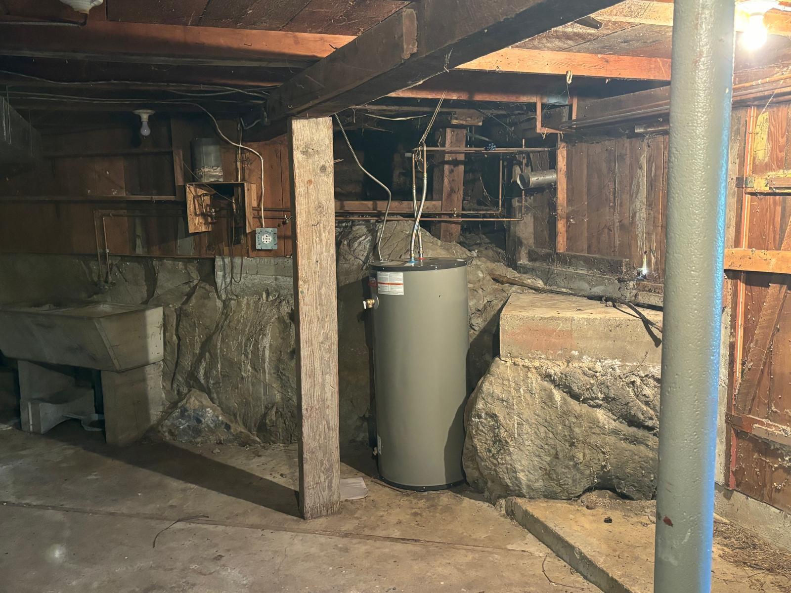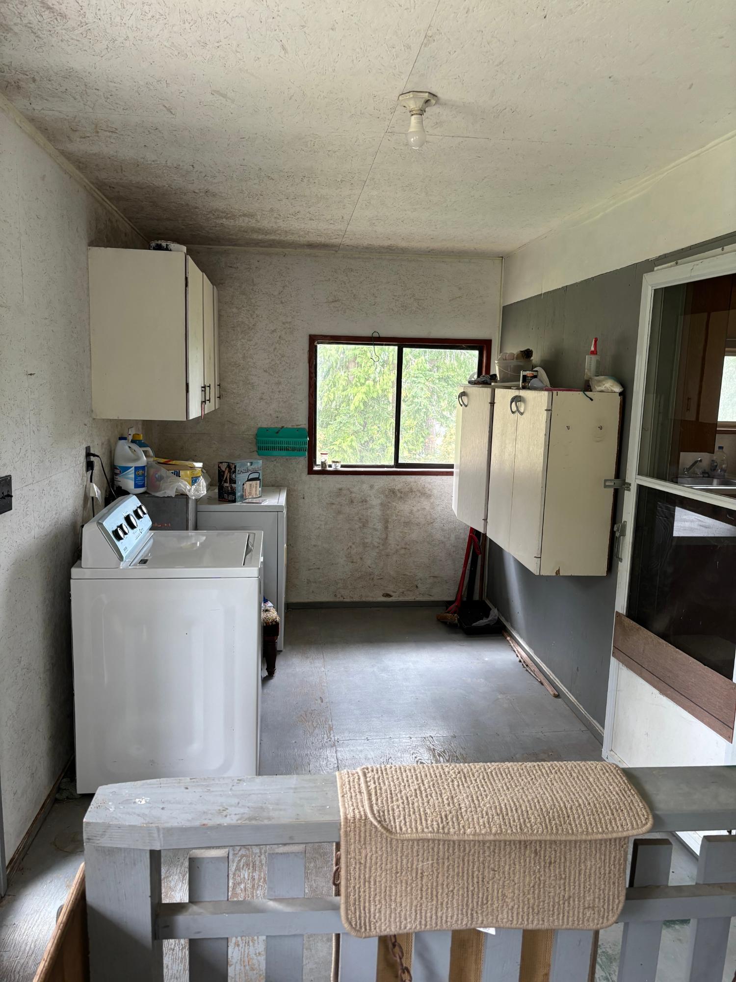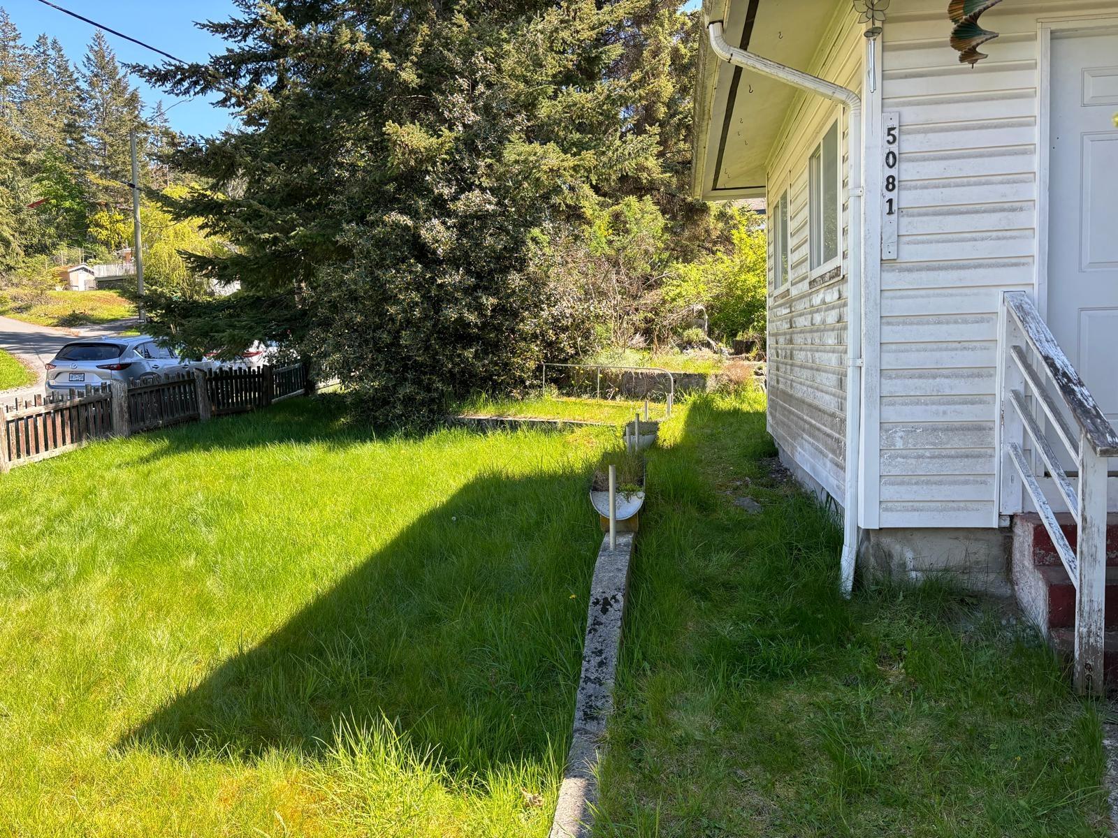 This home awaits your personal touches and updates. Every room is large and spacious and airy, offering two bedrooms, 10' ceilings, large kitchen, huge bathroom and an unfinished basement. A peek-a-boo ocean view toward Powell River. This is a big corner lot with an established but not maintained garden and a new heat-pump.