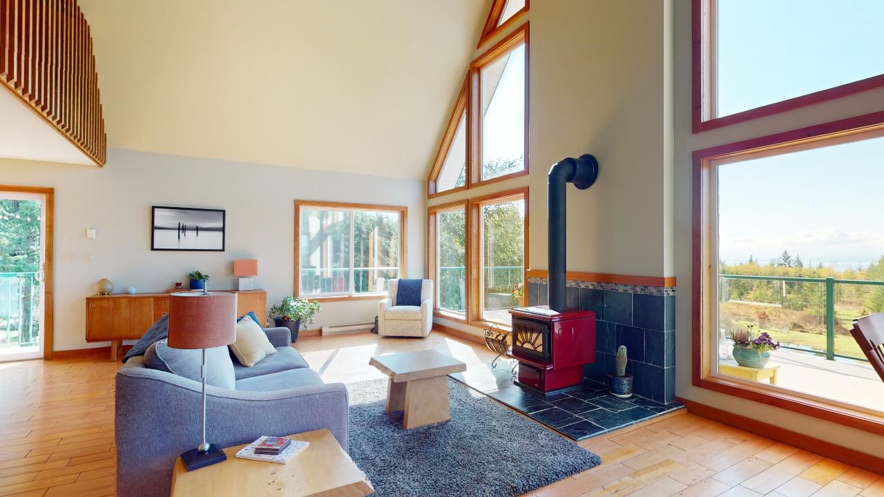 Stunning home with fantastic OCEAN views over Georgia Strait to Vancouver Island on Texada Island. Serenity and peace blanket this 22 acre gem that offers a 14 year old 3000+ square foot, 3 level home. Inside it offers a 640sf primary bedroom with a sitting area, walk in closet and a high vaulted ceiling. On the main enjoy two bedrooms, a well laid out kitchen and a huge living room with 18' ceilings and wood burning stove. The basement contains a bright large family room, second wood stove, walk out to covered patio and two partially finished storeroom/workshops. Once captivated by the inside, walk out to the 22 acre grounds with two outbuildings, one finished, the other 70% done. Neither are visible from the main home. There is a pond that retains water year round, and an extensive lavender harvest, beautifully fully fenced gardens with fruit trees and more. This estate must be seen to be fully appreciate it's uniqueness.