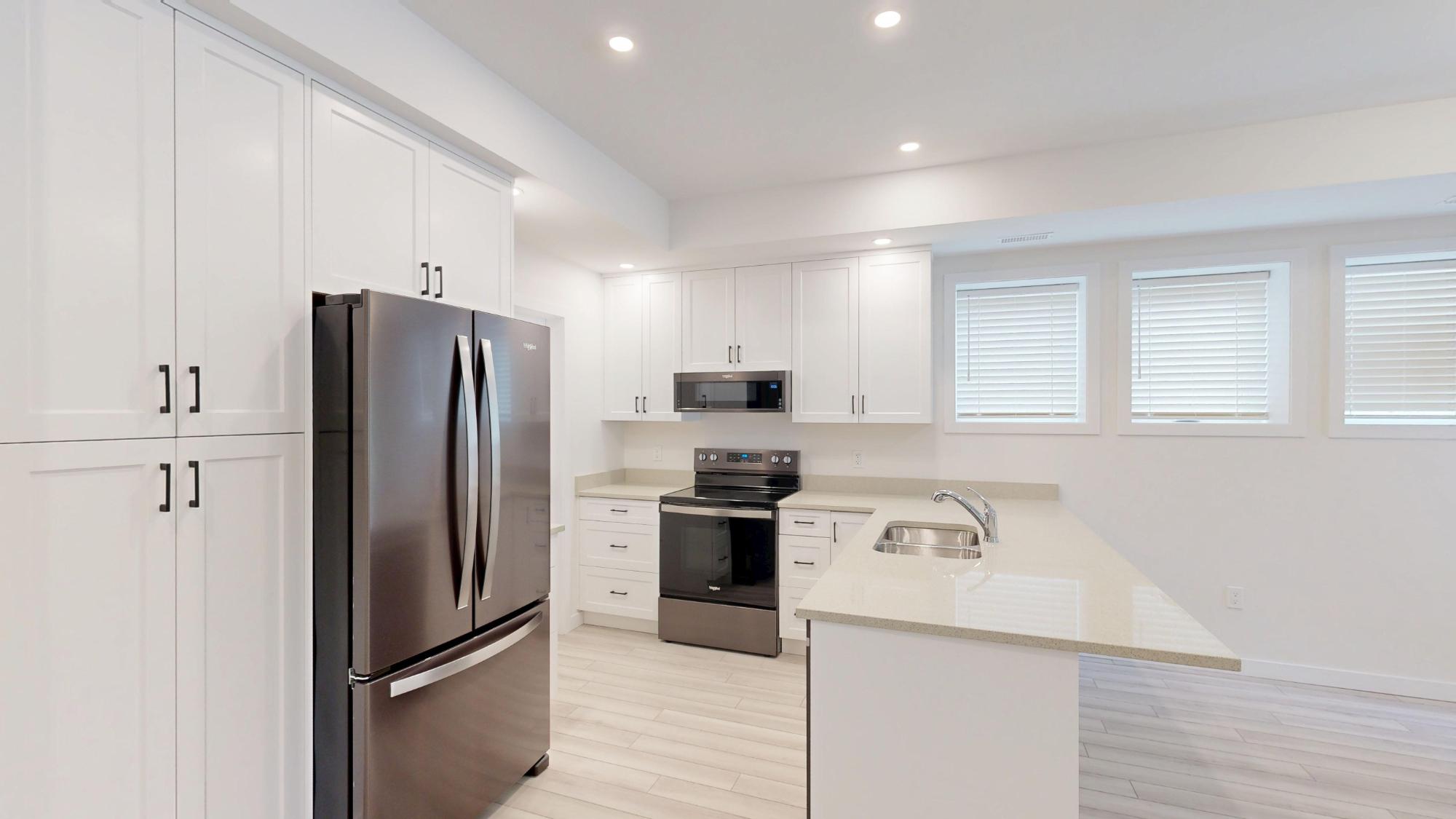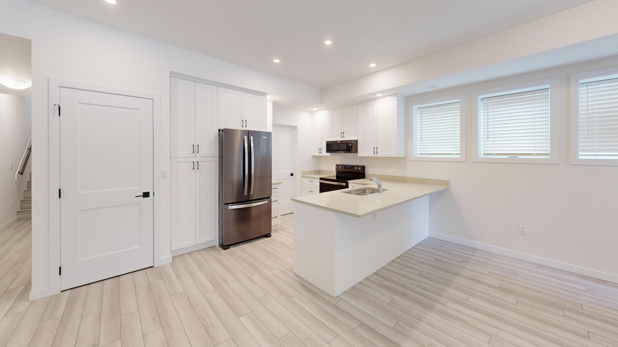 Welcome to Unit 10 at 6730 Cranberry Street: brand-new 2024 construction offering 3 bedrooms and 3 bathrooms designed for comfort. Upstairs features two bedrooms sharing a 3-piece bath with a stacked washer/dryer, plus a spacious living room with large windows and pleasant street views. The main floor boasts a private, oversized bedroom with a 4-piece ensuite. The beautiful kitchen includes soft-close cupboards and quartz countertops. Modern comforts abound with an on-demand hot water tank, high-efficiency furnace with a heat pump, lawn sprinkler system, and ample storage. Entry is easy from the street or your single, covered carport. With flowing laminate floors throughout, this home is move-in ready, ensuring ownership without expensive updates. Call today to book your private viewing!