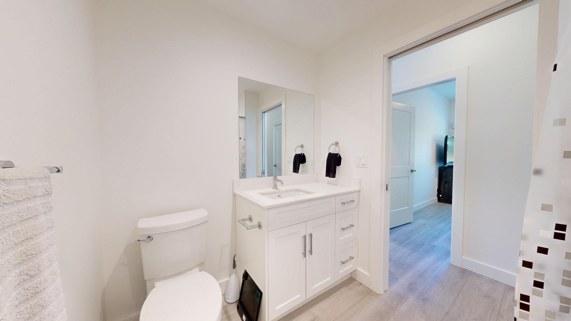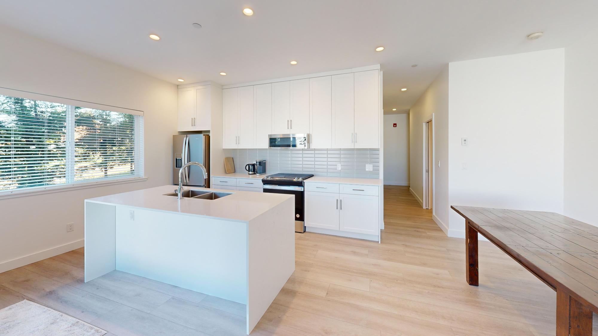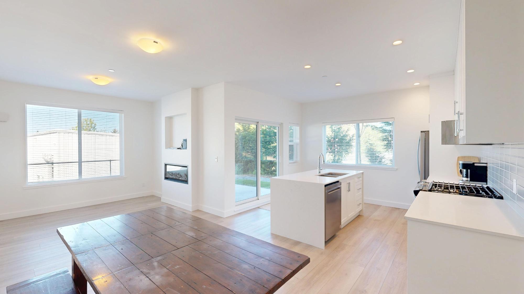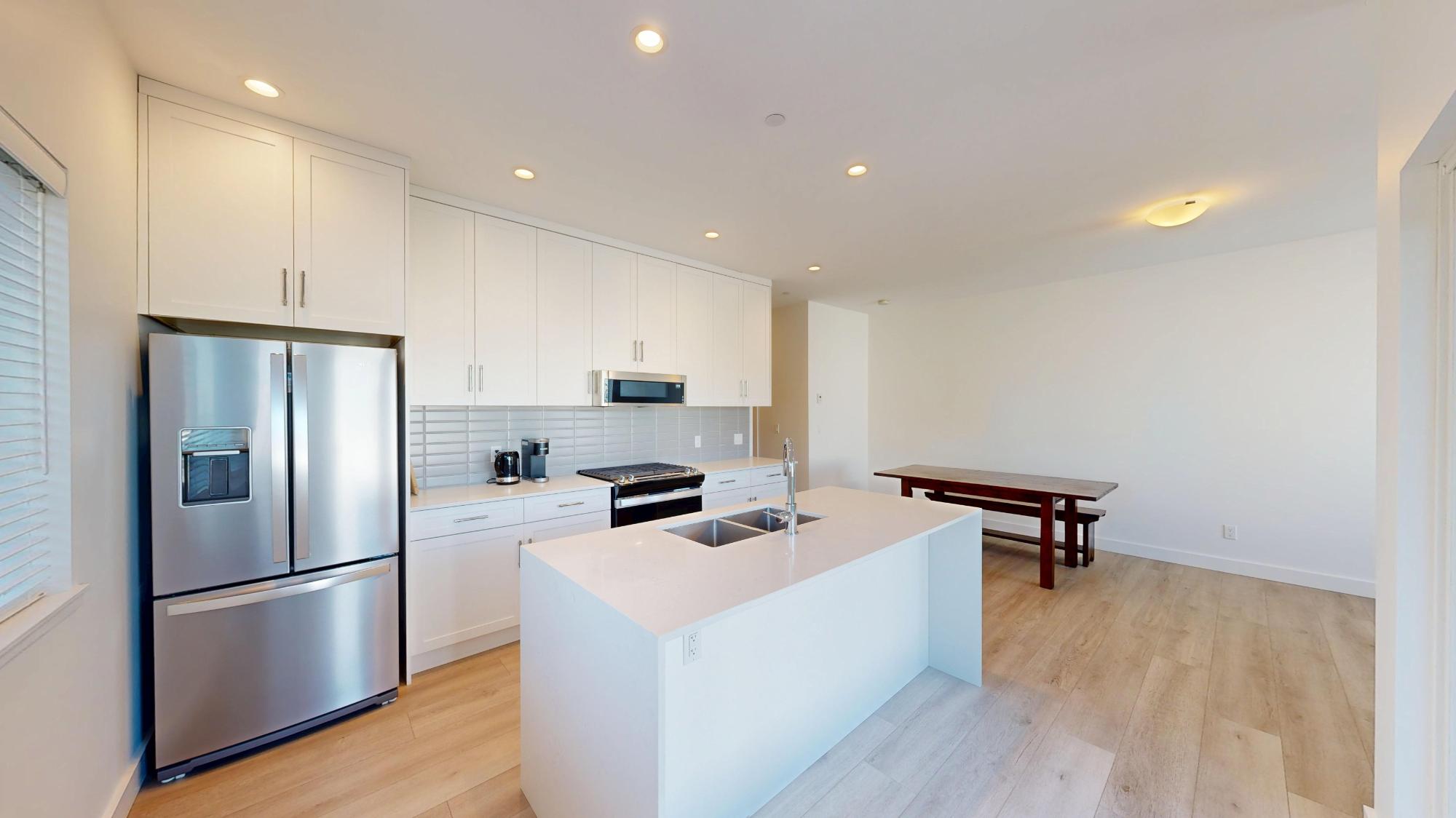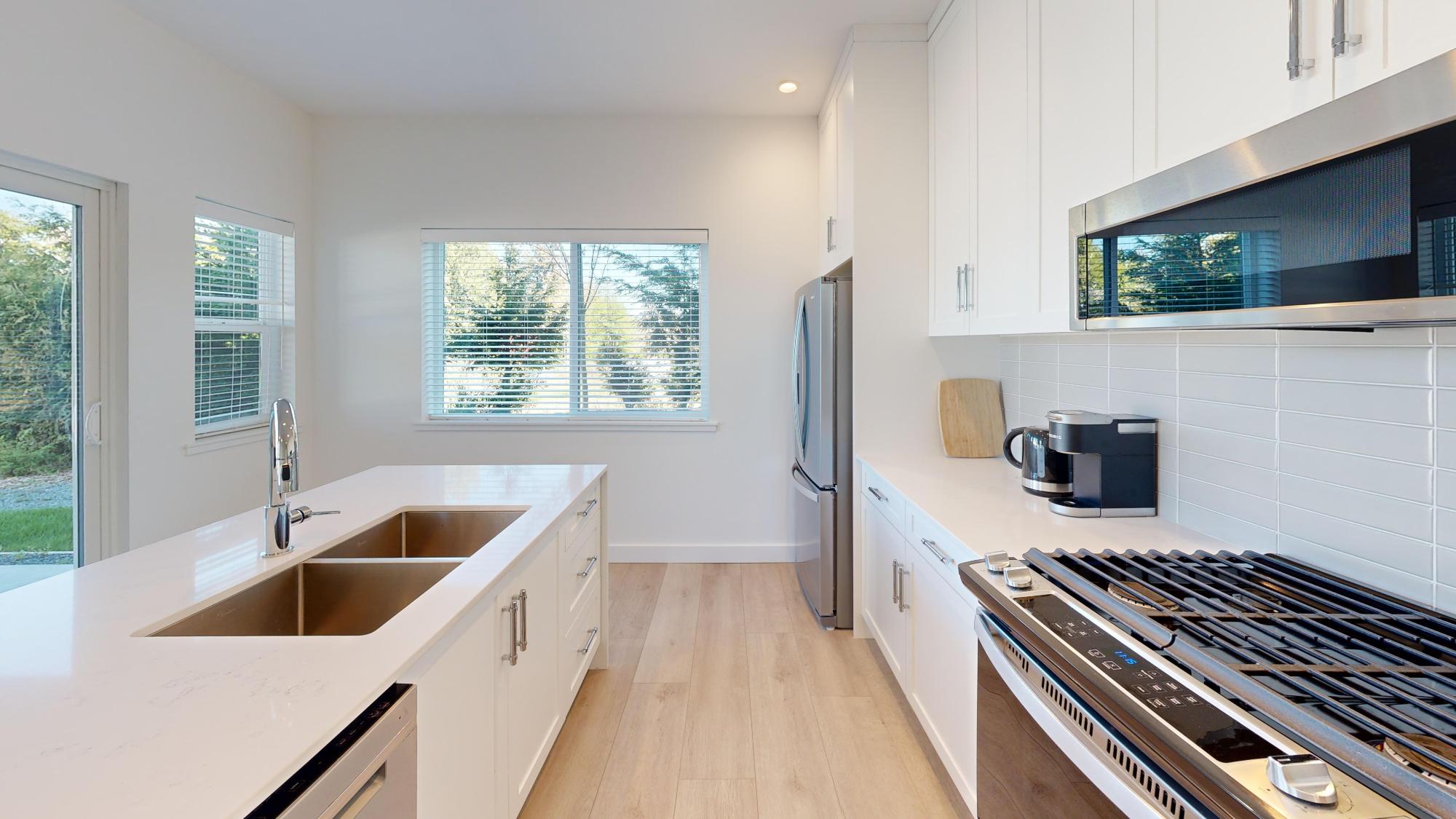 Experience coastal elegance in this level entry condo featuring ocean views and endless sunsets. The open-concept layout showcases a gourmet kitchen with quartz countertops, soft-close ceiling-height cabinetry, and premium stainless steel appliances, including a gas stove and a double-sink island. Relax in the living room by the electric fireplace or step out onto the covered patio, complete with a gas BBQ hookup. The large primary bedroom offers garden privacy and a 4pc ensuite, while the cozy spare bedroom is steps from a 3pc bath with a tiled walk-in shower. Modern comforts include in-floor radiant heat, on-demand gas hot water, and a 125-amp service. With laminate flooring throughout, a large storage closet, a separate linen closet, 9’ ceilings, and tucked-away hallway laundry, this home perfectly balances luxury and functionality. All of this comes with an affordable strata fee of $247.75/mth. Call today for your private viewing.