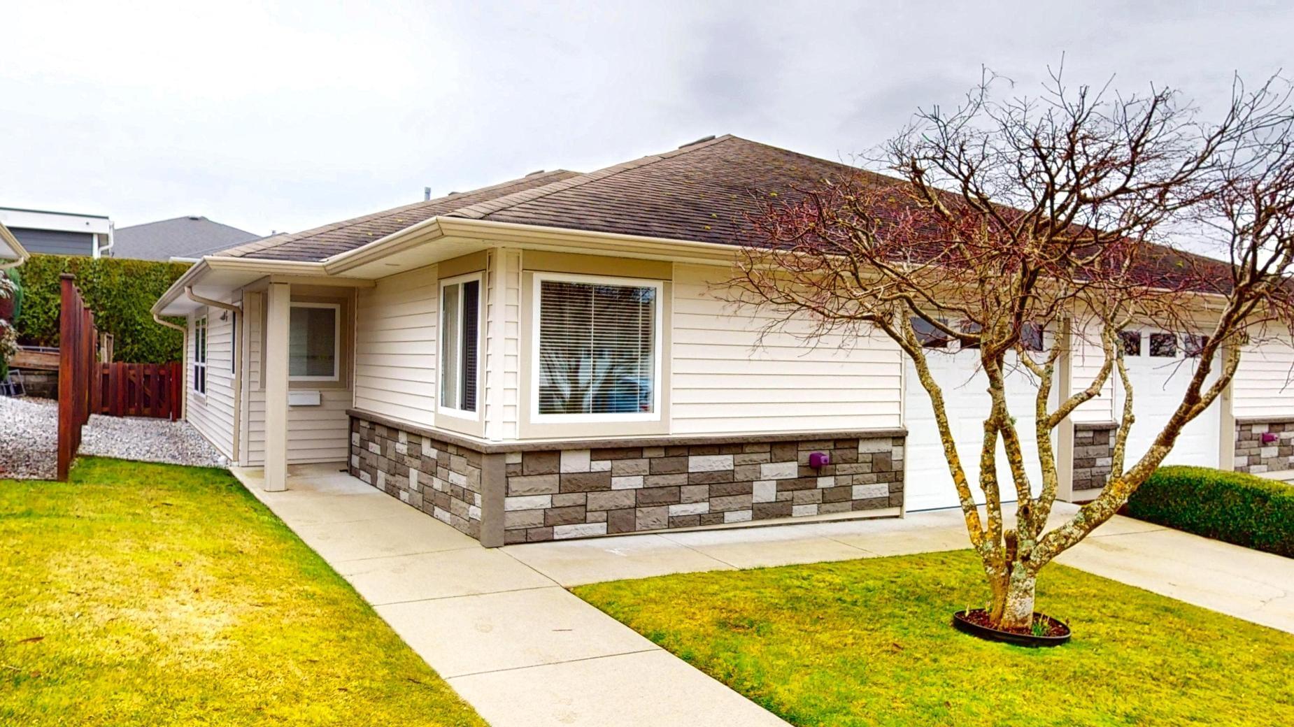 Beautifully maintained half duplex rancher in Emerald Lane Estates, offering an ideal downsize opportunity. This bright, open concept 2 bedroom, 2 bathroom home is filled with natural light, featuring fresh paint, a spacious living and dining area with large sliding doors to a private covered patio and garden space. The updated kitchen blends style and function with quartz countertops, and ample cabinetry. The generous primary bedroom includes a walk-in closet and ensuite with a large shower, while the second bedroom is perfect for guests or hobbies. A dedicated laundry room with extra storage, single-car garage, and additional parking add everyday convenience, all within a quiet, friendly, professionally managed adult-oriented community with NO age restrictions. Short notice showings welcome. Strata fee $285/mo