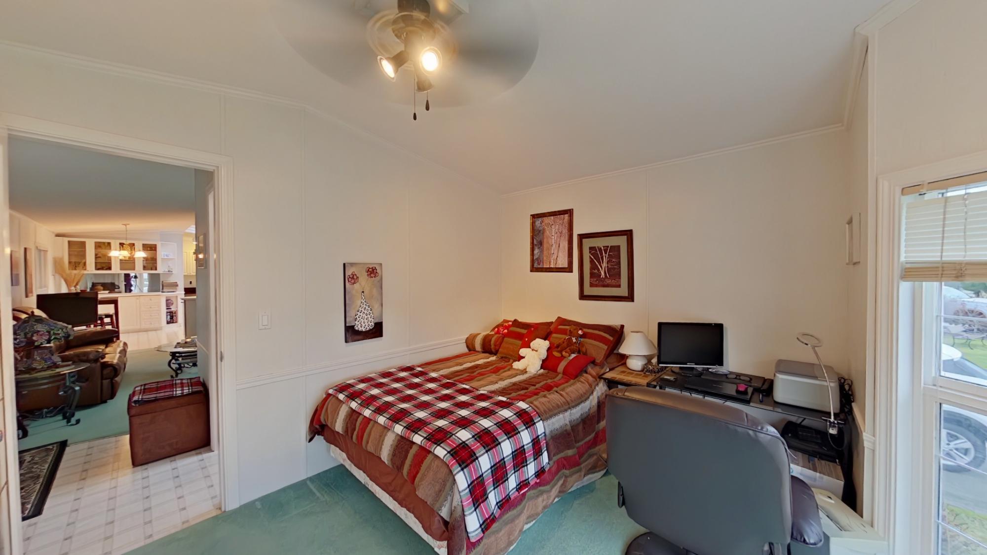 Beautiful modular home, meticulously maintained and kept like new. The spacious primary bedroom offers a walk-in closet and a private 3-piece ensuite. The bright kitchen features an eating nook and opens to a large living room with attractive built-in cabinetry. A full 4-piece main bath and a second bedroom located at the opposite end of the home provide comfort and privacy. Outside, enjoy an inviting covered 12’ x 24’ deck—perfect for relaxing or entertaining—along with a 12’ x 16’ wired detached workshop for hobbies or extra storage. Call to view this home today.