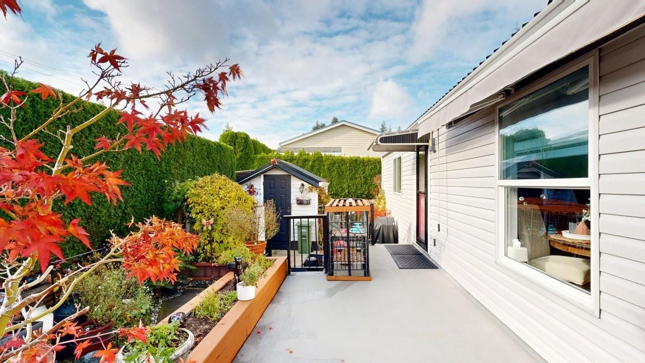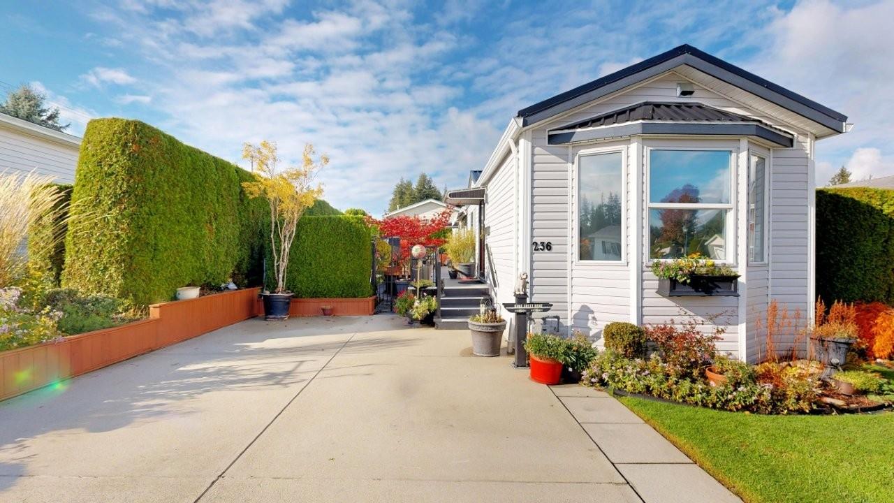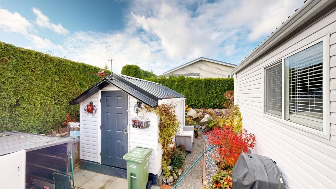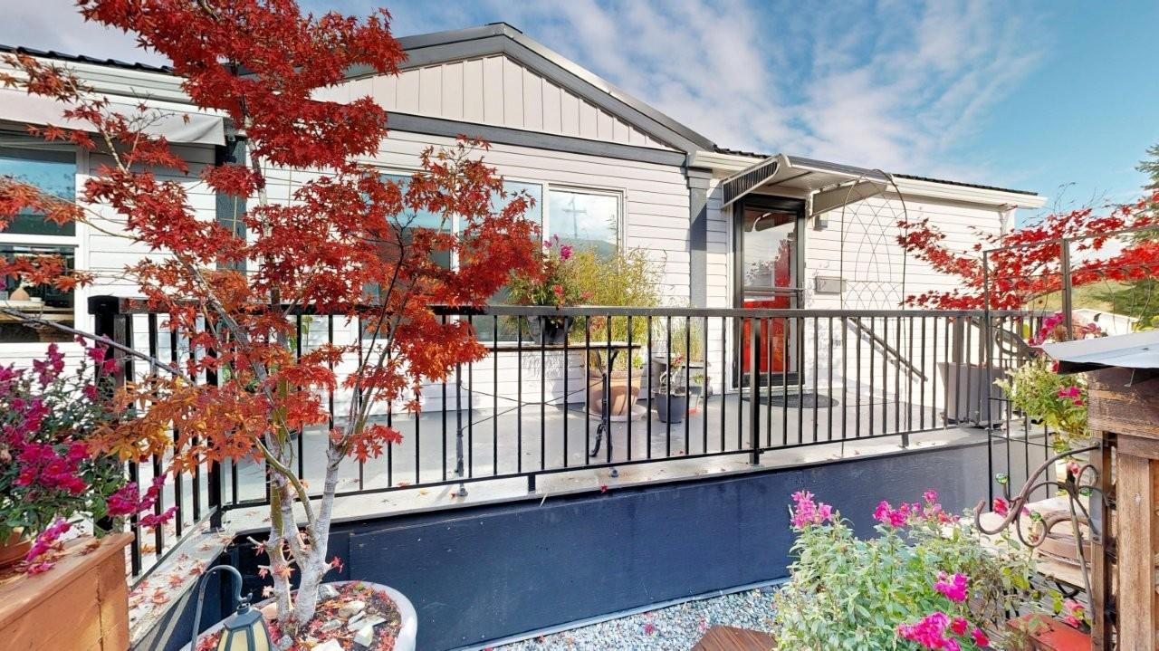 Welcome to this lovely home in Blue Mountain Estates! Beautiful landscaping and privacy hedges surround this bright 2 bedroom, 2 bath manufactured home. Excellent layout with bedrooms at opposite ends for maximum privacy, with living, dining and kitchen in between. The well-designed kitchen has ample storage and counters, and the dining area is set alongside a south-facing window. Vaulted ceiling and a large, sunny window give a spacious feel to the living room. The primary bedroom at the back of the home has a walk-in closet and 4pc ensuite bath. A laundry room is off the kitchen, with a doorway out to the private deck. There’s a handy garden shed for extra storage, and plenty of room to create your ideal outdoor living space. Blue Mountain Estates offers access to a clubhouse and guest parking, and is close to popular Julie’s Airport Café, the Farmers Market, and public transit.