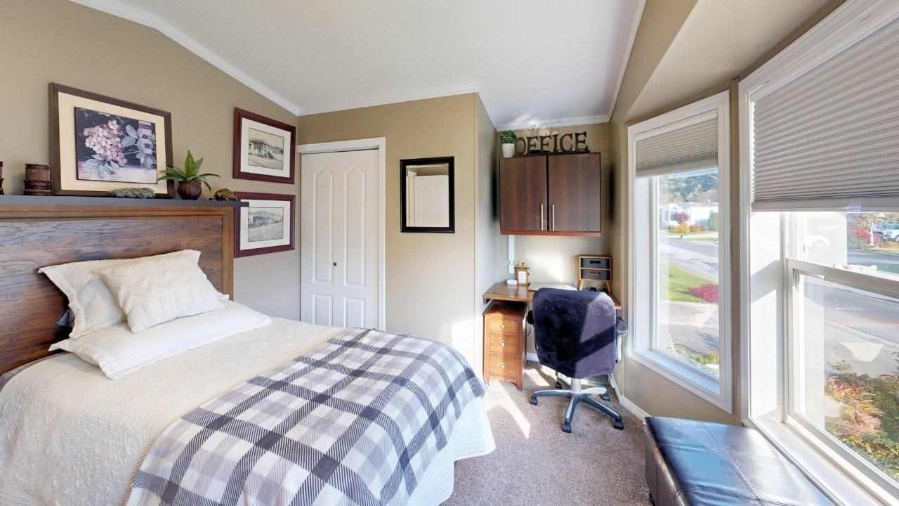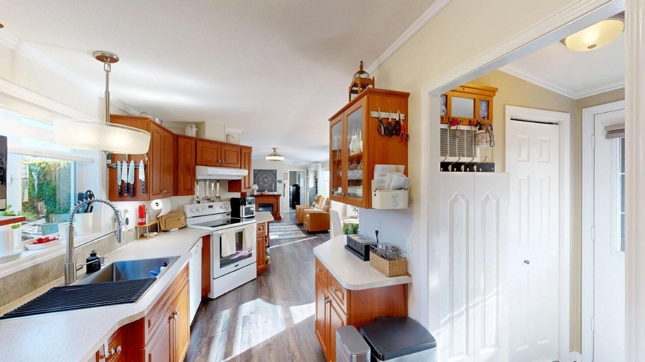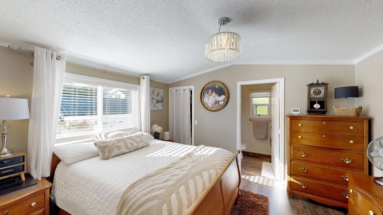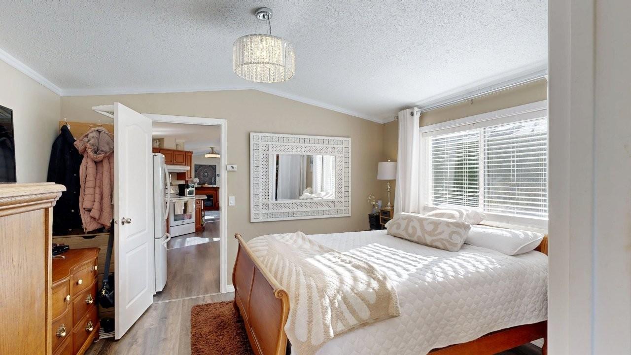 Welcome to this lovely home in Blue Mountain Estates! Beautiful landscaping and privacy hedges surround this bright 2 bedroom, 2 bath manufactured home. Excellent layout with bedrooms at opposite ends for maximum privacy, with living, dining and kitchen in between. The well-designed kitchen has ample storage and counters, and the dining area is set alongside a south-facing window. Vaulted ceiling and a large, sunny window give a spacious feel to the living room. The primary bedroom at the back of the home has a walk-in closet and 4pc ensuite bath. A laundry room is off the kitchen, with a doorway out to the private deck. There’s a handy garden shed for extra storage, and plenty of room to create your ideal outdoor living space. Blue Mountain Estates offers access to a clubhouse and guest parking, and is close to popular Julie’s Airport Café, the Farmers Market, and public transit.