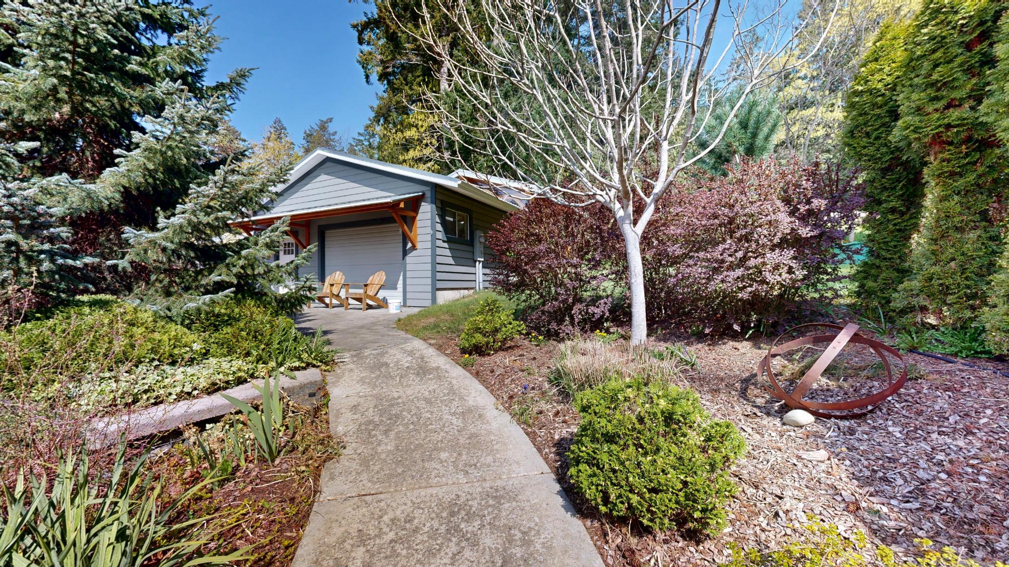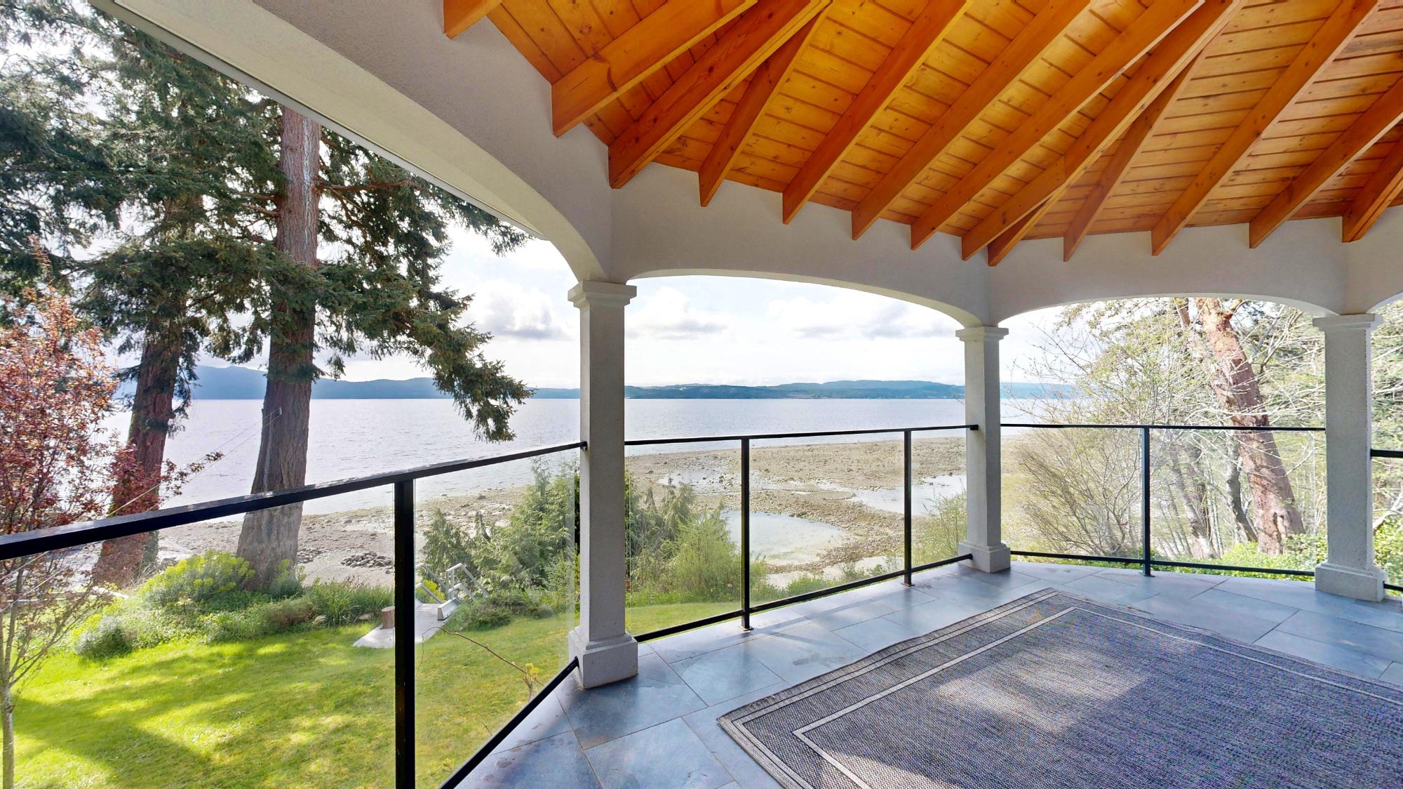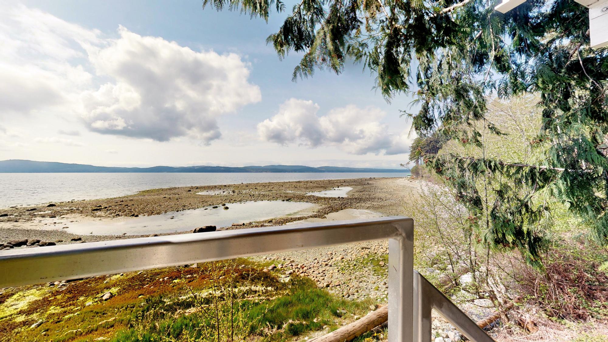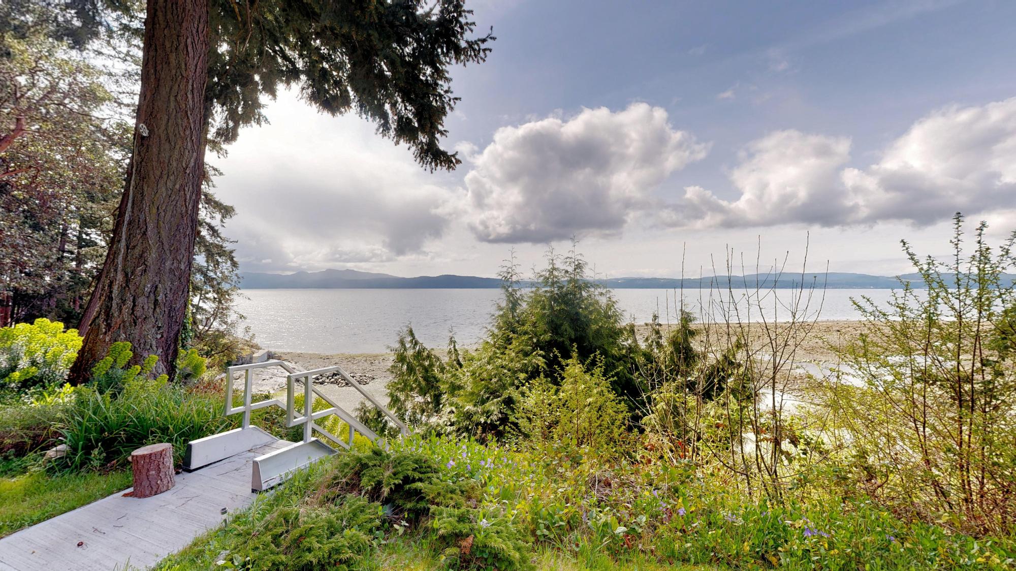 WATERFRONT HOME WITH SUITE & SHOP ON 1.13 ACRES – You’ll find this beautiful home at the end of a no-thru road just minutes south of town. Two bedrooms are on the main, with a walk-out 1 bedroom suite down. The open layout offers beautiful views from the kitchen, living and dining areas, with French doors opening to a gazebo-style deck. Floor-to-ceiling windows and a cosy gas fireplace create a relaxing living area. The primary bedroom has a luxurious ensuite bath, walk-in closet, and balcony looking out to the sea. Walk-out basement has an ocean view office, laundry and flex space, plus a 1 bedroom suite with fireplace, kitchen, and ensuite bath. Plenty of parking with a 3-bay carport, large driveway, and a 20x23 powered shop. Quiet property is mostly treed, with lovely landscaping around the home and shop. A tiered staircase leads to the beach, with a shady deck part way down. This amazing property is something to see! Book your appointment view today.