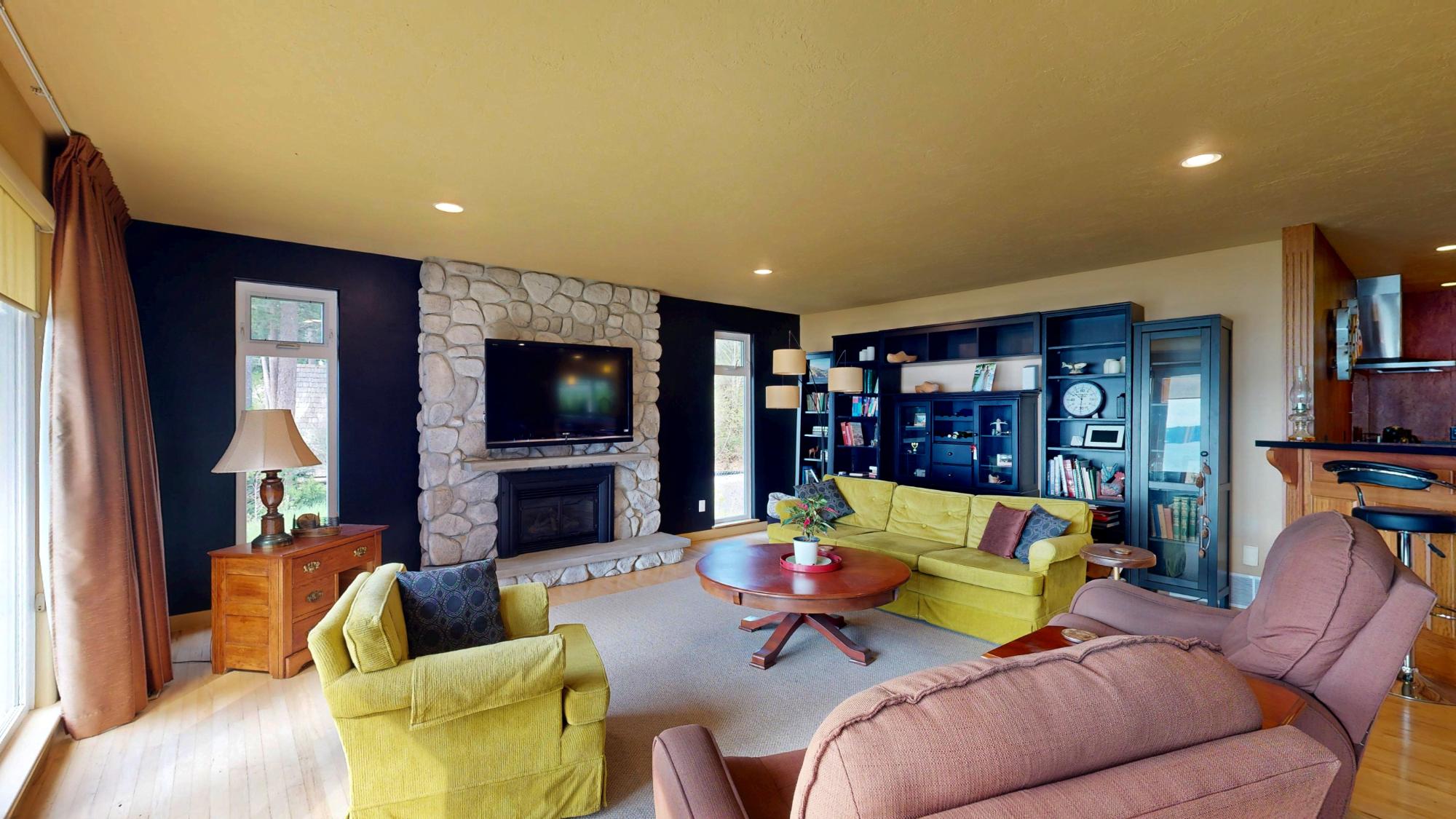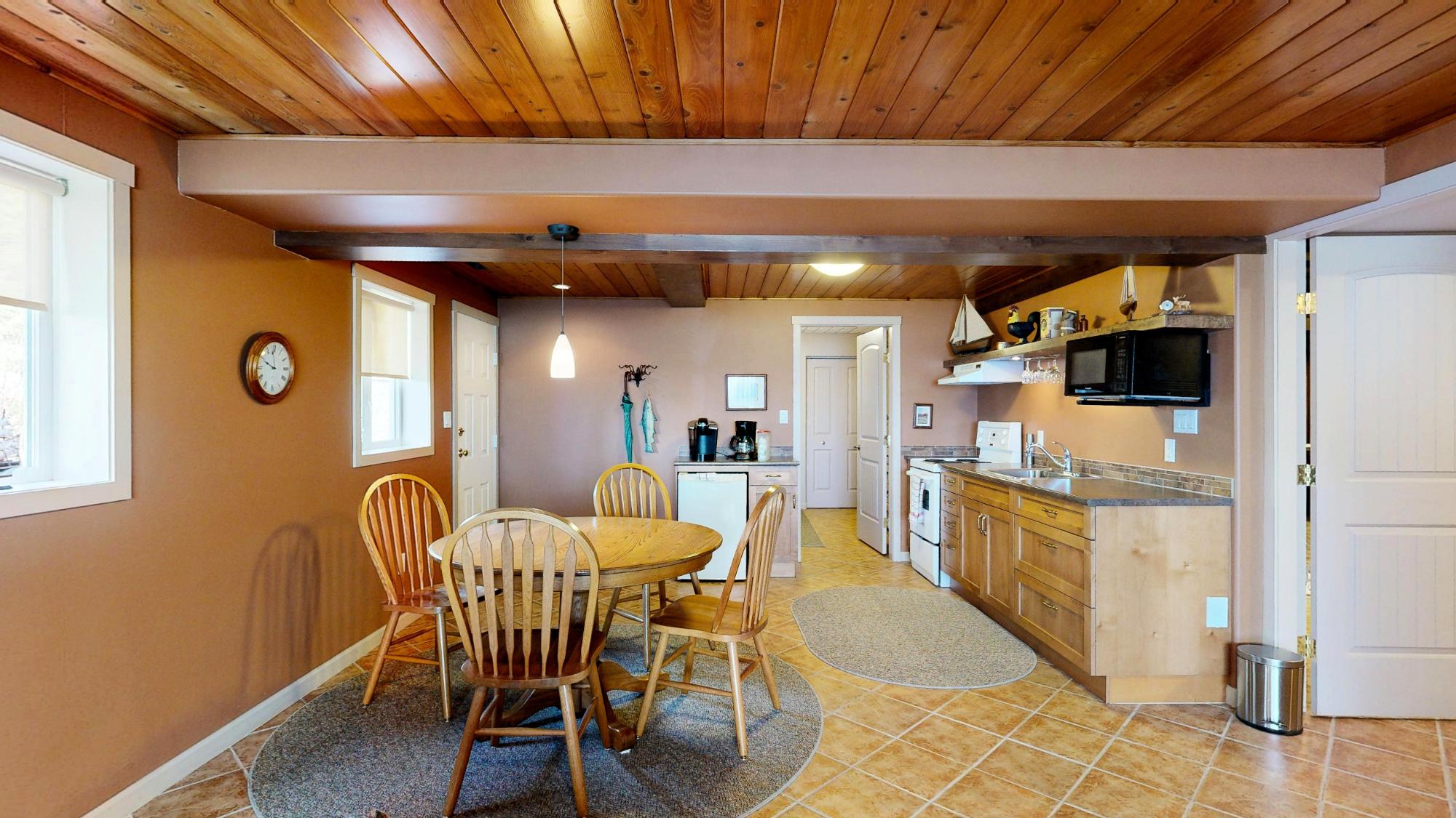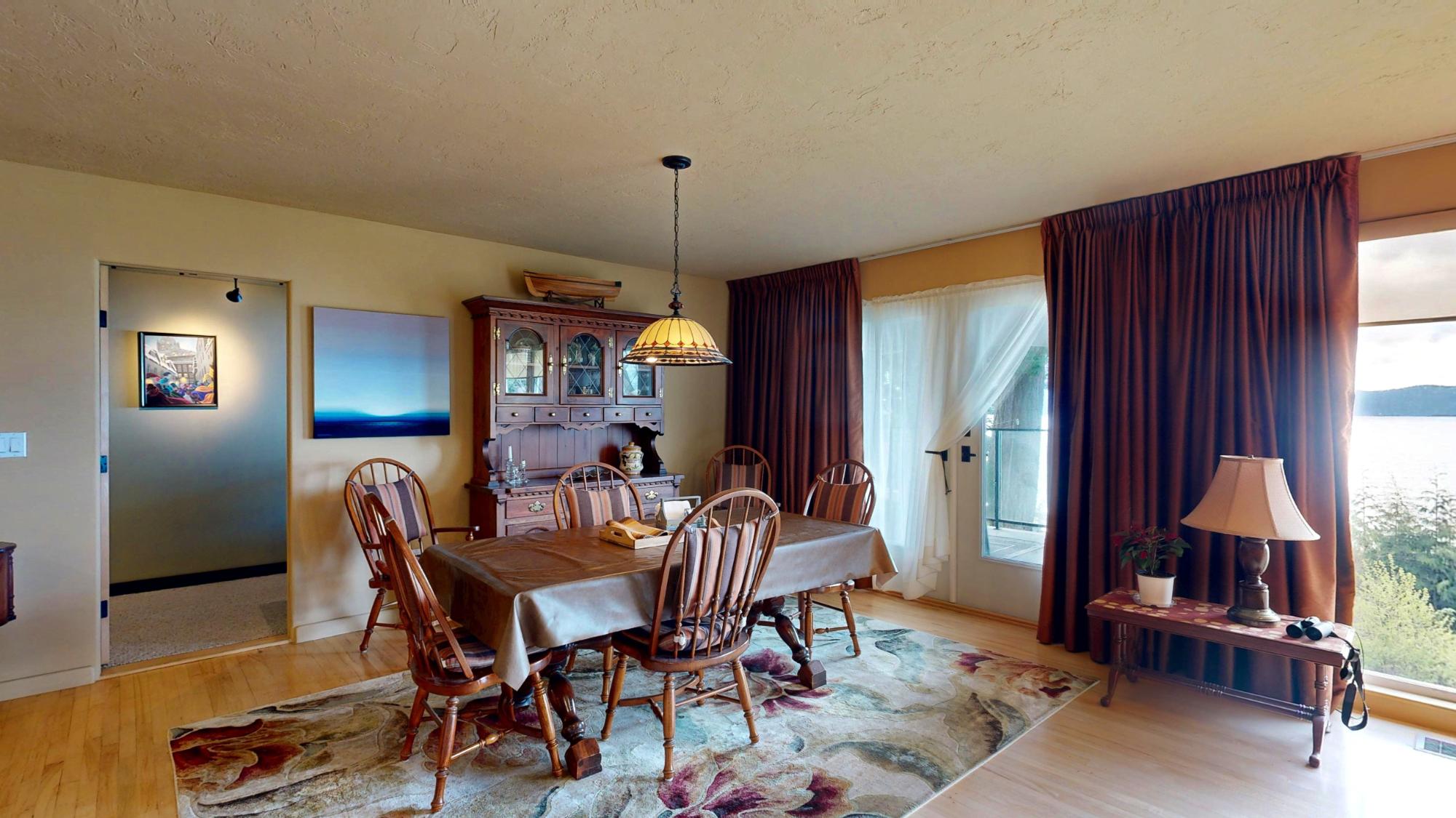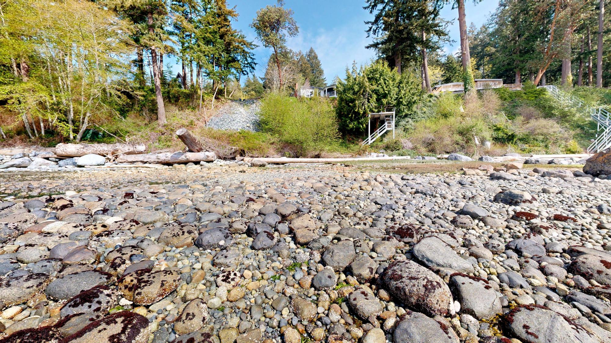 WATERFRONT HOME WITH SUITE & SHOP ON 1.13 ACRES – You’ll find this beautiful home at the end of a no-thru road just minutes south of town. Two bedrooms are on the main, with a walk-out 1 bedroom suite down. The open layout offers beautiful views from the kitchen, living and dining areas, with French doors opening to a gazebo-style deck. Floor-to-ceiling windows and a cosy gas fireplace create a relaxing living area. The primary bedroom has a luxurious ensuite bath, walk-in closet, and balcony looking out to the sea. Walk-out basement has an ocean view office, laundry and flex space, plus a 1 bedroom suite with fireplace, kitchen, and ensuite bath. Plenty of parking with a 3-bay carport, large driveway, and a 20x23 powered shop. Quiet property is mostly treed, with lovely landscaping around the home and shop. A tiered staircase leads to the beach, with a shady deck part way down. This amazing property is something to see! Book your appointment view today.
