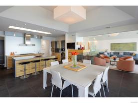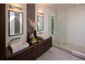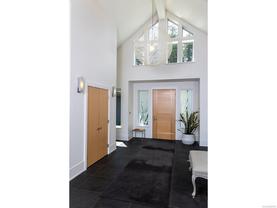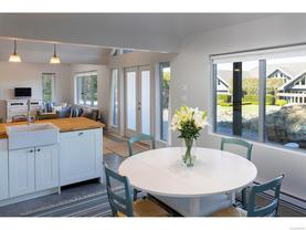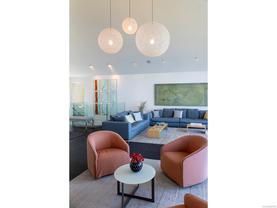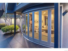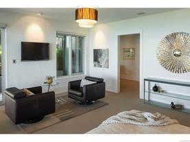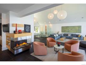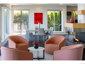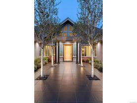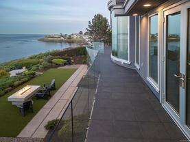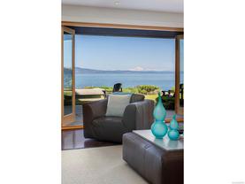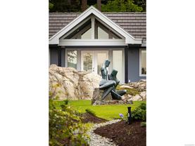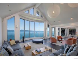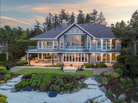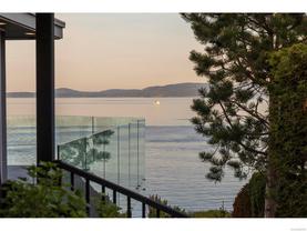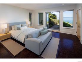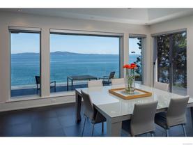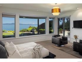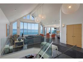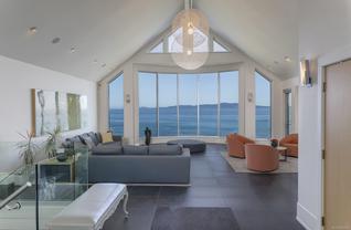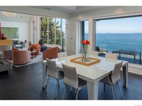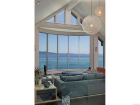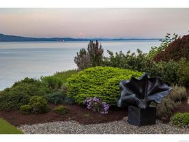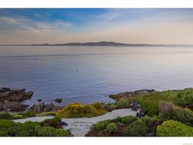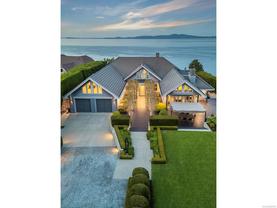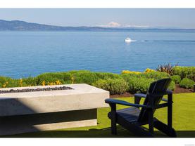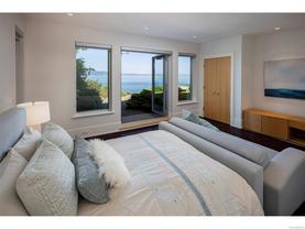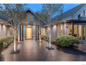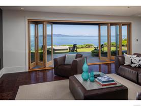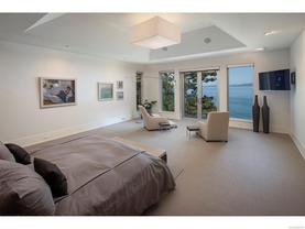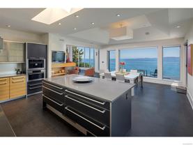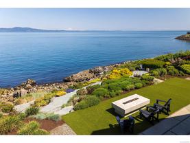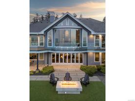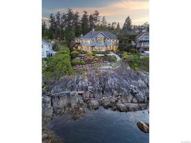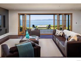 Exceptional waterfront home in Ten Mile Point with panoramic ocean and mountain views. This timeless 4BD/5BA residence blends clean-lined architecture with natural beauty and privacy. Vaulted ceilings (11’–18’) and expansive windows fill the open-plan interior with light. The chef’s kitchen features Miele & SubZero appliances, 6-burner gas range, double wall ovens, and skylit island. The main-level primary suite includes a spa-inspired ensuite, sitting area, walk-in closet, and deck access. A dramatic sitting room/lounge with accordion doors opens to a sun-filled south-west facing terrace & dining area w/awning. Lower level offers a media/games room with bar, guest bedrooms, and terrace with fire table near the water. In-floor heat, Control4, HRV, security, and a 648 sq ft guest cottage complete this luxurious offering near Cadboro Bay Village. Designed by Jim Grieve, this is a rare opportunity to own a legacy waterfront property in one of Victoria’s most exclusive neighbourhoods.