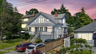 Unlock the potential of this legal triplex in Victoria’s sought-after Oaklands neighbourhood. Nestled on a peaceful, tree-lined street Brimming with character and showcasing views of the Olympic Mountains, this property is an exceptional find for savvy investors or those seeking flexible multi-generational living. Set on a spacious lot, the home offers two well-designed 1-bedroom suites on the main floor, ideal for rental income or extended family. The upper-level 2-bedroom suite features a stylish open-concept kitchen—perfectly updated for modern living. Each unit is self-contained, offering privacy and strong rental appeal. The gorgeous backyard has space for gardening, children, or pets or relaxing. Just minutes from Fernwood Village, parks, transit, and top-rated schools, this is a prime location with strong tenant demand. Whether you live in one unit and rent the others this is a turnkey opportunity with serious income upside in one of Victoria’s most beloved communities.