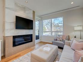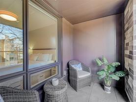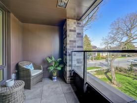 NEW PRICE! Welcome to The Oaks, the Bellewood Park development known for concrete and steel construction and luxurious living. Built by Abstract Developments in 2021 the building presents as new with each unit built for quiet and comfort with triple glazed windows, air conditioning and nine foot ceilings. This exceptional condo has a lovely primary bedroom with spa like ensuite, PLUS a DEN with MURPHY BED for guests and a SECOND bathroom. Beautiful lighting fixtures, custom cabinetry, fireplace & engineered oak wood floors. Chef's dream kitchen with Wolf gas range, Fisher & Paykel double drawer dishwasher & panelled French door fridge. Entertain on the east facing balcony with built-in heater and gas for BBQs. Find a gorgeous common room with outdoor patio nestled in gardens and Garry Oak trees. Secure underground parking, storage locker, bike & kayak areas. Pets allowed! Two dogs or two cats or one of each. No size restrictions. Enjoy walking to incredible Downtown restaurants, theatre and festivals. Head to Cook St Village and Dallas Road to take in the breathtaking ocean views and bike paths. Embrace the Victoria lifestyle we are known for and a quick possession is possible!