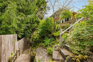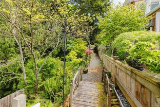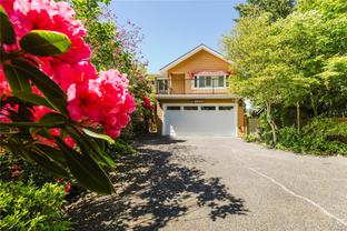 NEW Significant price reduction—well below Assessed Value. A gardener’s oasis tucked down a private, blossom-lined drive and cared for with pride. Reverse-plan design captures the light and bay outlooks upstairs, where the living area flows to a wide entertaining deck and a true cook’s kitchen with island, double wall oven, induction range, Bosch dishwasher, and wine fridge. On the garden/main level, the primary suite (approx. 13’×35’) offers a 9’×9’ walk-in, 3-pc ensuite, and direct access to a 20’×10’ sunroom. Wood floors, crown moldings, and meticulous upkeep throughout. Quiet cul-de-sac near the water, shopping, and golf—quality, privacy, and lifestyle at compelling value.