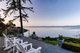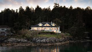 Welcome to 2600 Queenswood Drive, an extraordinary oceanfront retreat nestled on nearly 2.8 acres in one of Vancouver Island’s most prestigious enclaves. Gated and private, with the potential to subdivide, this timeless estate offers panoramic views of the Haro Strait, Gulf Islands, and Mt. Baker. The Hamptons-style residence blends classic East Coast charm with West Coast ease, featuring more than 6,000 sqft of beautifully curated living space. Soaring ceilings, expansive windows, and a seamless connection to the outdoors define the main level, which includes a sophisticated living room, elegant dining area, a hand built Walnut library/media room, and a chef’s kitchen designed for both function and flair. The main floor primary suite is a true sanctuary, while the upper level offers 3 additional bedrooms, 2 with ensuite. A walkout lower level includes a flexible studio or guest quarters. Lush landscaping, stone pathways, a private launch point for kayaking, and a detached 3-car heated garage with gardener’s toilet complete this rare seaside setting—just minutes to Cadboro Bay Village and UVic.