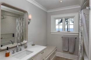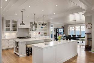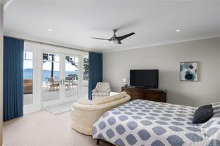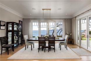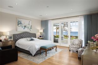 Nestled down a private lane, this oceanfront home blends modern coastal design with luxury. With views of the ocean & Mount Baker, it features a beautifully landscaped garden and paver driveway. Inside, white finishes, light oak accents, and chrome detailing create a bright, welcoming atmosphere. The spacious living room, with a cozy fireplace, opens to a private paver patio perfect for indoor-outdoor living. The chef’s kitchen includes a double island, butler’s pantry, and sleek Wolf appliances. The main-floor primary bedroom boasts a 250 sqft walk-in closet, a 5-piece ensuite, and patio access. Upstairs, two bedrooms offer ocean-view decks, ensuite bathrooms, and walk-in closets, along with a living room, laundry room and nanny suite. The lower level includes an exercise room, media room, and games nook. With a double garage, versatile study, and tucked-away laundry, this home is minutes from parks, groceries, schools & Cadboro Bay Village—perfect for refined family living.