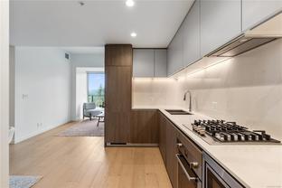 This elegant one-bedroom, one-bathroom luxury condo at the highly desirable One Bear Mountain features one of the building’s most sought-after floor plans and is vacant and turnkey ready. Soaring 10-ft ceilings, floor-to-ceiling windows, and a 205 sqft balcony offer breathtaking mountain views. The modern kitchen boasts Italian cabinetry, quartz countertops, and integrated Bosch appliances. High-end finishes include hardwood flooring, heated bathroom tiles, soft-close cabinetry, and air conditioning. Additional perks include in-suite laundry and a secured parking stall with an EV charger. Residents enjoy premium amenities: an outdoor pool, gym, yoga studio, sky lounge, pet and car wash, and business center. Golf, dining, and trails are just steps away. GST INCLUDED