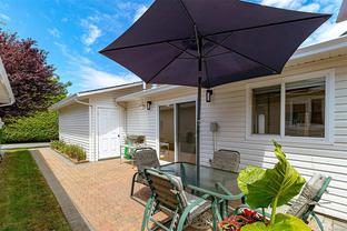 Retirement living at its finest in the popular 55+ Songhees Retirement Park. This beautifully updated one level living home with 3 bedrooms and 2 full baths. This is one of the larger homes in the complex and is ready to move right in and enjoy. On entering the home you will appreciate the spacious living and dining areas. Enjoy the large kitchen with lots of cabinets and windows plus a large eating area opening by patio doors to your quiet and private patio. This home has a great layout with the primary suite at the back of the home to enjoy great light and a gorgeous ensuite. You have the opportunity to do as much gardening as you like but as it is now enjoy the easy care large lot. A bonus double garage with space for your workshop! Walking distance to Admirals Walk Shopping Centre, golf course and bus routes. The complex rec centre is available at a small extra charge of $10. per month and lots of activiities and a great library to enjoy!
