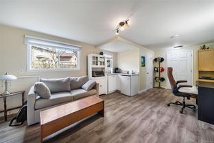 OH Oct 5 11-1pm. Welcome to this well-maintained family home tucked away in the quiet, sought-after Tanner Ridge neighbourhood. Set on a spacious lot, this south-facing property offers tranquility, charm, & room to grow. Enjoy the bright main living area with over 2000sqft of finished living space. The kitchen features electric stainless steel appliances, & around the corner you will find a beautiful enclosed sunroom. The primary bedroom includes a private 2-piece ensuite, & the lower level features a propane fireplace, wet bar, plus suite potential. Have peace of mind with the vinyl windows, newer laminate flooring, newerdriveway, perimeter drains, and much more. This home also features tons of additional storage, a work shop, a large amount of parking for an RV & a wrap-around deck with updated railings, ideal for relaxing or entertaining. Beyond you'll find a mature landscaped yard—a true gardener’s dream complete with fruit trees. This peaceful home is just waiting for it's next chapter!