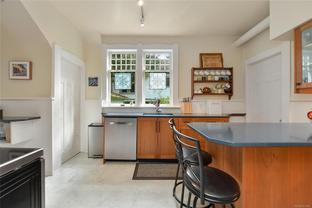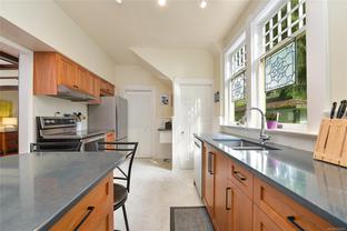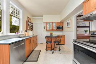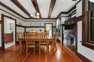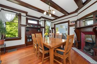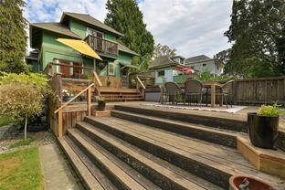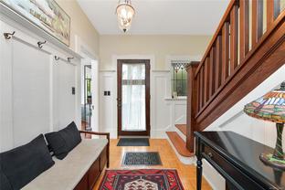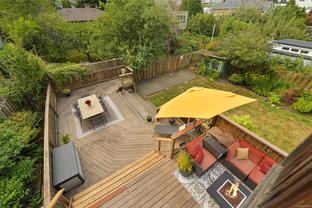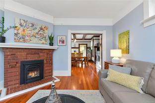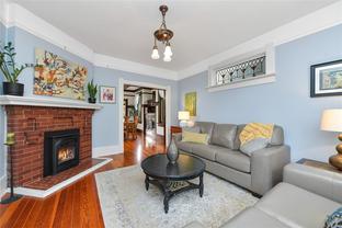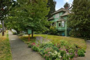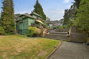Step into timeless elegance with this classic 1912 Fairfield character home. Ideally situated in the middle of one of the neighborhood’s most family-friendly streets, it offers the perfect blend of heritage charm & everyday comfort. Set on an oversized 63x120 lot, the property is a gardener’s paradise with west-facing exposure, a multi level sun-filled back deck, mature landscaping, with a spacious grassy play area. The inviting front porch opens to a paneled entryway with beautifully crafted principal rooms featuring rich woodwork with period details including built-in cabinets and stained glass. Upstairs, you’ll find three generous bedrooms, each with ample closet space and abundant natural light. The partially finished lower level offers flexibility for hobbies, recreation, or future development. A rare offering in a sought-after location, this home captures the warmth and nostalgia of a bygone era in a community where neighbours gather and children still play in the street.