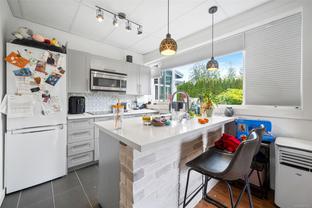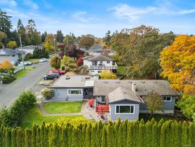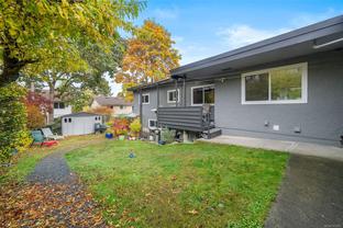This beautifully updated home offers unique flexibility with three separate living spaces, perfect for your extended family or extra income. The main level is modern and inviting with three bedrooms, a renovated four-piece bathroom, an updated kitchen with new appliances, and a spacious sunken living room with a gas fireplace. Recent upgrades include hot water on demand and natural gas heating. The lower suite features a large bedroom and den, a newly renovated kitchen and bathroom, and its own gas fireplace, plus shared laundry and storage. The charming garden studio provides a self-contained space with a kitchen and four-piece bath. Outside, the large, sunny yard is fully fenced, with recent perimeter drain upgrades, a garage, and ample parking. Located in a sought-after Saanich neighbourhood close to the Root Cellar, Saanich Centre, Galey Farms, Braefoot Park, and Mount Doug Golf Course, this home offers exceptional lifestyle and investment potential in a highly convenient location.