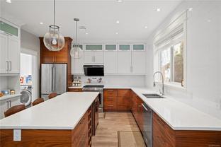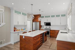 Tucked away in the quiet and sought-after Olympic Ridge community, this elegant 3-bedroom, 3-bath home with a large den offers a refined blend of modern design, functionality, and everyday comfort. Perfectly positioned at the end of a peaceful street, it enjoys exceptional privacy while remaining just minutes from Royal Bay Secondary, Red Barn Market, scenic parks, Olympic View Golf Course, and public transit, with Starbucks, local shops, and essential conveniences only a short drive away. The main level welcomes you with 9-foot ceilings, abundant natural light, and a bright open-concept living, dining, and kitchen area thoughtfully designed for relaxed family living or effortless entertaining. The gourmet kitchen impresses with premium stainless steel appliances, quartz countertops, and an extended island that is perfect for casual meals or social gatherings. Upstairs, the primary suite features elegant French doors leading to a spa-inspired ensuite and a spacious walk-in closet, while two additional well-sized bedrooms share a beautifully finished 5-piece bathroom. Enjoy the tranquil mountain and forest views from the elevated setting, offering a private retreat ideal for quiet mornings or unwinding after a long day.