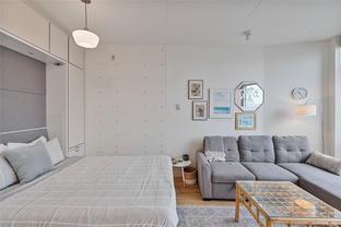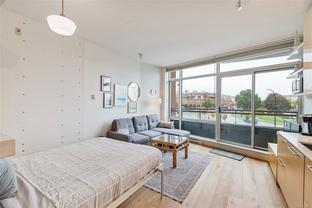 Ocean views! Located in Victoria's popular Old Town, The Janion is an architectural and historical standout. This steel and concrete development offers amazing amenities like a rooftop terrace with BBQ's and stunning harbour views, kayak storage with direct water access, a well equipped gym, and amenity room with kitchen. Step inside unit 211, and be delighted by natural light from south facing floor to ceiling windows, which offer picturesque ocean views. It is also equipped with a full kitchen including drawer dishwasher, murphy bed with dining table, 9' ceilings, in-suite laundry, blackout blinds, brand new engineered wood floors, and private balcony overlooking the water. This loft also comes with a storage locker! Perfect for simplified full time living, or investment (rental friendly and in high demand). Just steps to Victoria's best dining, coffee and retail, the urban lifestyle is waiting for you! Ran by a very professional strata.