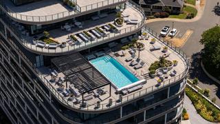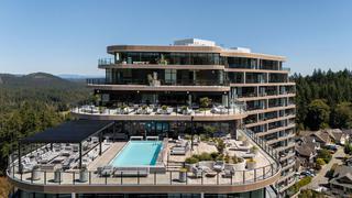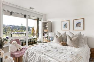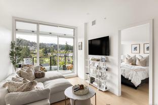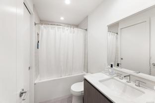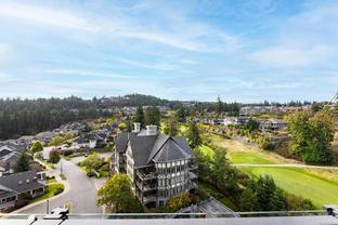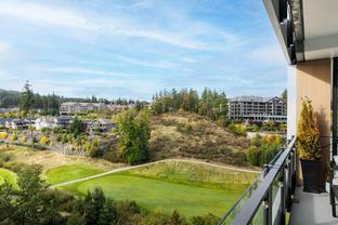 Experience elevated resort living at One Bear Mountain, where modern luxury meets West Coast tranquility. This bright west-facing 1-bedroom home showcases oak flooring, 9-ft ceilings, and floor-to-ceiling windows with stunning views of the 18th fairway and Mt. Finlayson. The gourmet kitchen features Bosch appliances, quartz countertops, and Italian cabinetry. It opens to a sunlit living area with a home office nook and spacious patio with BBQ hookup, ideal for relaxing or entertaining. The primary suite includes a walk-through dressing area and a spa-inspired ensuite, creating a peaceful retreat. Residents enjoy world-class amenities such as the 16th-floor Grenoble Sky Lounge, Fitness and Yoga Studio, Outdoor Pool, Sundeck, and Business Center. This home includes secure parking, storage locker, a bike room, and a dog wash station. Every detail has been designed for refined, effortless living at Bear Mountain.