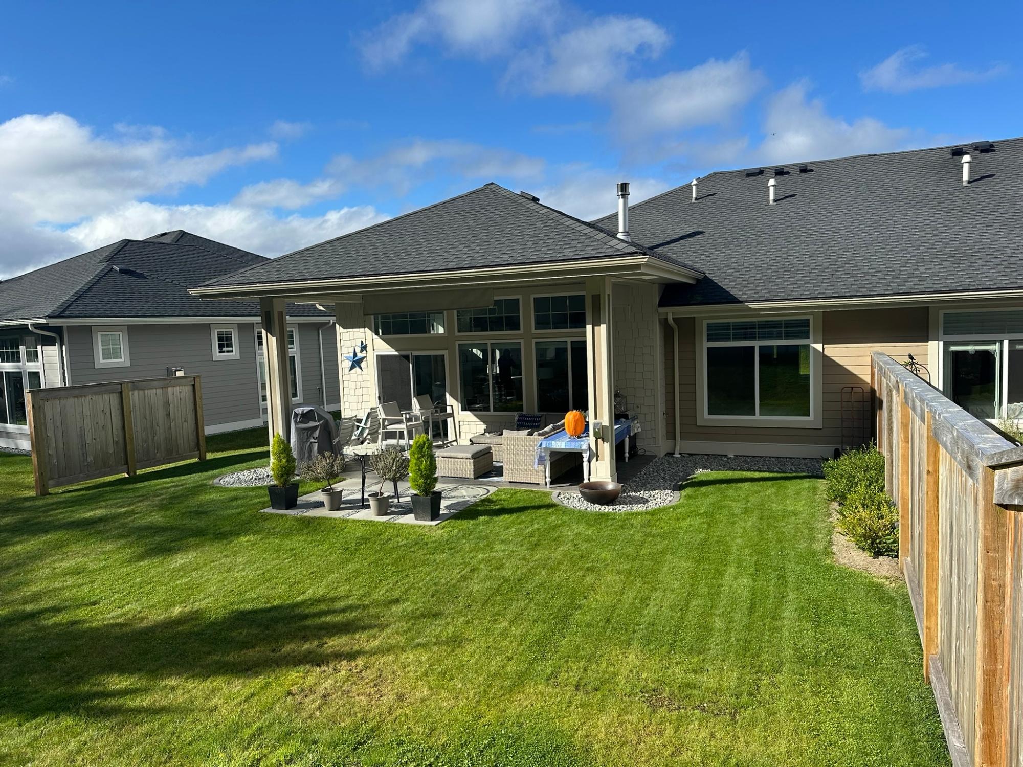 Comfort, Efficiency & Easy Living Designed for comfort and convenience. Outside, enjoy the covered patio outdoor living area with BBQ gas connection. Worry-free living with underground sprinklers, lawn care, fertilizing, window, patio door, gutter cleaning and seasonal maintenance all handled by project management. Inside, appreciate engineered hardwood floors, high ceilings, in-floor heating in both tiled bathrooms, and a Toto wash-let toilet seat in the ensuite. High quality home with stone work, double wall sound barrier, HRV, and custom windows to let in natural light. A four-foot heated crawl space adds extra comfort, and a hot water on demand system is neatly tucked in the garage closet. An easy-care, energy-efficient home that’s comfortable, quiet, and ready for you to move in and enjoy!