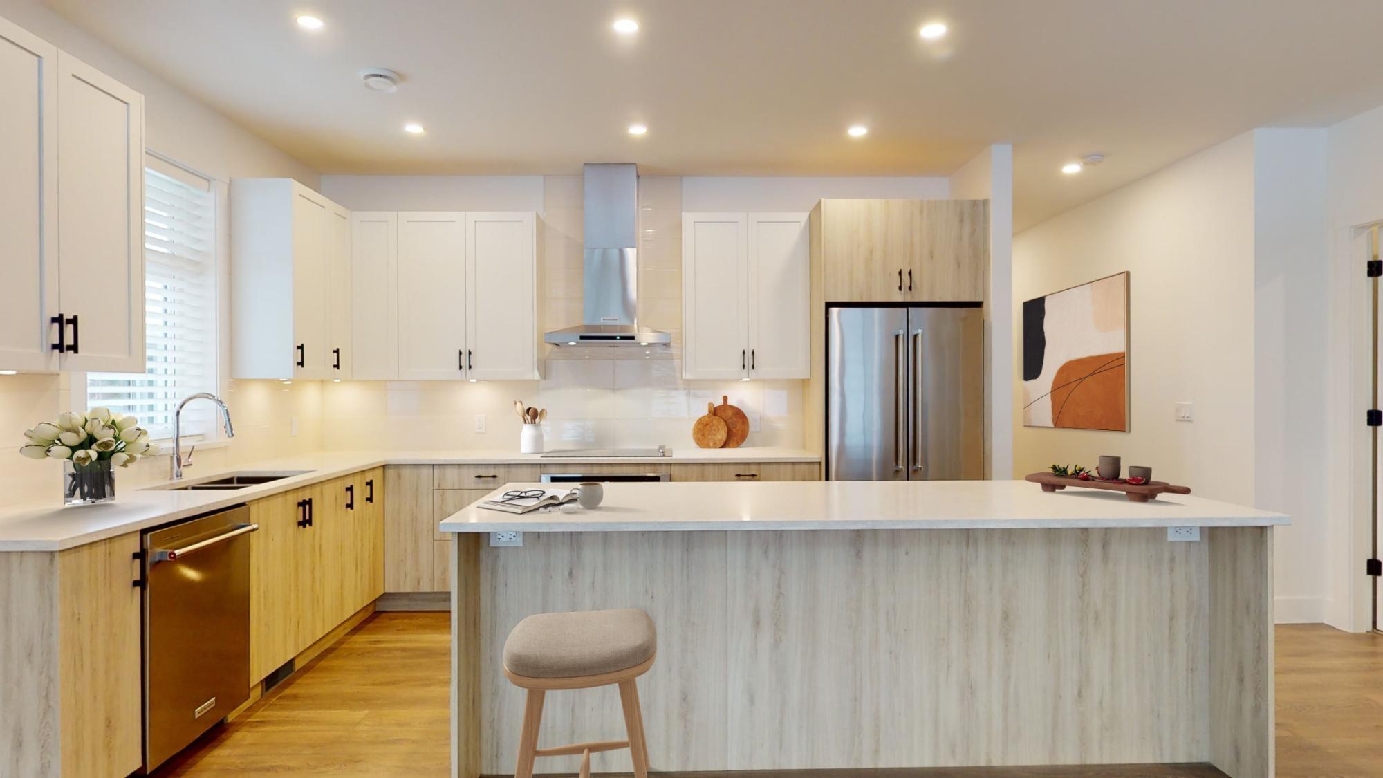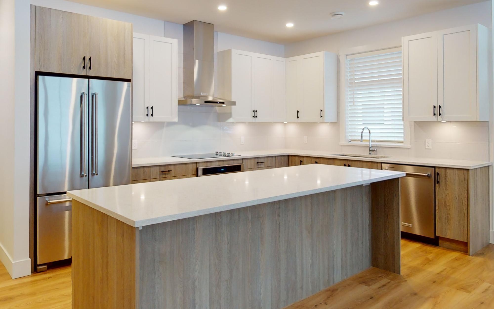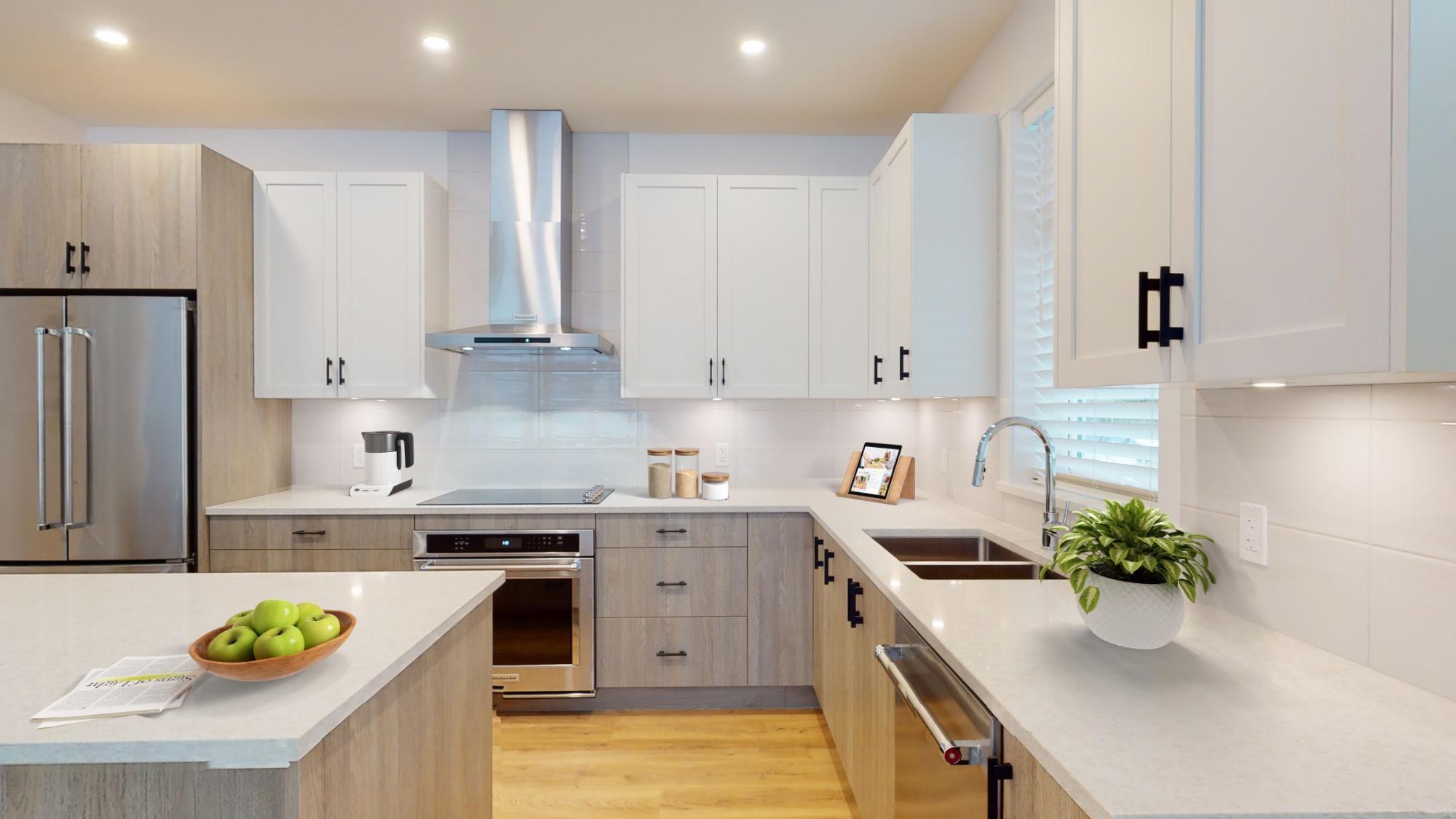 Welcome to a new standard of quality and comfort in this beautifully crafted single-level duplex offering 2 bedrooms, 2 bathrooms, and 1,269 sq. ft. of thoughtfully designed, enjoy a custom kitchen featuring a large island, quartz countertops, tile backsplash, and a full KitchenAid appliance package. The spacious primary suite includes a luxurious ensuite, while every detail showcases quality craftsmanship and modern design. Built to Step Code 5 for exceptional energy efficiency, this home offers a heat pump, HRV system, and hot water on demand. Low-maintenance living meets timeless design in a central location, surrounded by the natural beauty of British Columbia’s coast — the perfect blend of modern luxury and West Coast lifestyle.