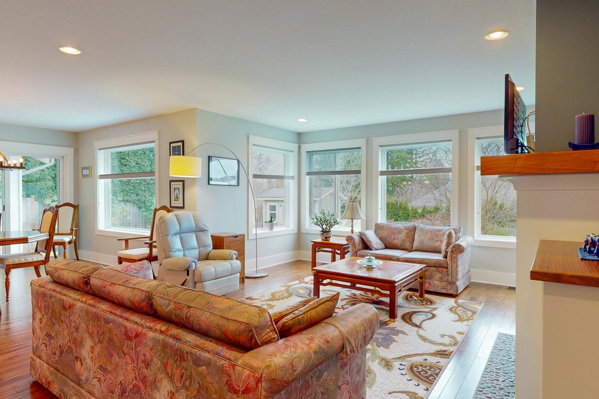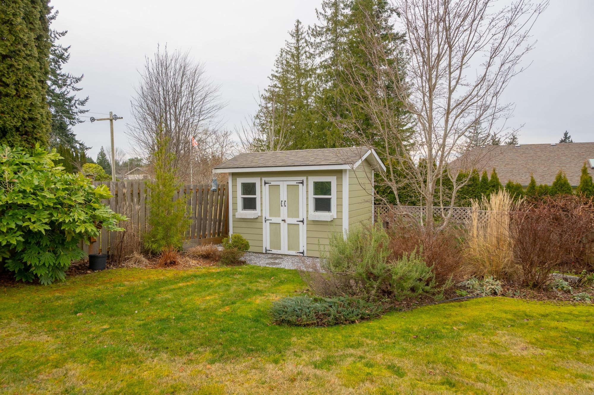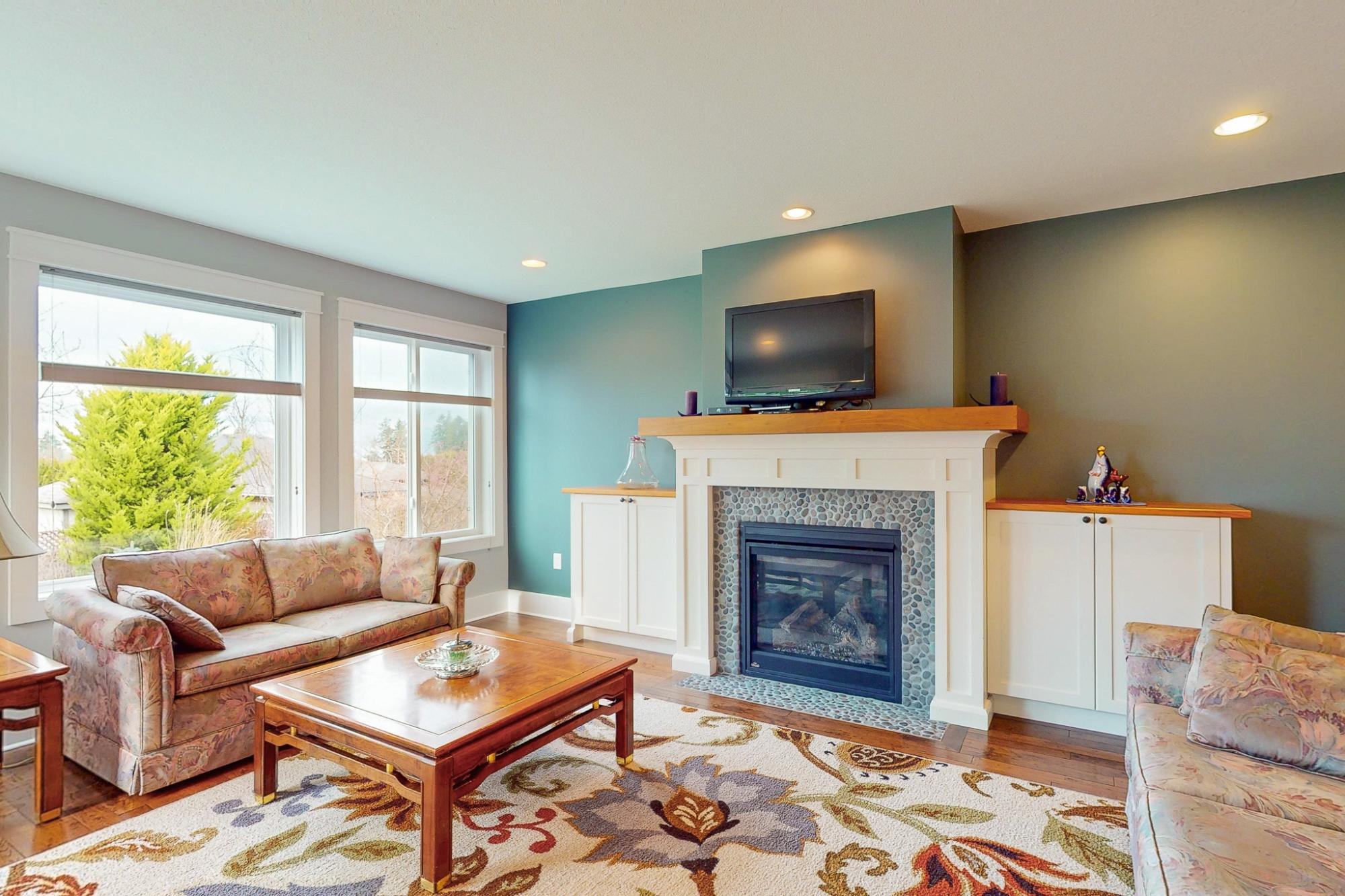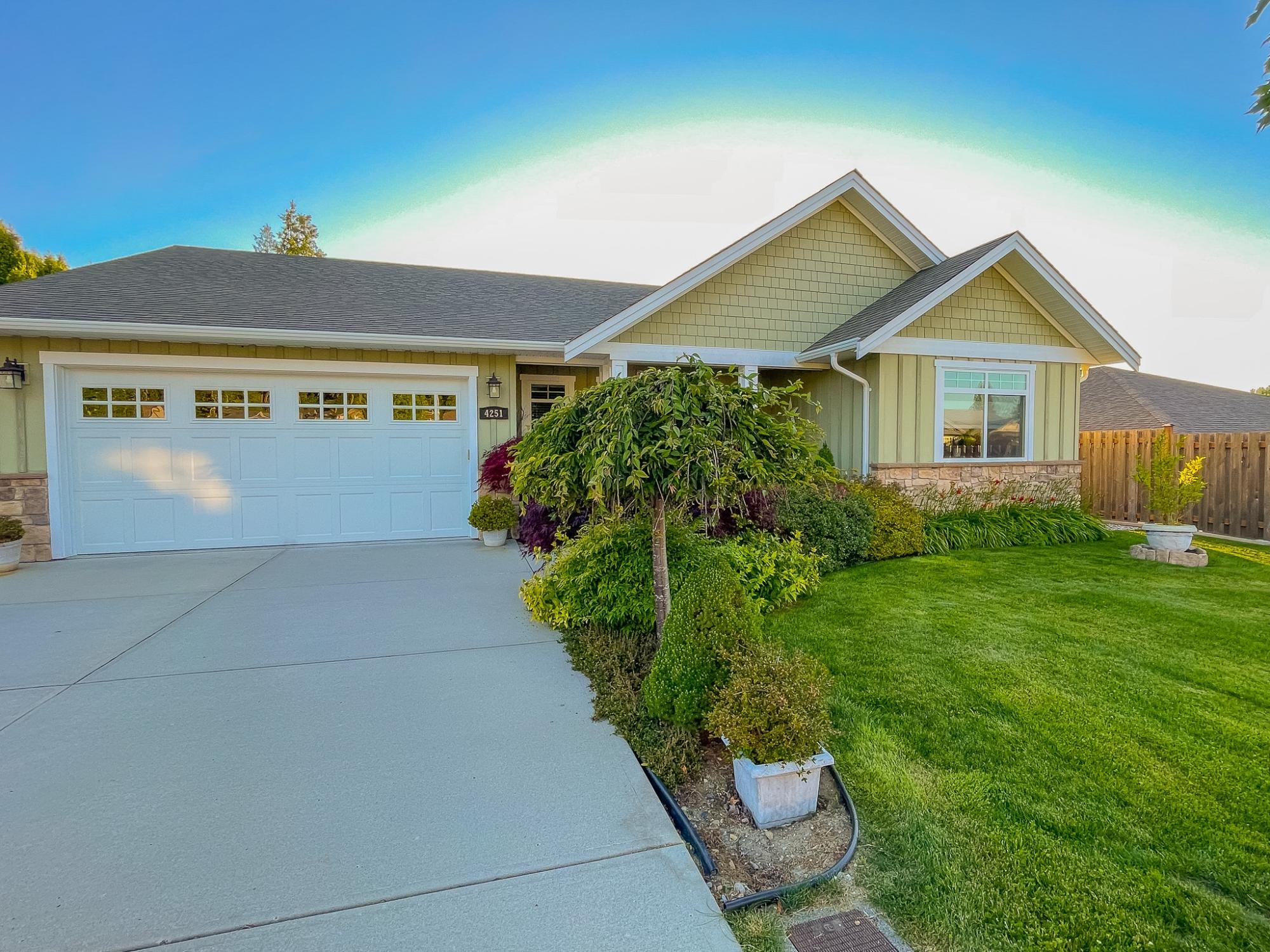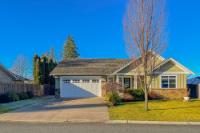 Exceptional quality-built custom home offering 1,800 sq ft of refined, level-entry living. This three-bedroom, two-bathroom residence showcases a thoughtfully designed layout that creates excellent separation and privacy between the primary suite and main living areas from the additional two bedrooms and bathroom. The refined living space is anchored by a gas fireplace with custom built-ins and rich solid wood flooring. The chef-inspired kitchen features a commercial-grade BlueStar gas oven, generous pantry, and high-end finishes ideal for entertaining. The spacious primary suite offers a walk-in closet, luxurious soaker tub, and walk-in shower. Distinguishing features include a heat pump, central vacuum system, crawlspace, Rheem hot water tank, quality top-down blinds, and a built-in sprinkler system. Step outside to a large stamped concrete patio designed for outdoor living. The beautifully landscaped yard includes a custom shed built to mirror the home’s aesthetic. Call today!