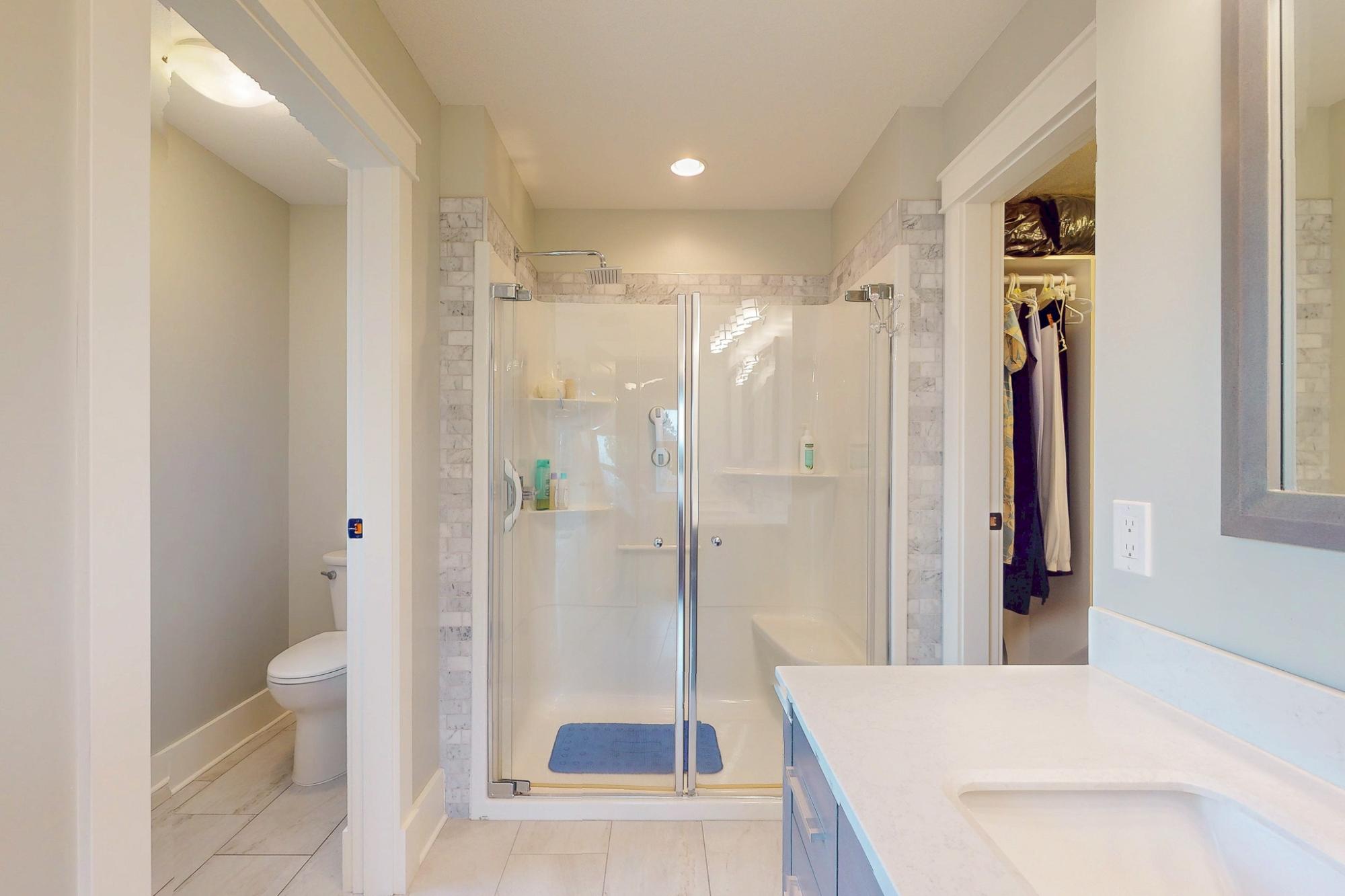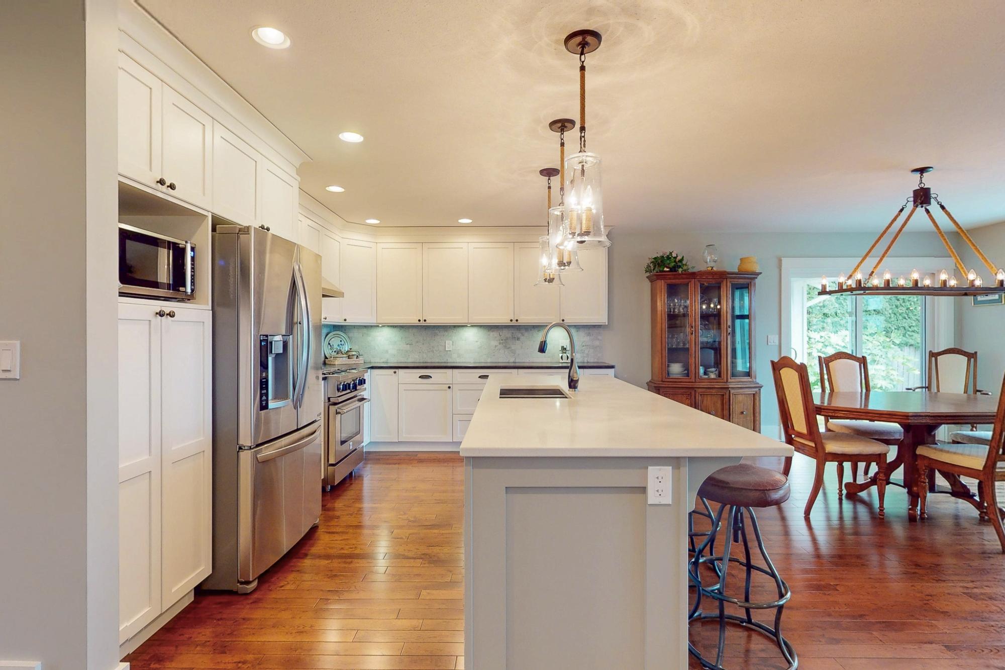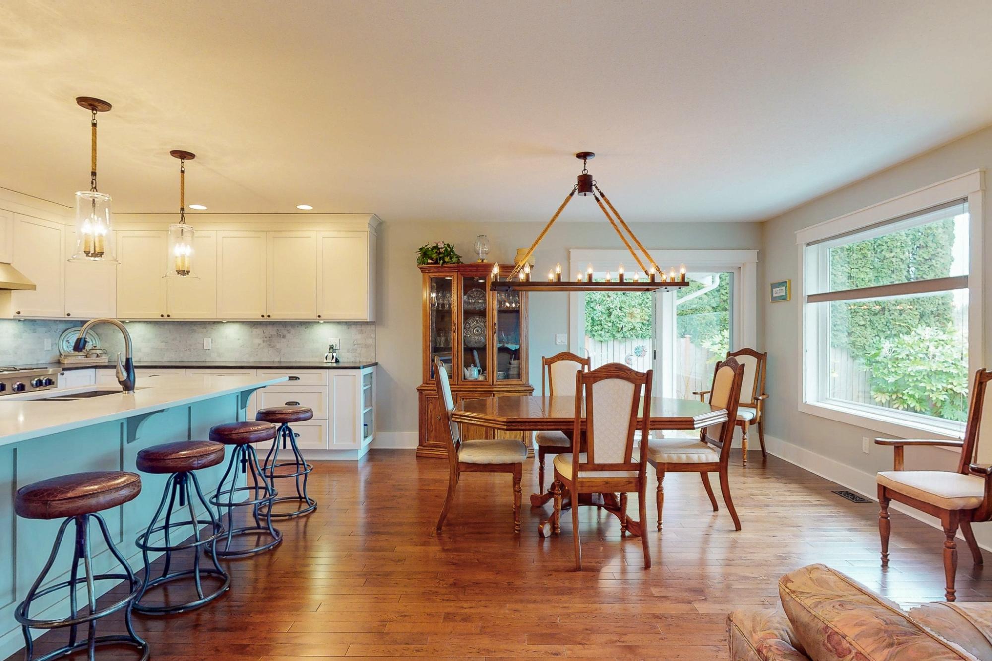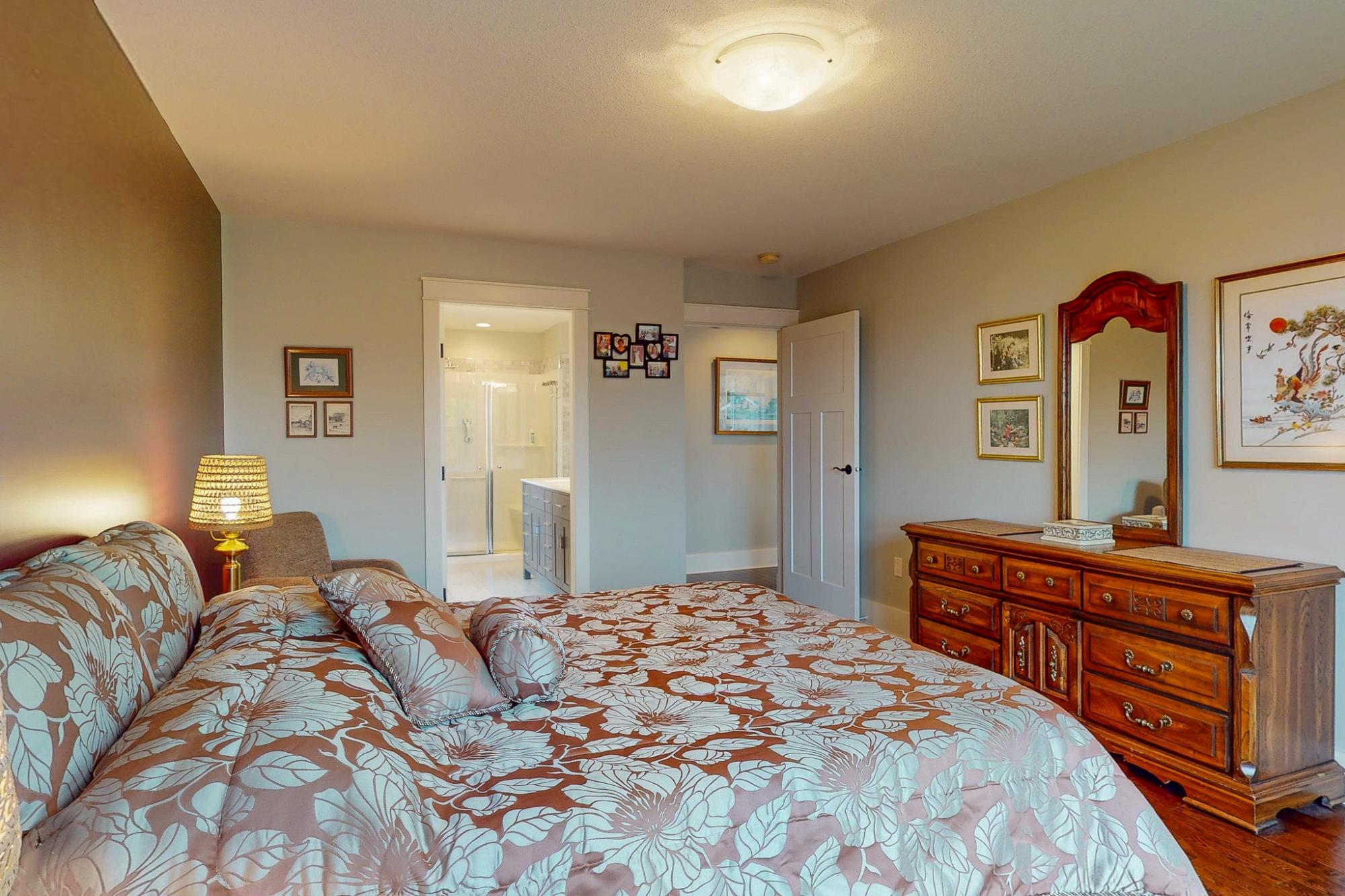 Exceptional quality-built custom home offering 1,800 sq ft of refined, level-entry living. This three-bedroom, two-bathroom residence showcases a thoughtfully designed layout that creates excellent separation and privacy between the primary suite and main living areas from the additional two bedrooms and bathroom. The refined living space is anchored by a gas fireplace with custom built-ins and rich solid wood flooring. The chef-inspired kitchen features a commercial-grade BlueStar gas oven, generous pantry, and high-end finishes ideal for entertaining. The spacious primary suite offers a walk-in closet, luxurious soaker tub, and walk-in shower. Distinguishing features include a heat pump, central vacuum system, crawlspace, Rheem hot water tank, quality top-down blinds, and a built-in sprinkler system. Step outside to a large stamped concrete patio designed for outdoor living. The beautifully landscaped yard includes a custom shed built to mirror the home’s aesthetic. Call today!