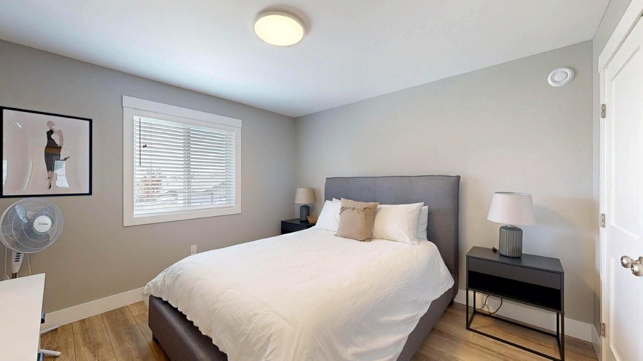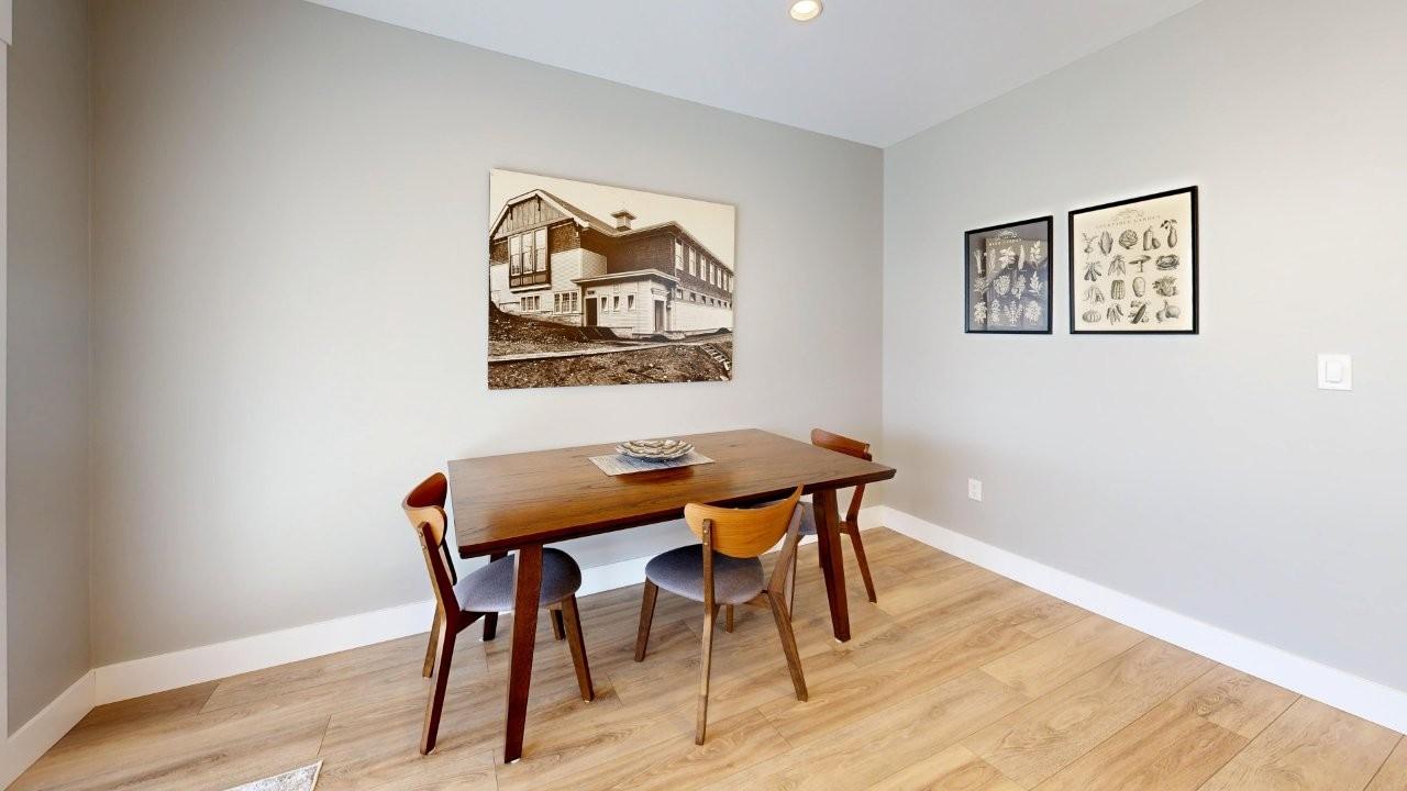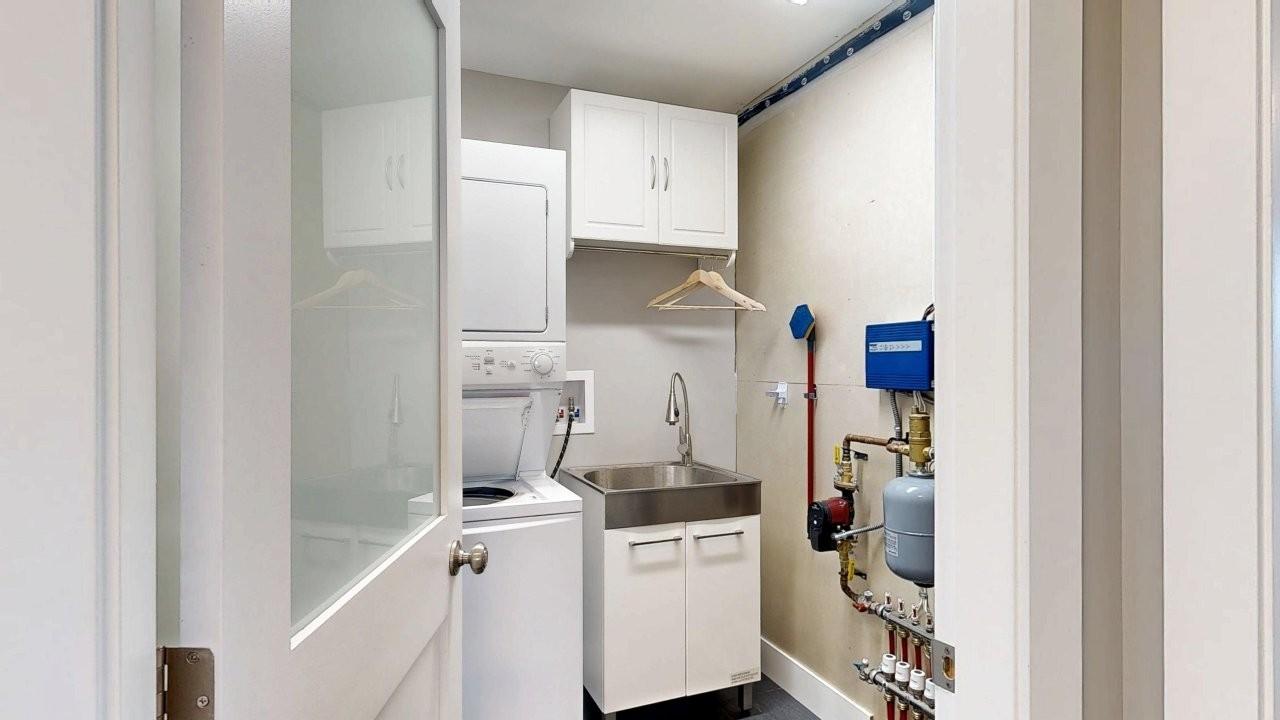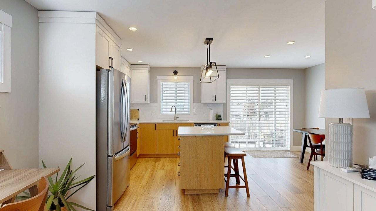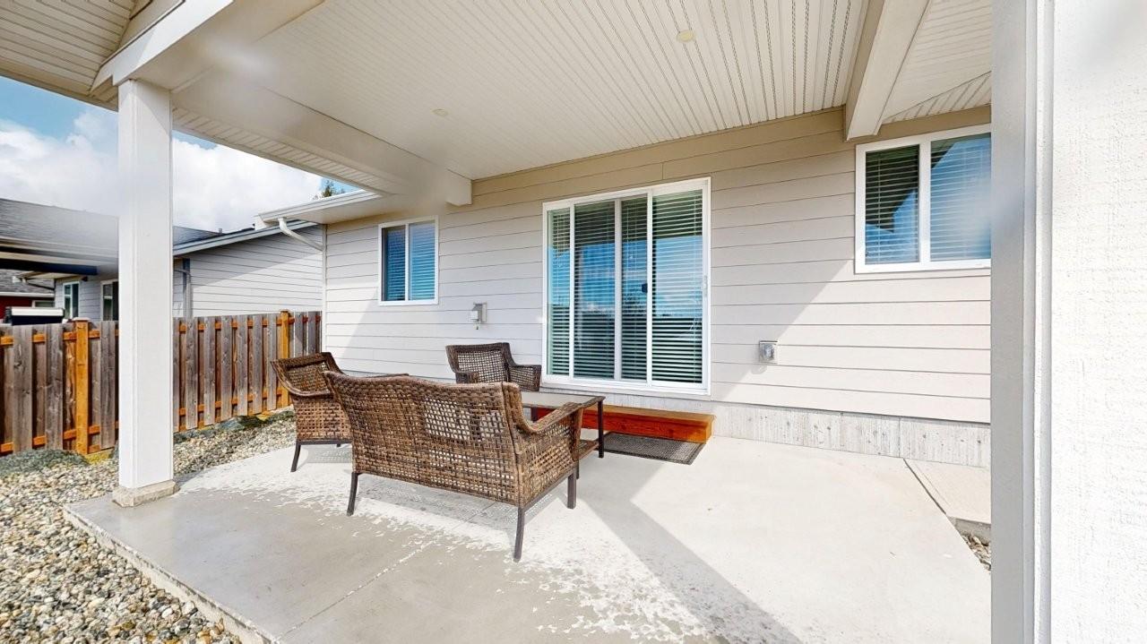 MOVE-IN READY RANCHER - This 2 bedroom, 1 bath rancher is a breeze to look after inside & out. Covered front and back entrances welcome you in to a bright home with a clean, simple layout. The kitchen features a sit-up island and stainless appliances, plus an eating area with sliding doors opening to a covered patio. There are double-door closets in both bedrooms and at the front entrance. Easy-care laminate wood flooring, with tiled entry, bathroom and laundry is cosy underfoot from radiant in-floor heat. Hot water on demand system is cost-saving and convenient. Stacking washer & dryer plus a handy laundry sink are tucked into a utility room. The small fenced yard includes a detached garage to house your car and seasonal equipment. Call to take a look today!