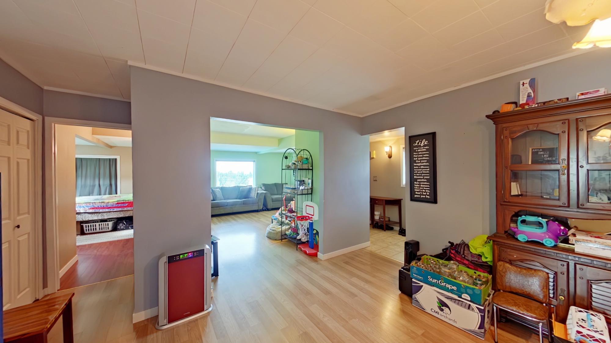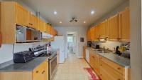 Charming Family Home on Half Acre Lot – Central Location! This well-maintained 3+1 bedroom, 2-bathroom home is ideally situated just a few blocks from shopping and amenities, offering the perfect blend of convenience and comfort. Located on a spacious half-acre lot, there's plenty of room for outdoor enjoyment, gardening, and more. Inside, you'll find a beautifully updated oak kitchen complete with a cozy breakfast nook, and laundry conveniently located just off the kitchen. The spacious dining room and bright living room provide a welcoming space for entertaining and everyday living. Downstairs features a large rec room, a dedicated workshop, and plenty of storage – ideal for hobbies, projects, or additional family space. A newer gas furnace ensures efficient heating through the seasons, and easy-care vinyl siding adds to the low-maintenance appeal. Outside, the fully fenced yard boasts a patio, established gardens, and a handy storage shop – perfect for tools, or toys.