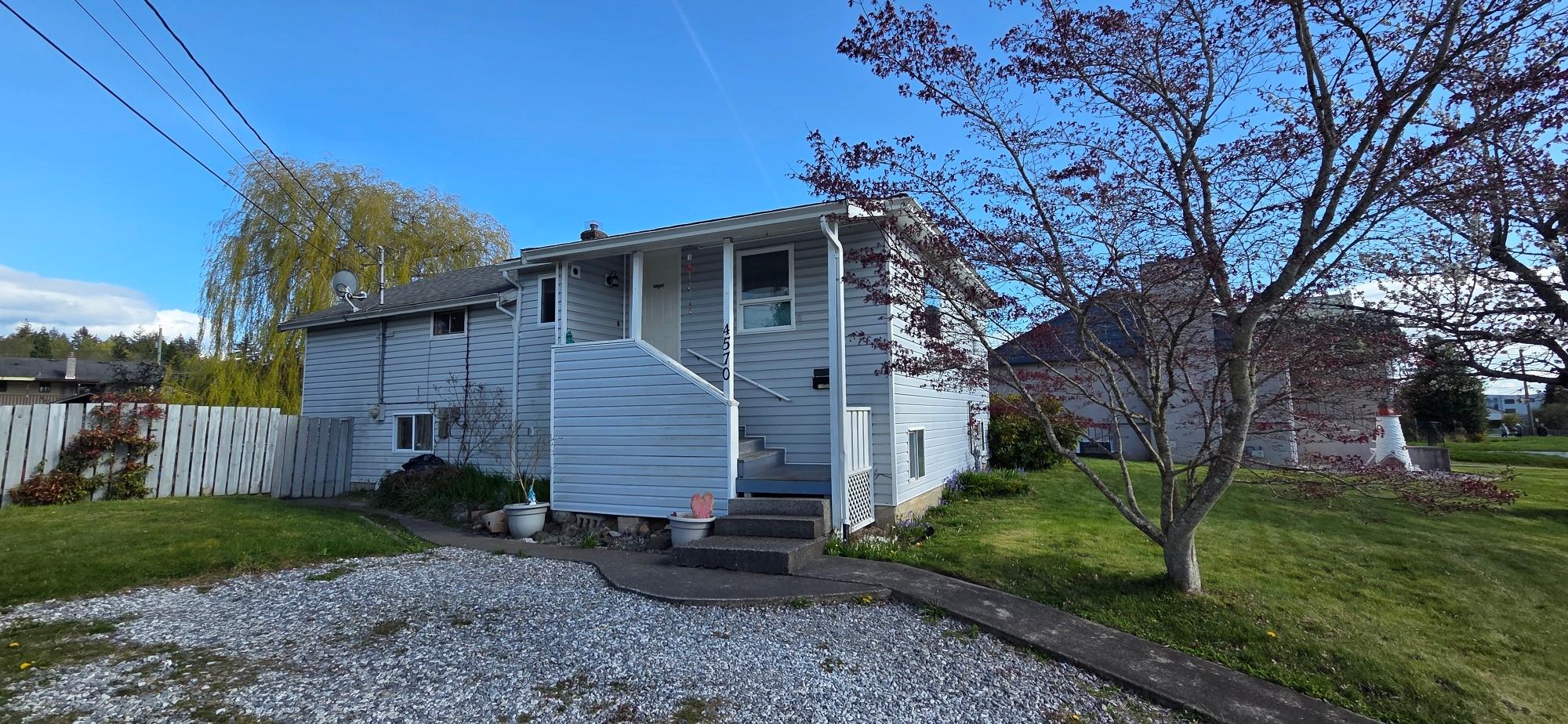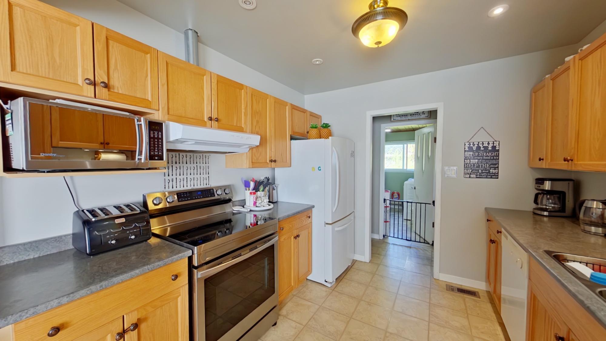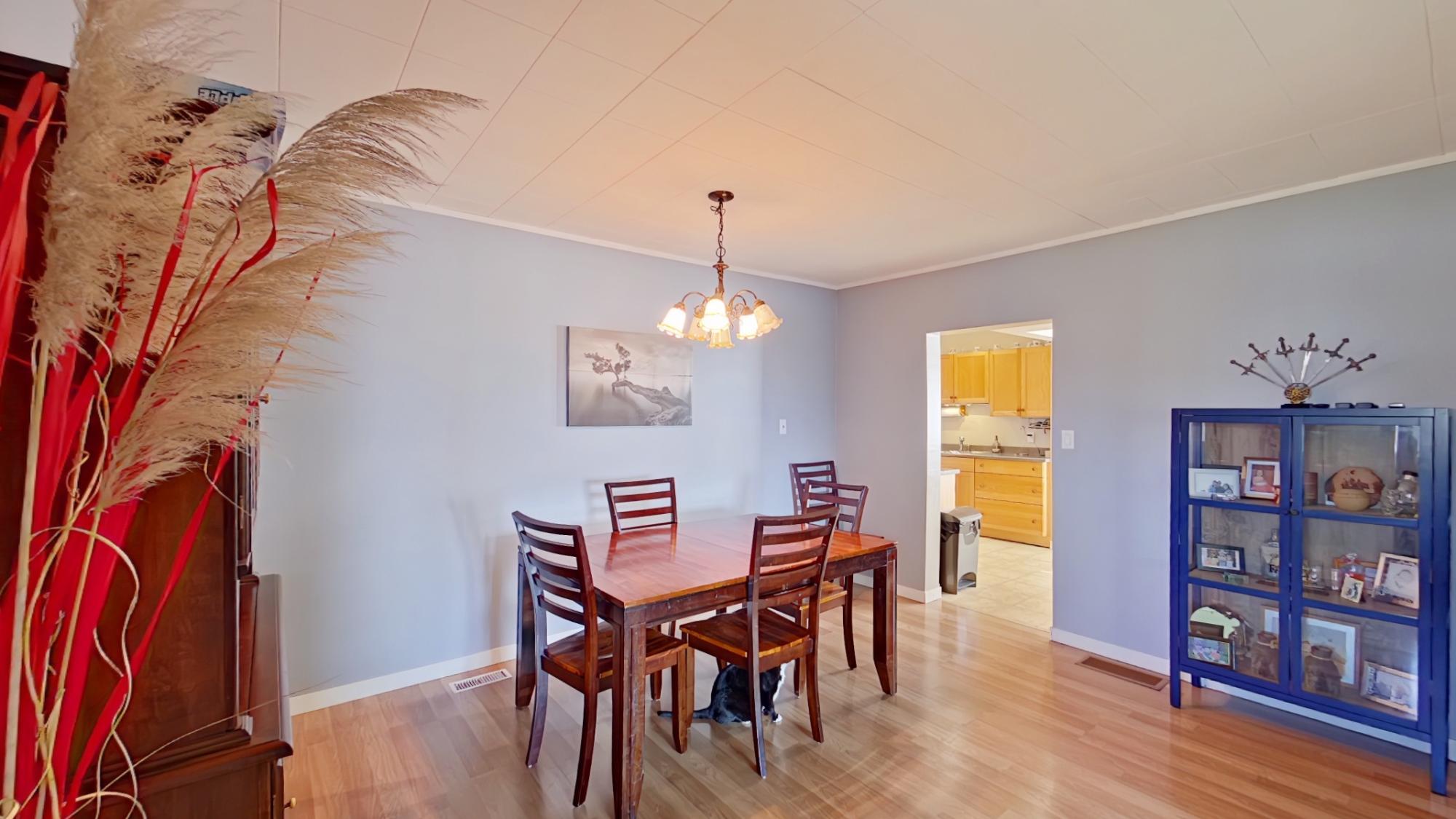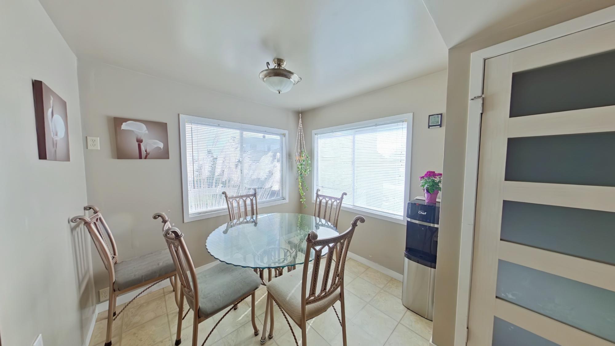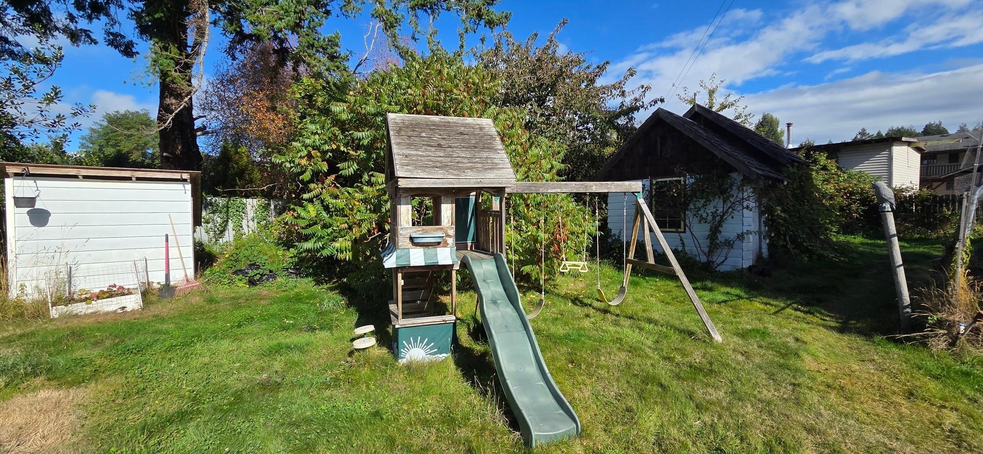 Charming Family Home on Half Acre Lot – Central Location! This well-maintained 3+1 bedroom, 2-bathroom home is ideally situated just a few blocks from shopping and amenities, offering the perfect blend of convenience and comfort. Located on a spacious half-acre lot, there's plenty of room for outdoor enjoyment, gardening, and more. Inside, you'll find a beautifully updated oak kitchen complete with a cozy breakfast nook, and laundry conveniently located just off the kitchen. The spacious dining room and bright living room provide a welcoming space for entertaining and everyday living. Downstairs features a large rec room, a dedicated workshop, and plenty of storage – ideal for hobbies, projects, or additional family space. A newer gas furnace ensures efficient heating through the seasons, and easy-care vinyl siding adds to the low-maintenance appeal. Outside, the fully fenced yard boasts a patio, established gardens, and a handy storage shop – perfect for tools, or toys.