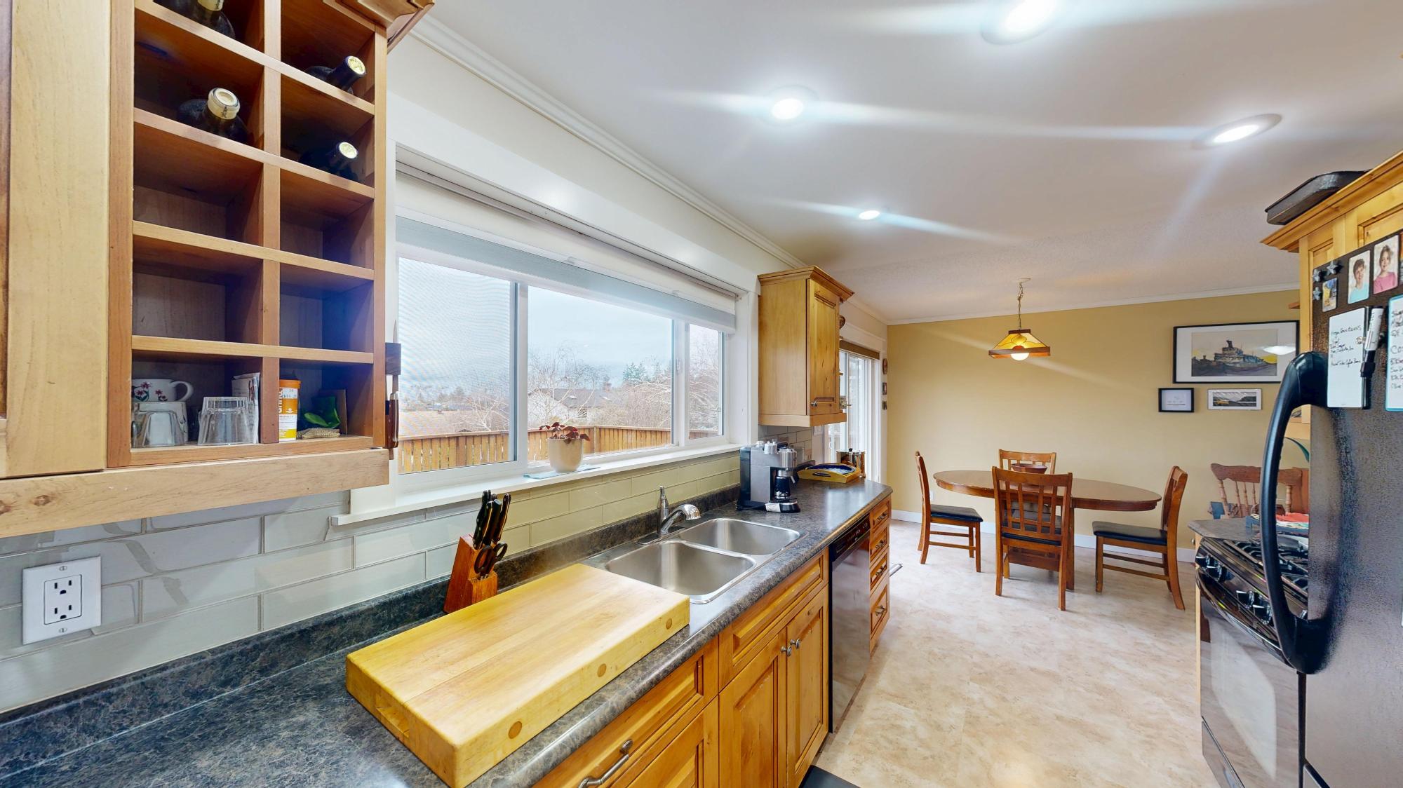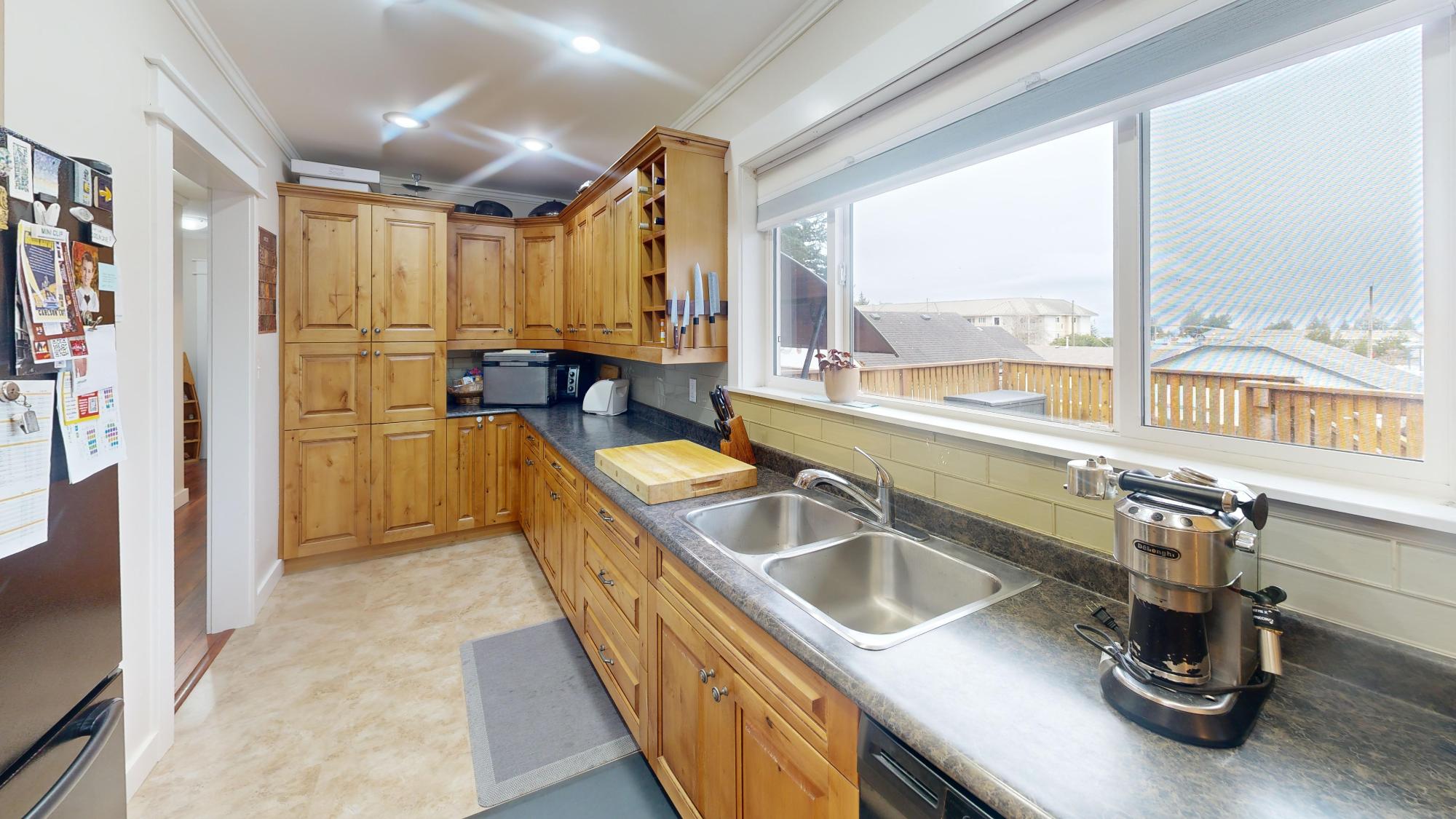 CENTRAL WESTVIEW CHARMER - This beautiful split level home in the heart of Westview is tucked away on a quiet side street while remaining within walking distance to shopping, services and amenities. Inside, enjoy a bright, spacious living room which flows into the dining area with sliding doors to a massive sun-soaked deck - perfect for entertaining. The custom alder kitchen offers excellent storage and workspace to cook, laugh and gather. Recent updates including front landscaping, installation of under decking to create a dry entertaining area below and insulation upgrades. The walk-out basement features a rec room, office, full bath with amazing soaker tub, laundry and flexible space ideal for an entertainment room or future suite. Outside, the large, level, fully fenced lot with recent upgrades to the fencing has a detached shed on a large concrete pad and room for RV parking and raised garden beds.