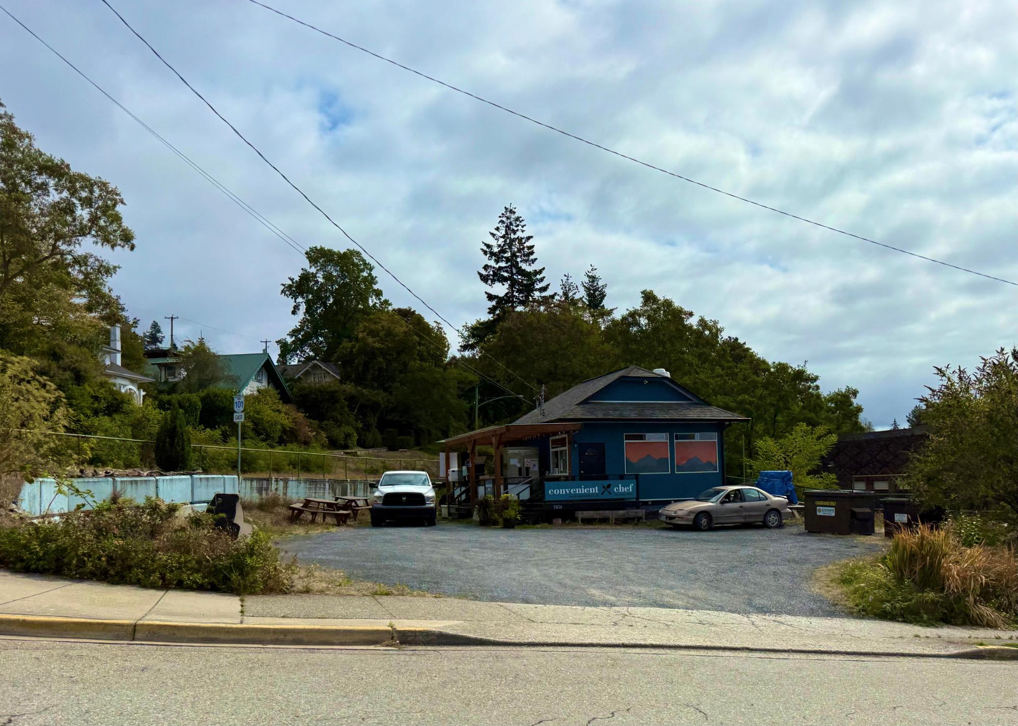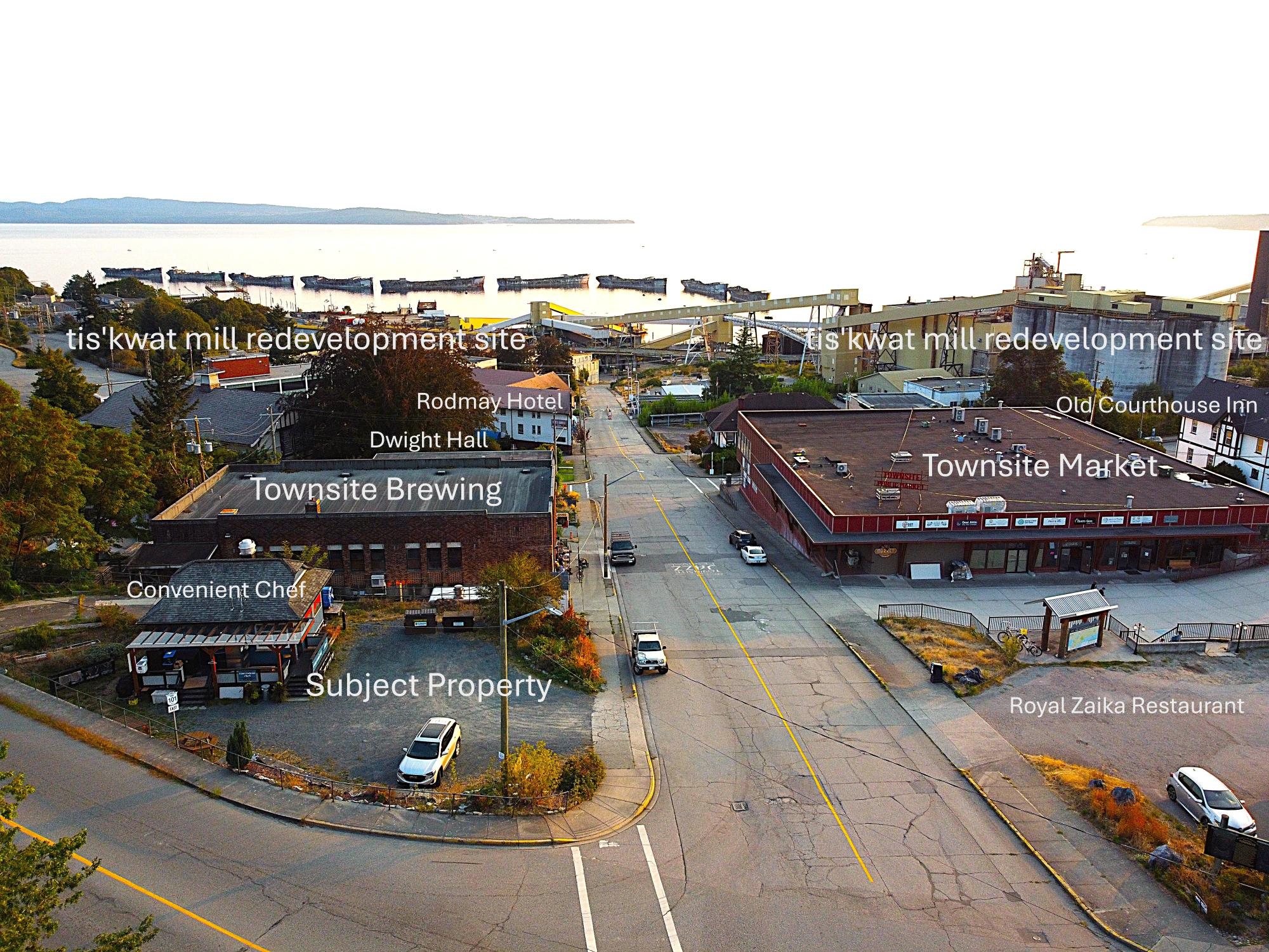 INVESTMENT PROPERTY - PRIME CORNER LOT with freestanding commerical kitchen, leased to a food production, sales and catering business. This property offers rental income with the upside from rent increases while also benefiting from substantial redevelopment potential. This prominent Townsite corner location has high visual exposure on the south-west corner of Marine (Hwy 101) and Ash Ave. and is in close proximity to the recently announced large scale and multi-faceted tisk'wat mill redevelopment. The C1 zoning allows for a wide variety of commercial and mixed uses, including ancillary residential. Superb potential for redevelopment to 2 or 3 stories with ocean and mill views from interior and exterior designed spaces. The existing post, beam and glass canopy over the deck was added in 2021 by the vendor. Excellent opportunity to own a commercial investment property with a substantial upside at this relatively low price point. Call the listing agent for more info.