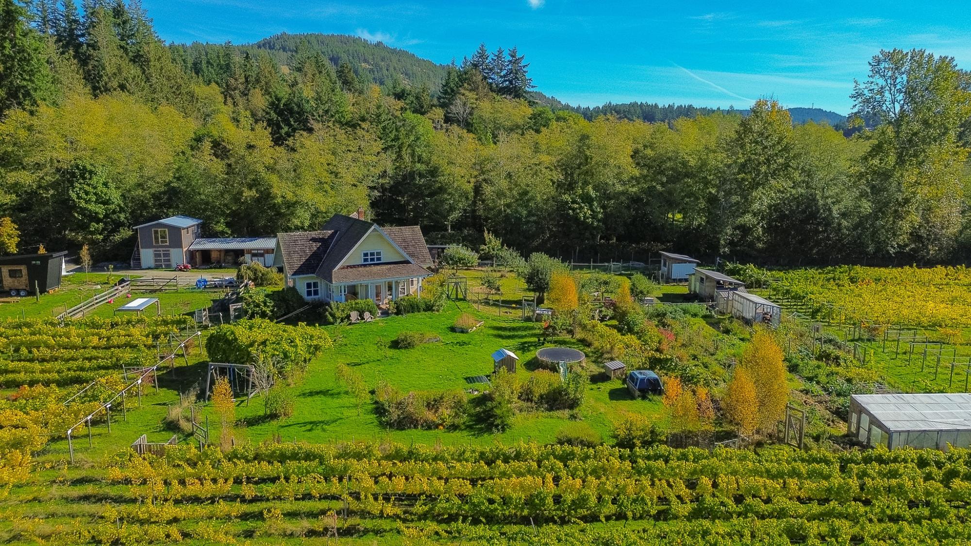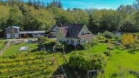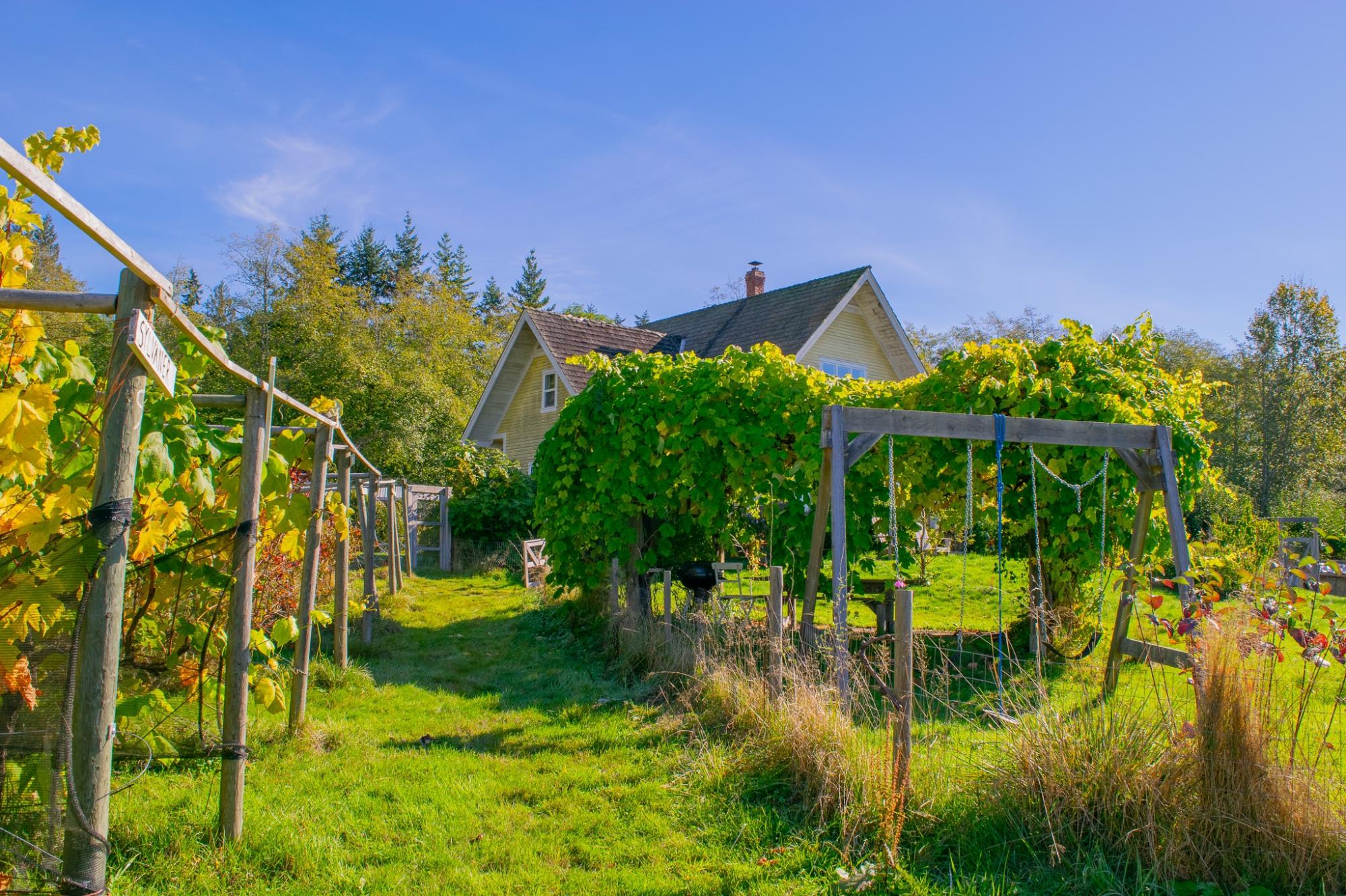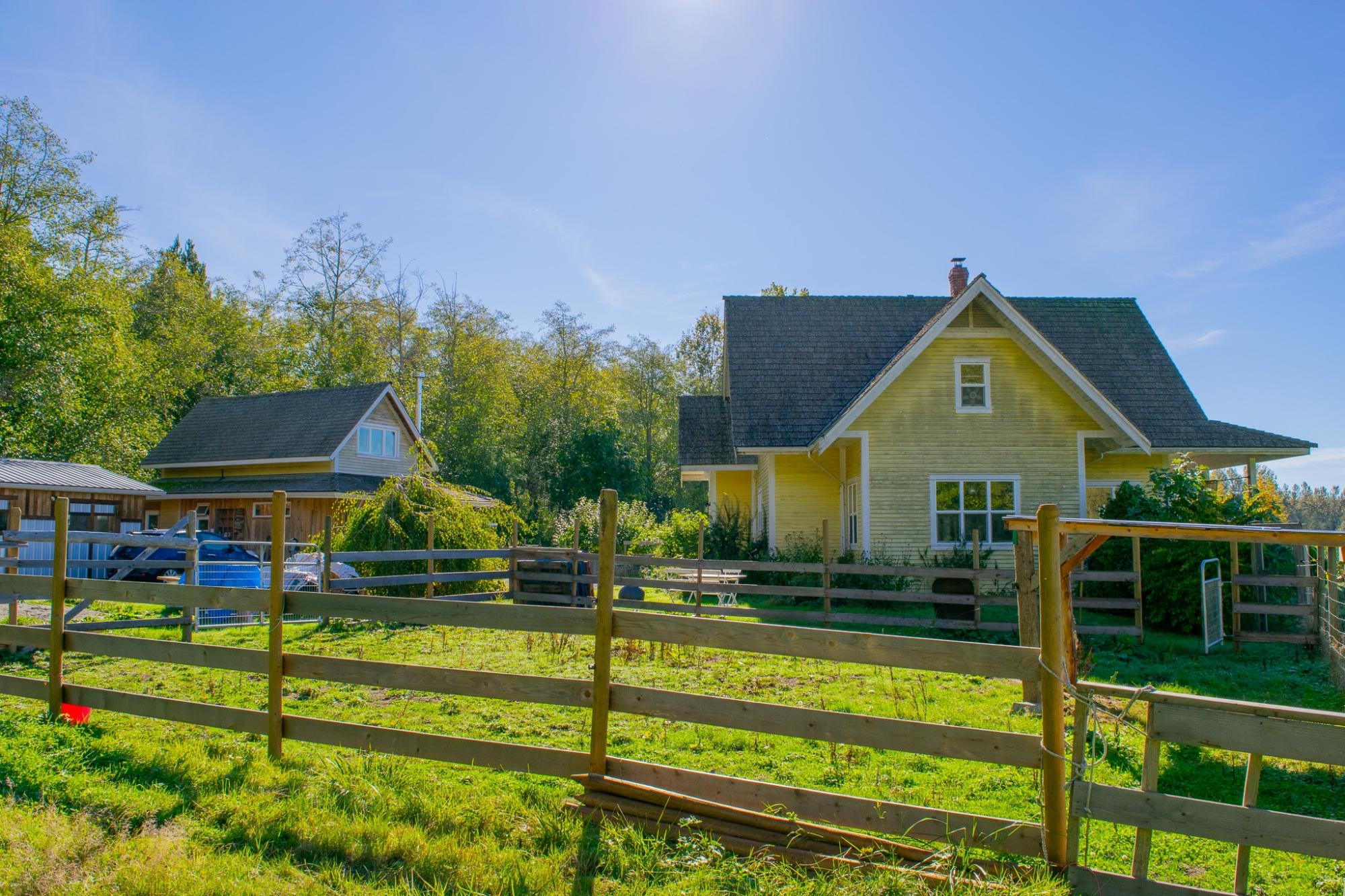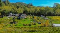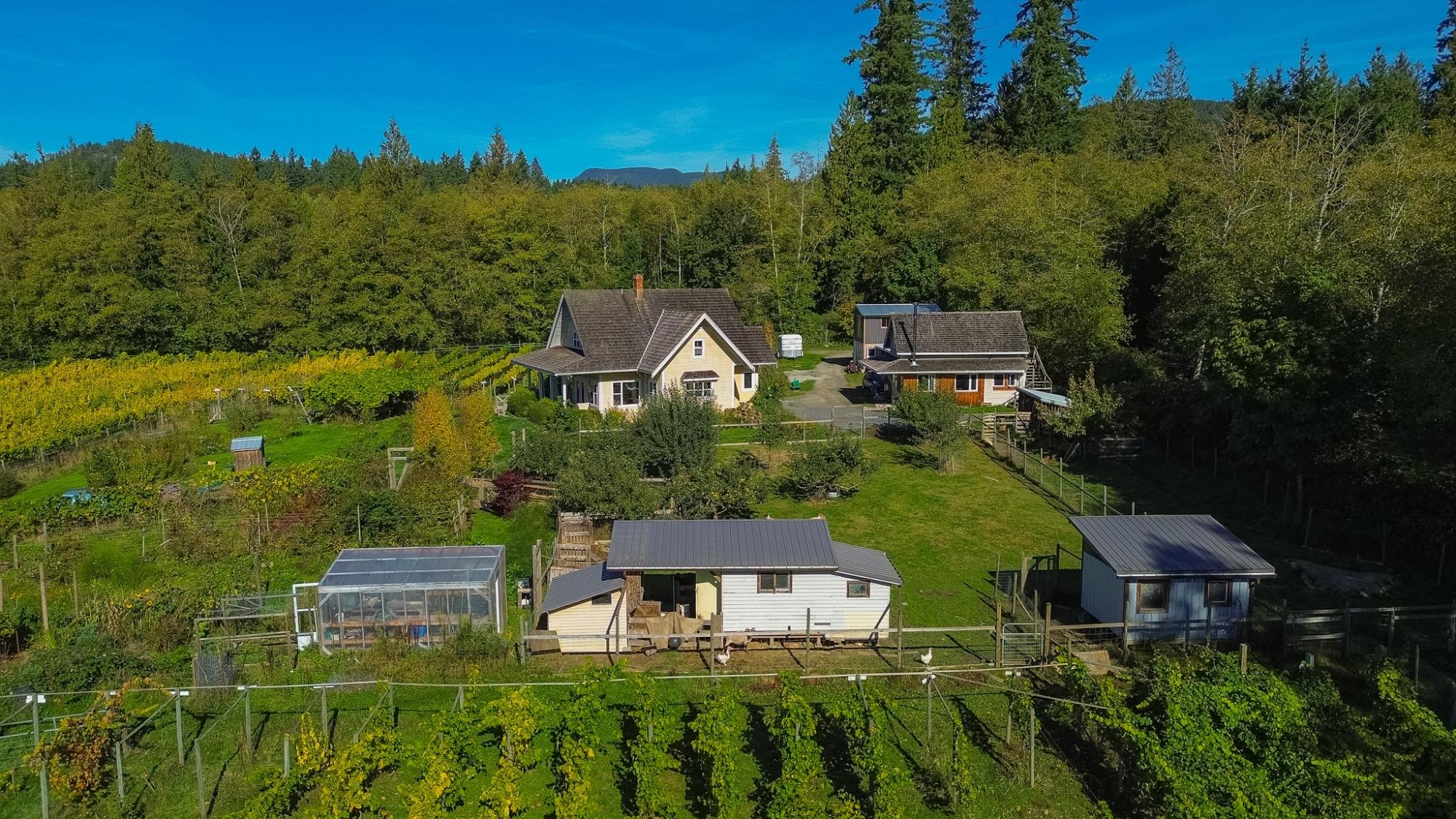 Modern farmhouse meets profitable potential on 11.2 acres. This private haven blends rural tranquility with city convenience, surrounded by organic farms. The 1,800 sq. ft. craftsman home offers warm, open living with a cozy woodstove and a bright kitchen that captures the morning sun. Step out to the covered veranda and take in sweeping views of your acreage. The main level features a spacious bedroom, full bath, and laundry; upstairs are three more bedrooms and a unique bath. A detached studio with kitchen adds flexible space for guests, rental, or creative use. 4.5 acres are planted in organic vineyard with mature grapes and lots of produce. The property is also set up for two horses with a shelter and walk-out. A2 (large-lot) rural zoning provides excellent flexibility for future use. Whether continuing the vineyard, launching a winery, or creating your dream lifestyle, this property offers peace, potential, and profitability in one exceptional package.