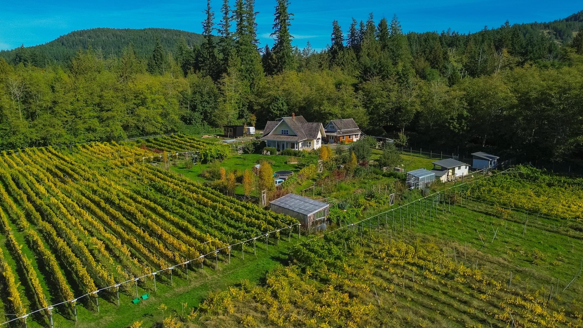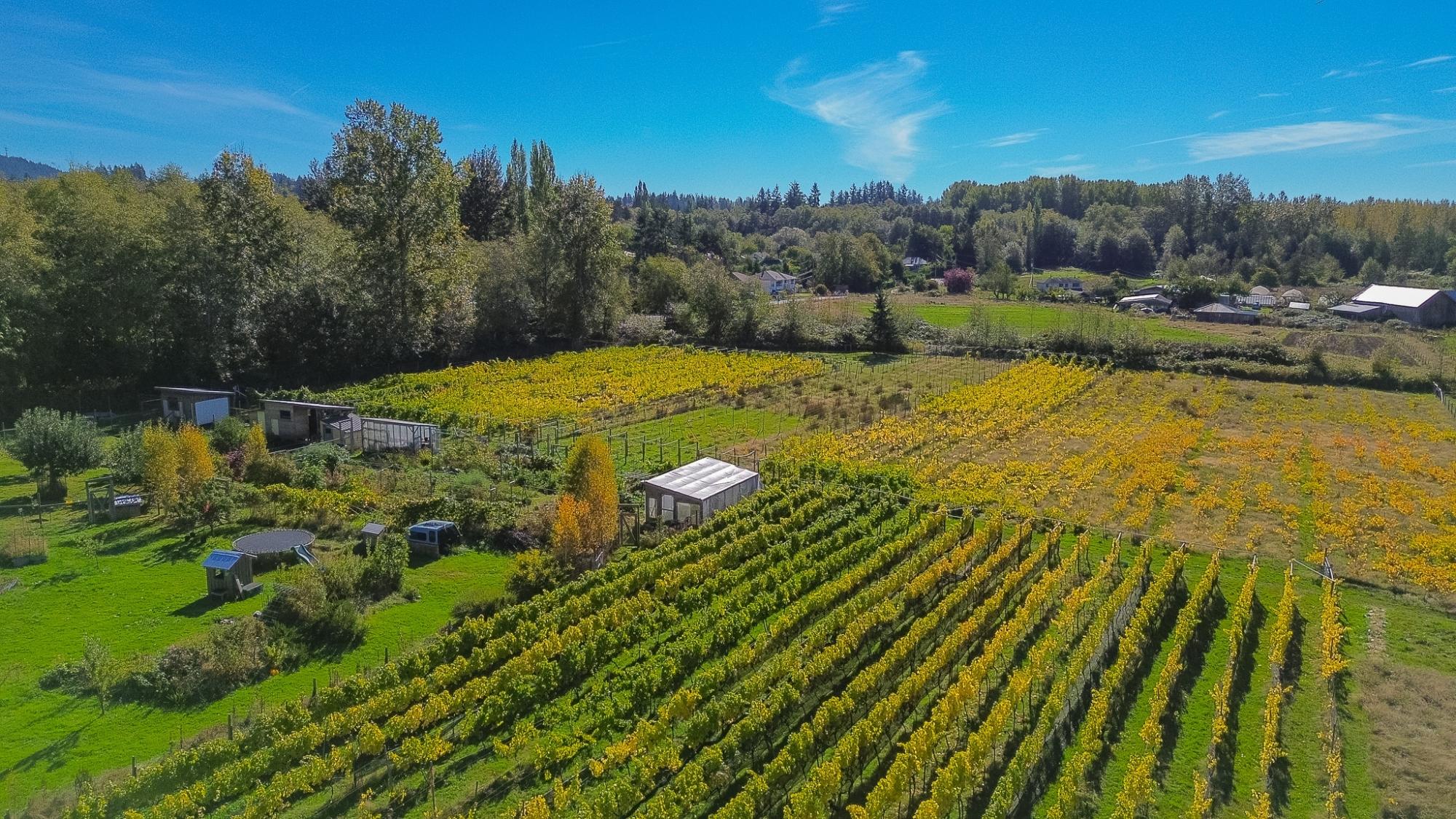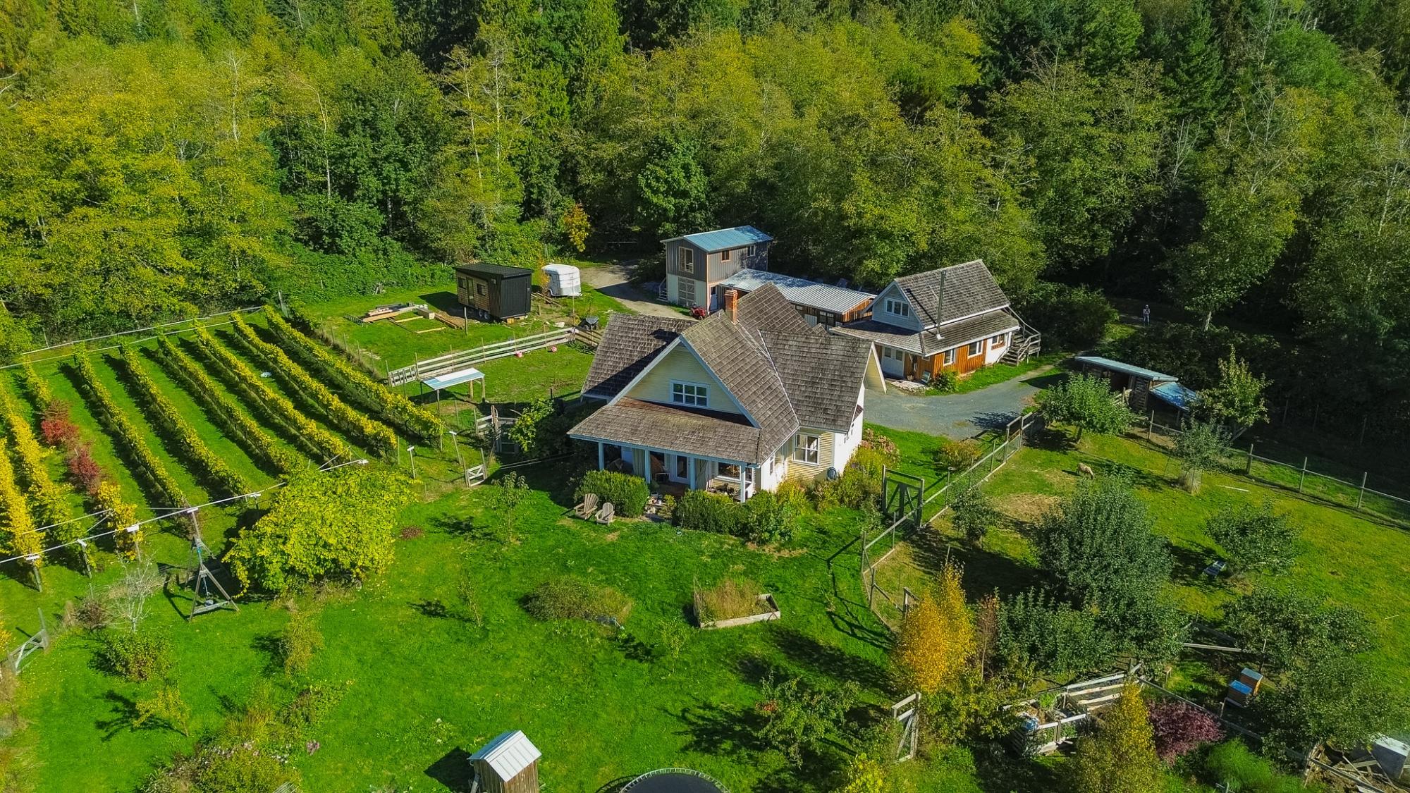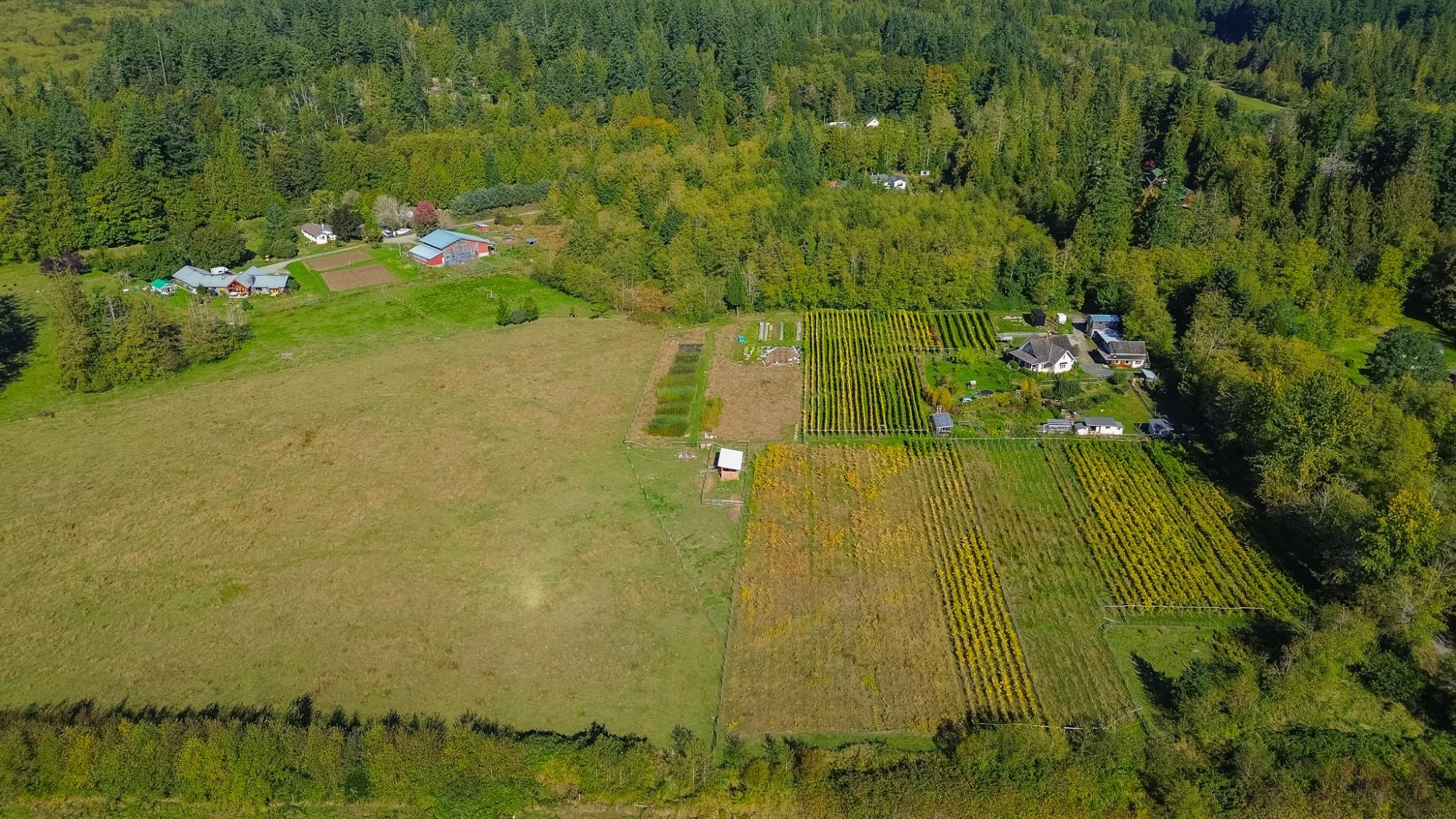 Modern farmhouse meets profitable potential on 11.2 acres. This private haven blends rural tranquility with city convenience, surrounded by organic farms. The 1,800 sq. ft. craftsman home offers warm, open living with a cozy woodstove and a bright kitchen that captures the morning sun. Step out to the covered veranda and take in sweeping views of your acreage. The main level features a spacious bedroom, full bath, and laundry; upstairs are three more bedrooms and a unique bath. A detached studio with kitchen adds flexible space for guests, rental, or creative use. 4.5 acres are planted in organic vineyard with mature grapes and lots of produce. The property is also set up for two horses with a shelter and walk-out. A2 (large-lot) rural zoning provides excellent flexibility for future use. Whether continuing the vineyard, launching a winery, or creating your dream lifestyle, this property offers peace, potential, and profitability in one exceptional package.