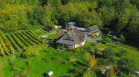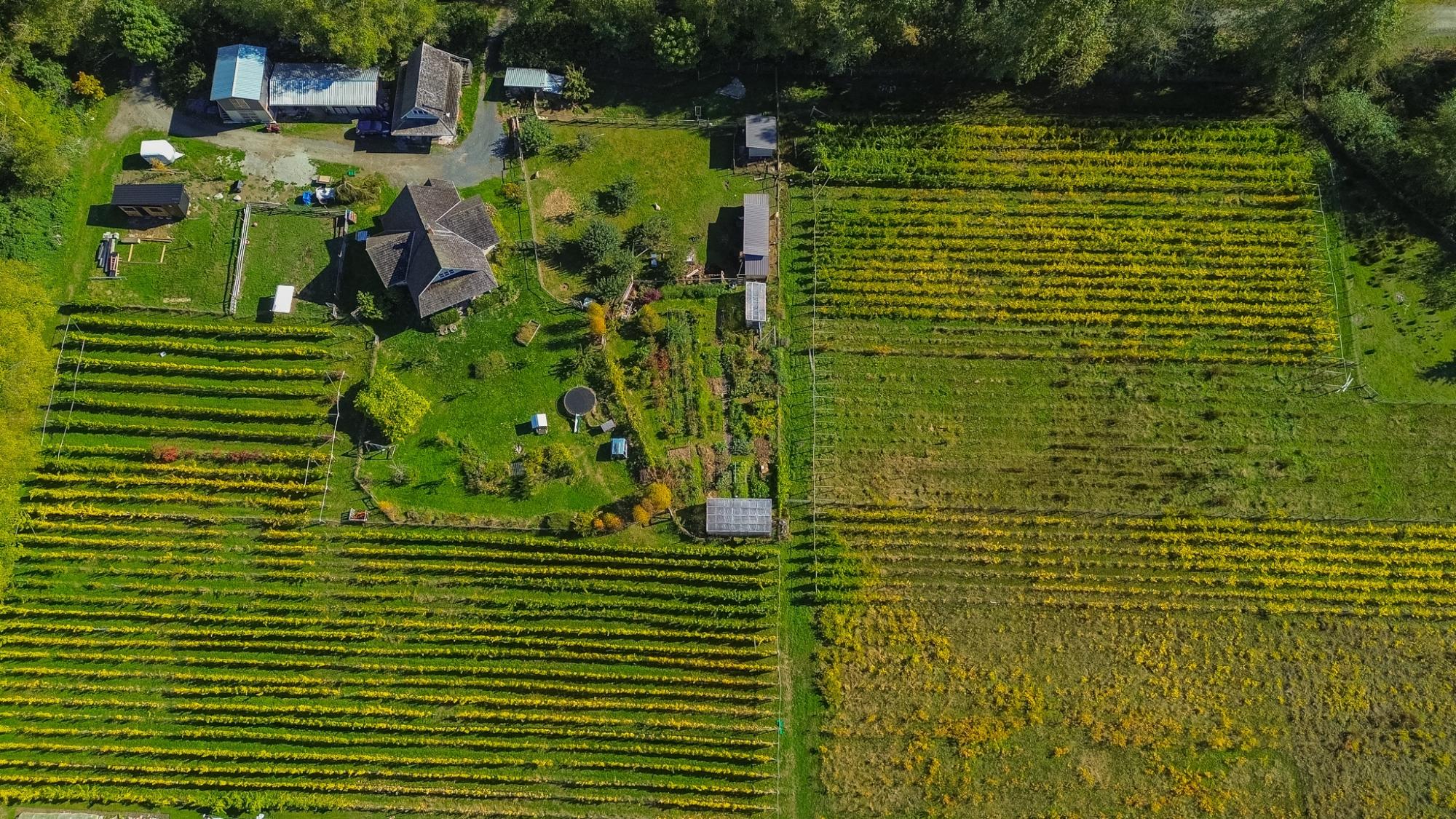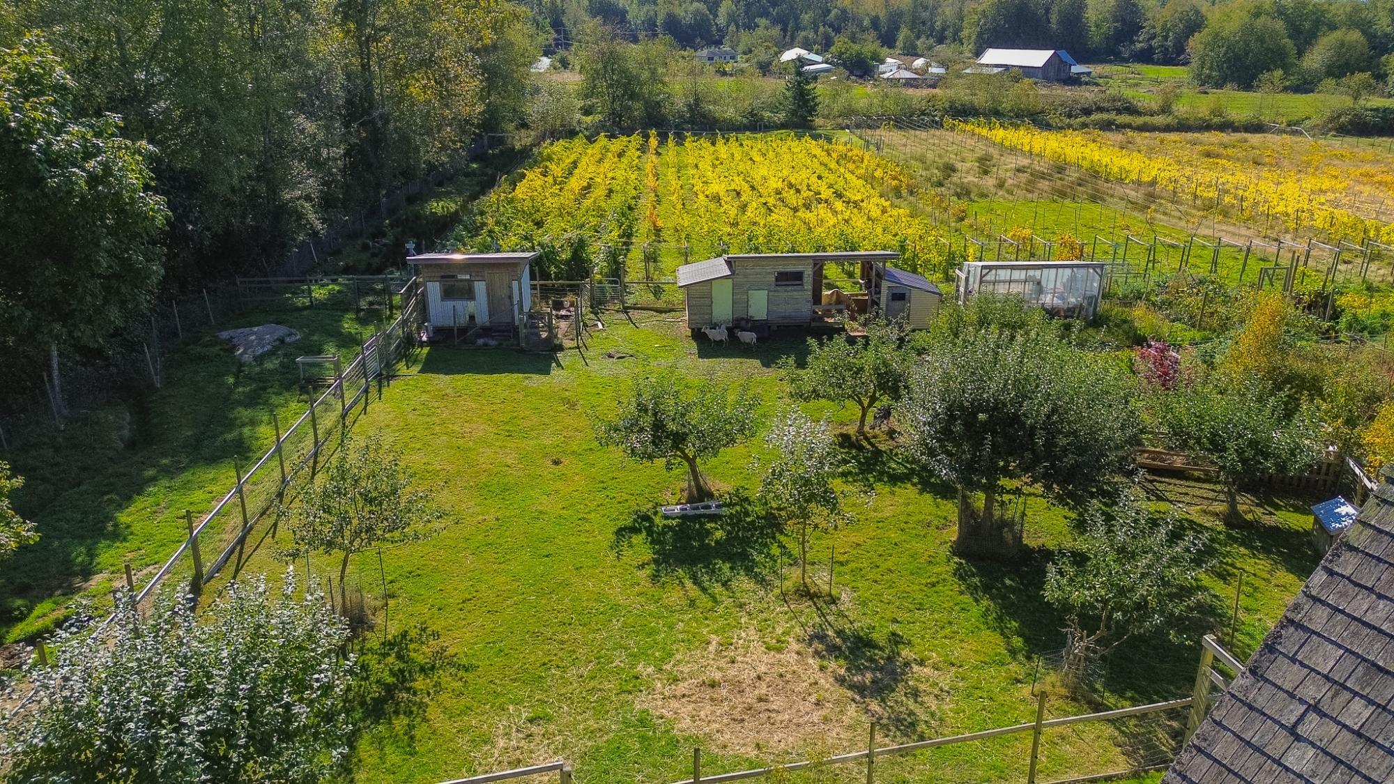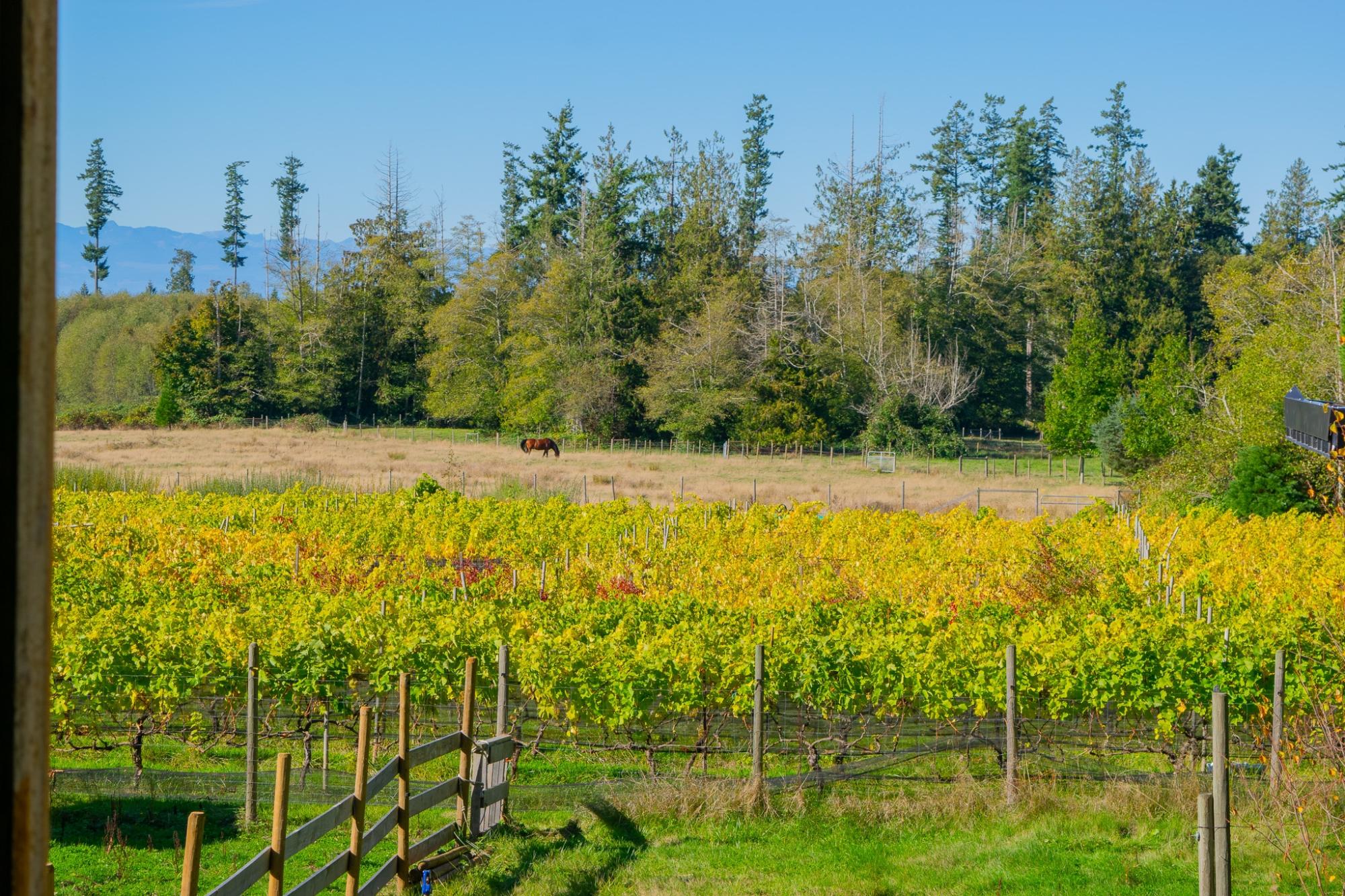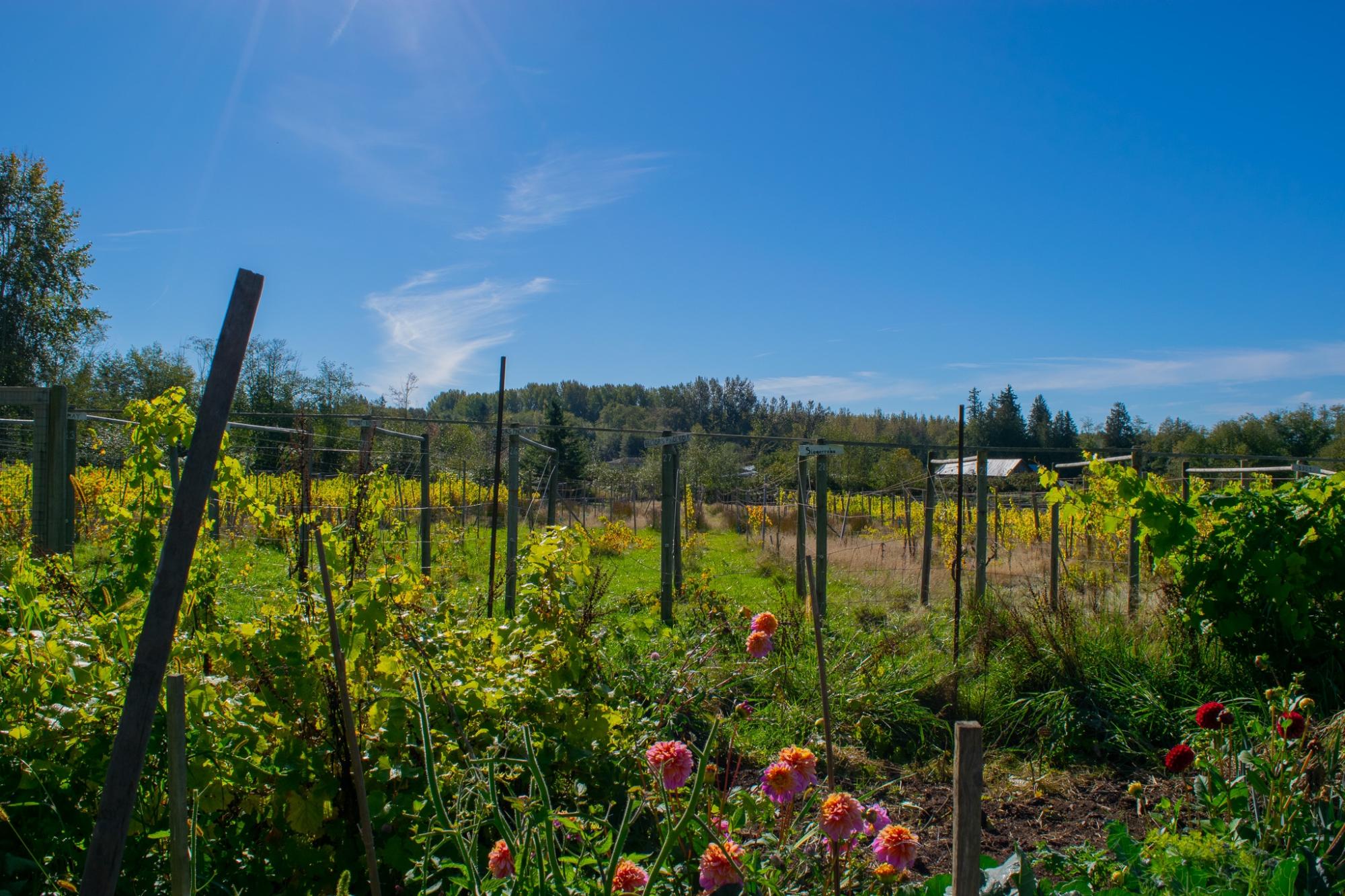 Modern farmhouse meets profitable potential on 11.2 acres. This private haven blends rural tranquility with city convenience, surrounded by organic farms. The 1,800 sq. ft. craftsman home offers warm, open living with a cozy woodstove and a bright kitchen that captures the morning sun. Step out to the covered veranda and take in sweeping views of your acreage. The main level features a spacious bedroom, full bath, and laundry; upstairs are three more bedrooms and a unique bath. A detached studio with kitchen adds flexible space for guests, rental, or creative use. 4.5 acres are planted in organic vineyard with mature grapes and lots of produce. The property is also set up for two horses with a shelter and walk-out. A2 (large-lot) rural zoning provides excellent flexibility for future use. Whether continuing the vineyard, launching a winery, or creating your dream lifestyle, this property offers peace, potential, and profitability in one exceptional package.